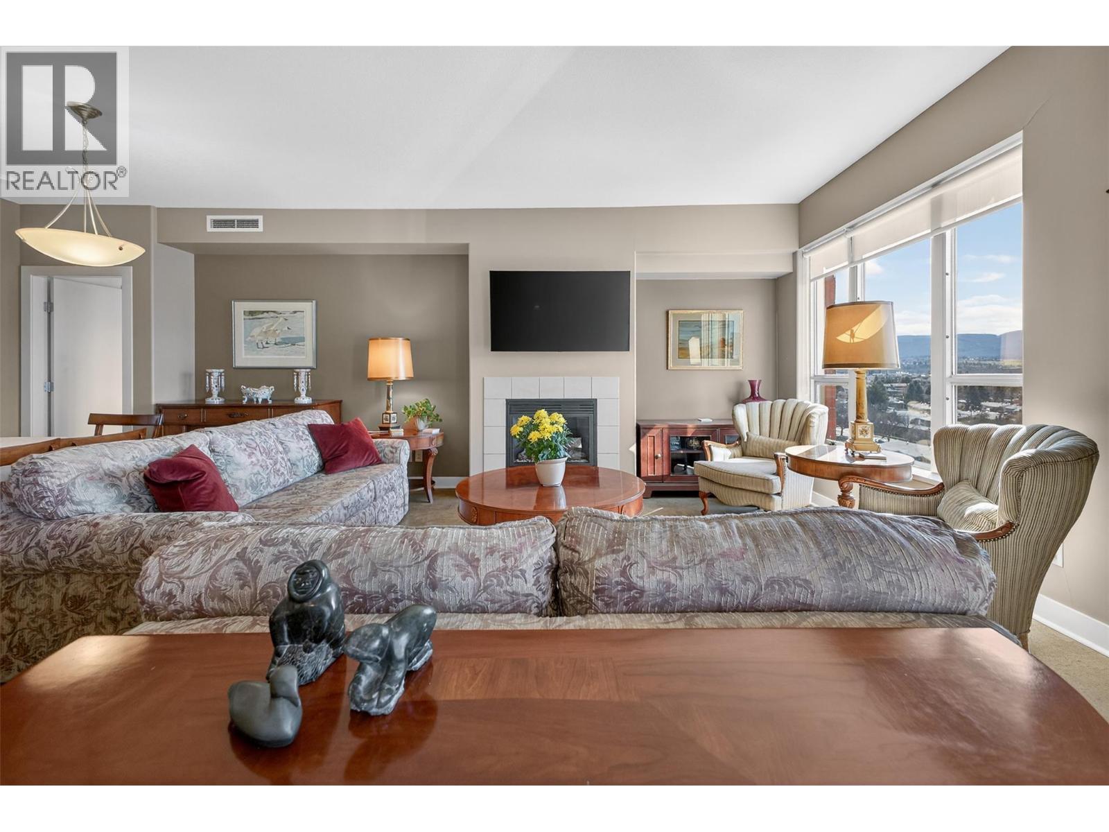 There’s nothing quite like the high standard of condo living that Centuria offers in the heart of Kelowna! This 11th-floor corner suite captures a 180-degree southwest view over the lake, city, and mountains, with natural light pouring in from multiple exposures throughout the day. With nearly 1,500 sq ft, the layout is open and functional, featuring 2 bedrooms with huge walk-in closets, a functional den, and 2 full bathrooms. The kitchen is designed for everyday ease and entertaining, with granite countertops, a large sit-up island, and newer stainless steel appliances. The main living area features cork flooring, with carpet in the bedrooms and tile in the bathrooms for a balanced, comfortable finish. Located just minutes to all the amenities one needs: a grocery store downstairs, downtown dining, shops and entertainment - everything is within easy reach whether you walk, bike, or drive. Residents enjoy access to an outdoor pool, hot tub, sauna, car wash, and a fitness facility. This condo also includes two secured underground parking stalls and a storage locker. Centuria is also pet friendly! (id:58842)