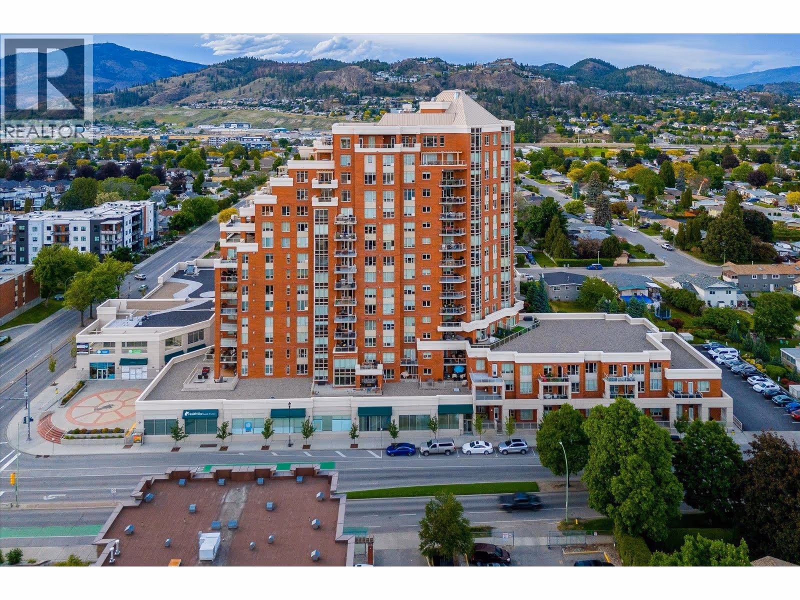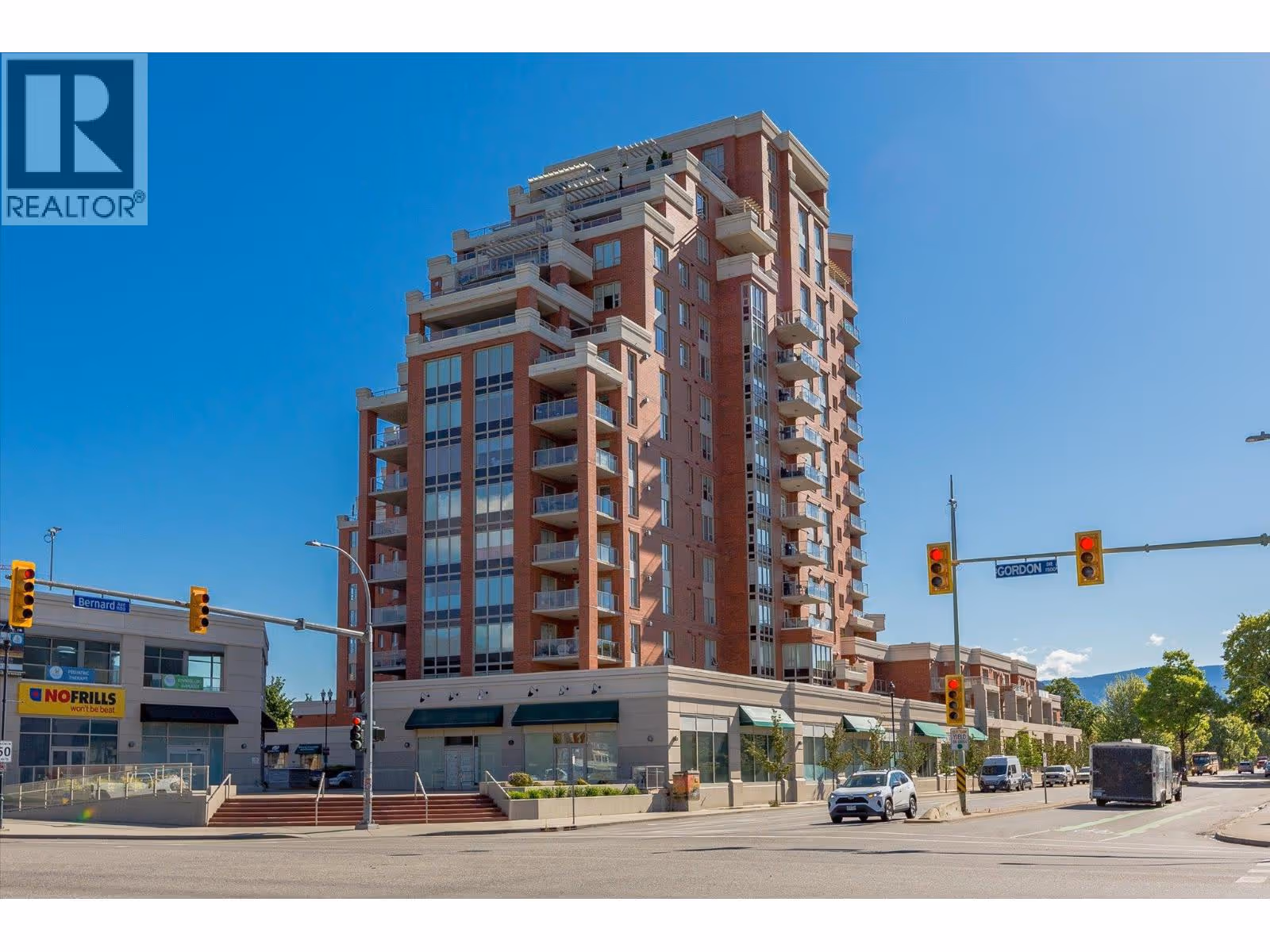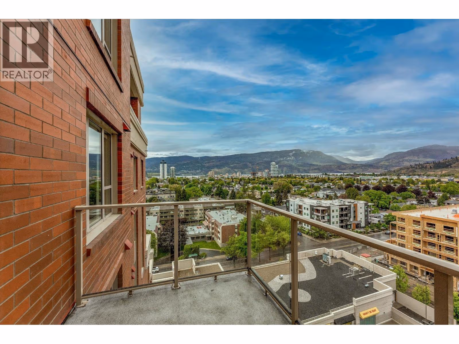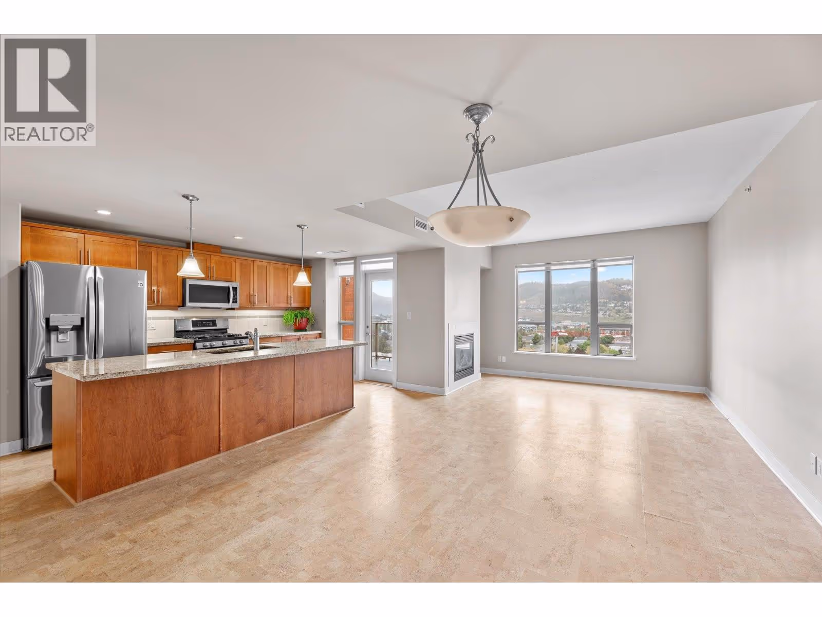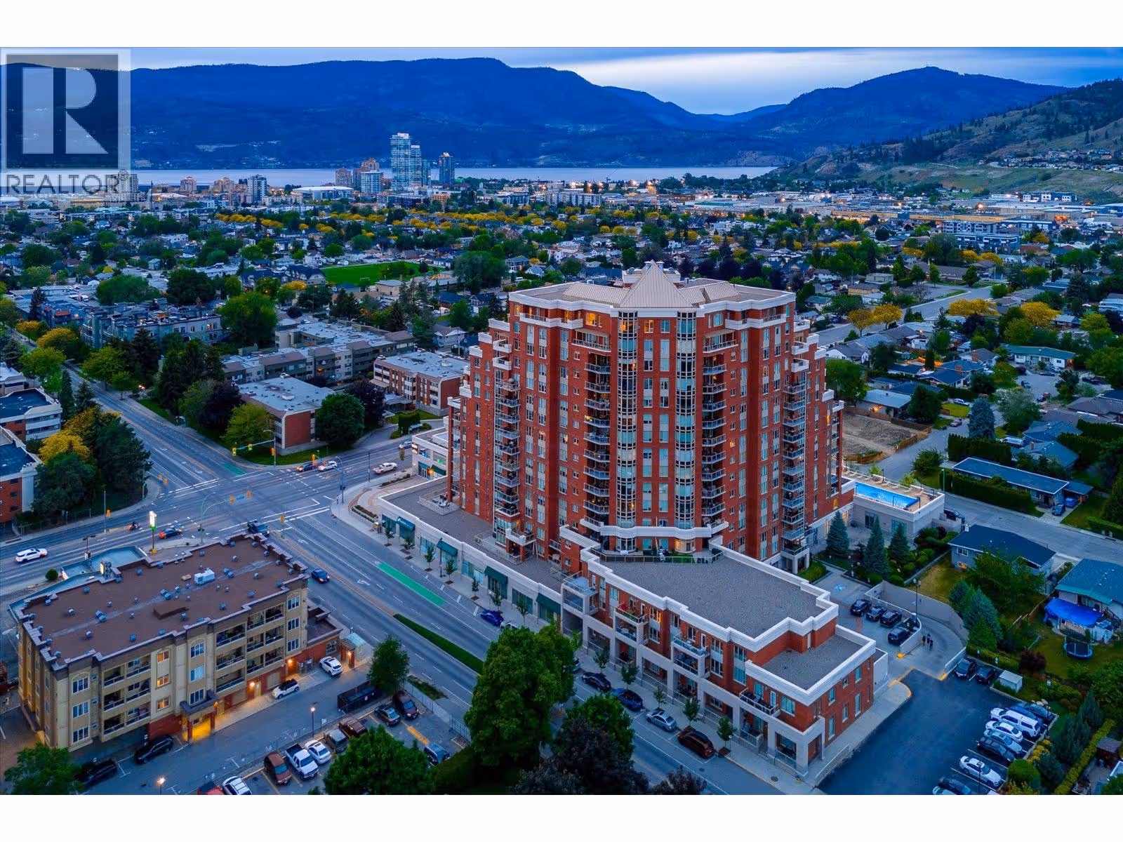 Two Bedroom + Den with 2 parking stalls—this condo puts you right on the edge of downtown Kelowna. Lake, city, and mountain views from the 12th floor. Located in one of the city’s most sought-after buildings, residents enjoy premium amenities including a pool, hot tub, dry sauna, steam room, and gym, with groceries just an elevator ride away. The unit itself is spacious and features a smart split-bedroom floor plan and a den with sliding doors complete with a built-in Murphy bed— perfect for guests or an ultra flexible work or hobby space. Enjoy a generous kitchen with new stainless steel appliances, an oversized island, plenty of storage, and ample prep space—perfect for hosting or everyday living. In the living room, a cozy gas fireplace anchors the space, framed by big windows and stunning views. Retreat to the primary bedroom, where you will find a spacious walk in closet, as well as an ensuite with dual vanities and a separate soaker tub. Step out onto the private balcony to soak up the scenery, all framing those iconic Kelowna views. This condo also comes with two parking spots and a storage locker, and the building welcomes 2 dogs (up to 14"" at the shoulder) or 2 cats! Whether it’s biking the nearby trails, beach days, brewery hopping, or dining out, this location connects you to everything If you’re looking for comfort, convenience, and a view, this condo is sure to check all of the boxes! (id:58842)