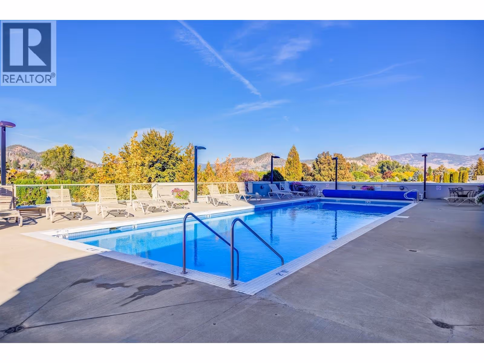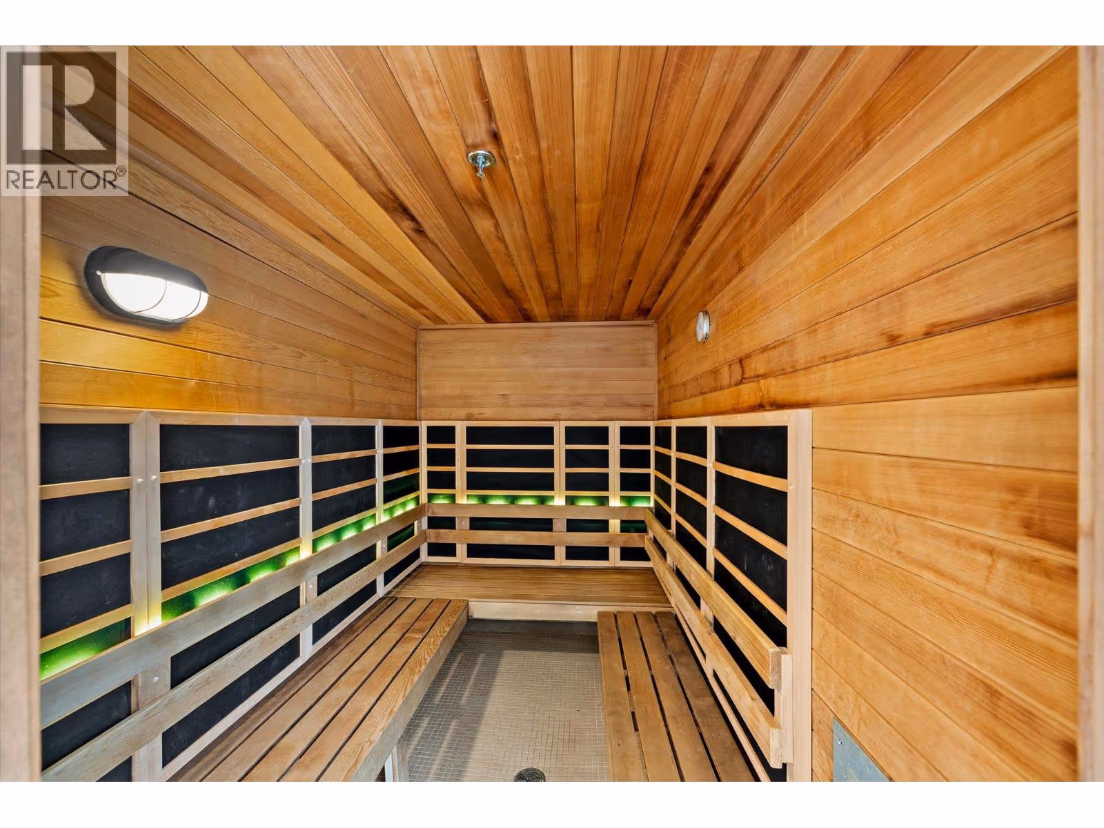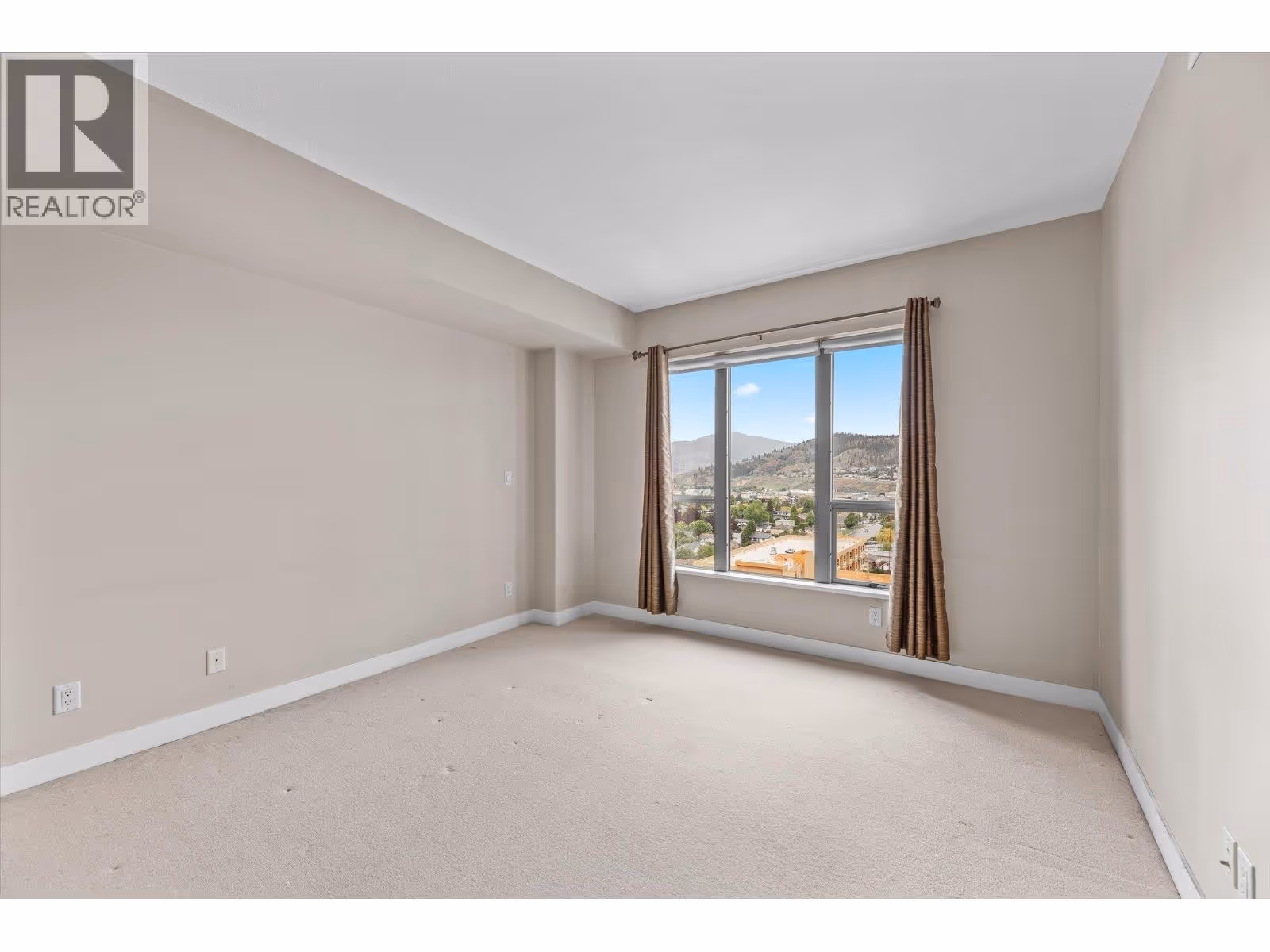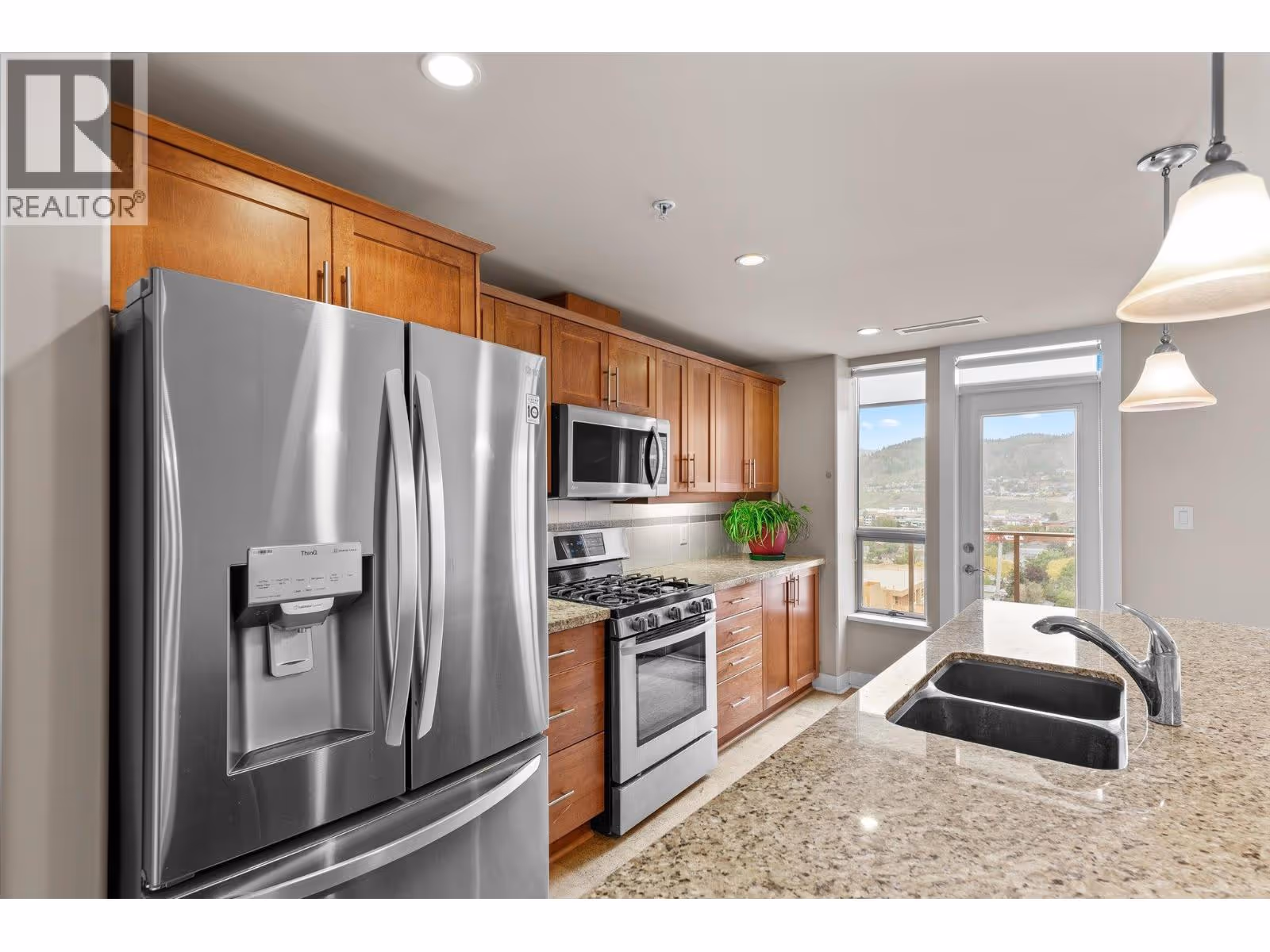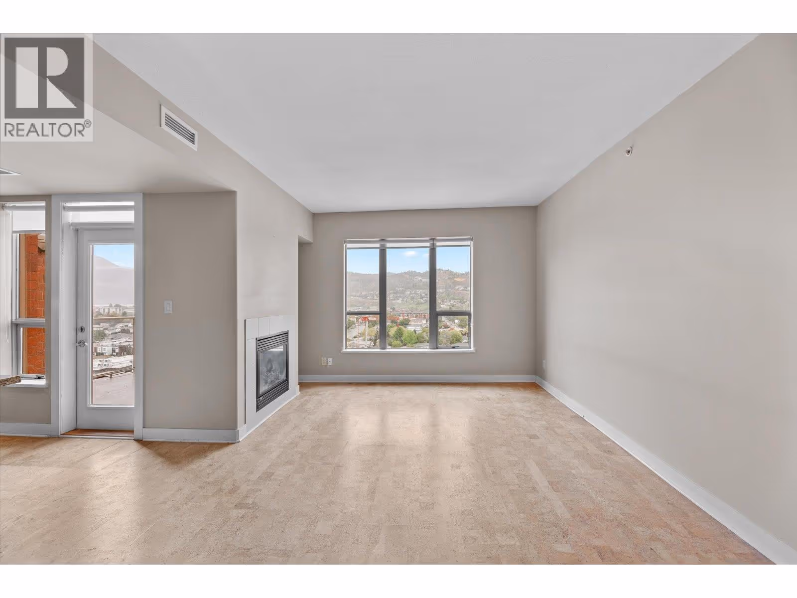 Two Bedroom + Den with 2 parking stalls—this condo puts you right on the edge of downtown Kelowna. Lake, city, and mountain views from the 12th floor. Located in one of the city’s most sought-after buildings, residents enjoy premium amenities including a pool, hot tub, dry sauna, steam room, and gym, with groceries just an elevator ride away. The unit itself is spacious and features a smart split-bedroom floor plan and a den with sliding doors complete with a built-in Murphy bed— perfect for guests or an ultra flexible work or hobby space. Enjoy a generous kitchen with new stainless steel appliances, an oversized island, plenty of storage, and ample prep space—perfect for hosting or everyday living. In the living room, a cozy gas fireplace anchors the space, framed by big windows and stunning views. Retreat to the primary bedroom, where you will find a spacious walk in closet, as well as an ensuite with dual vanities and a separate soaker tub. Step out onto the private balcony to soak up the scenery, all framing those iconic Kelowna views. This condo also comes with two parking spots and a storage locker, and the building welcomes 2 dogs (up to 14"" at the shoulder) or 2 cats! Whether it’s biking the nearby trails, beach days, brewery hopping, or dining out, this location connects you to everything If you’re looking for comfort, convenience, and a view, this condo is sure to check all of the boxes! (id:58842)