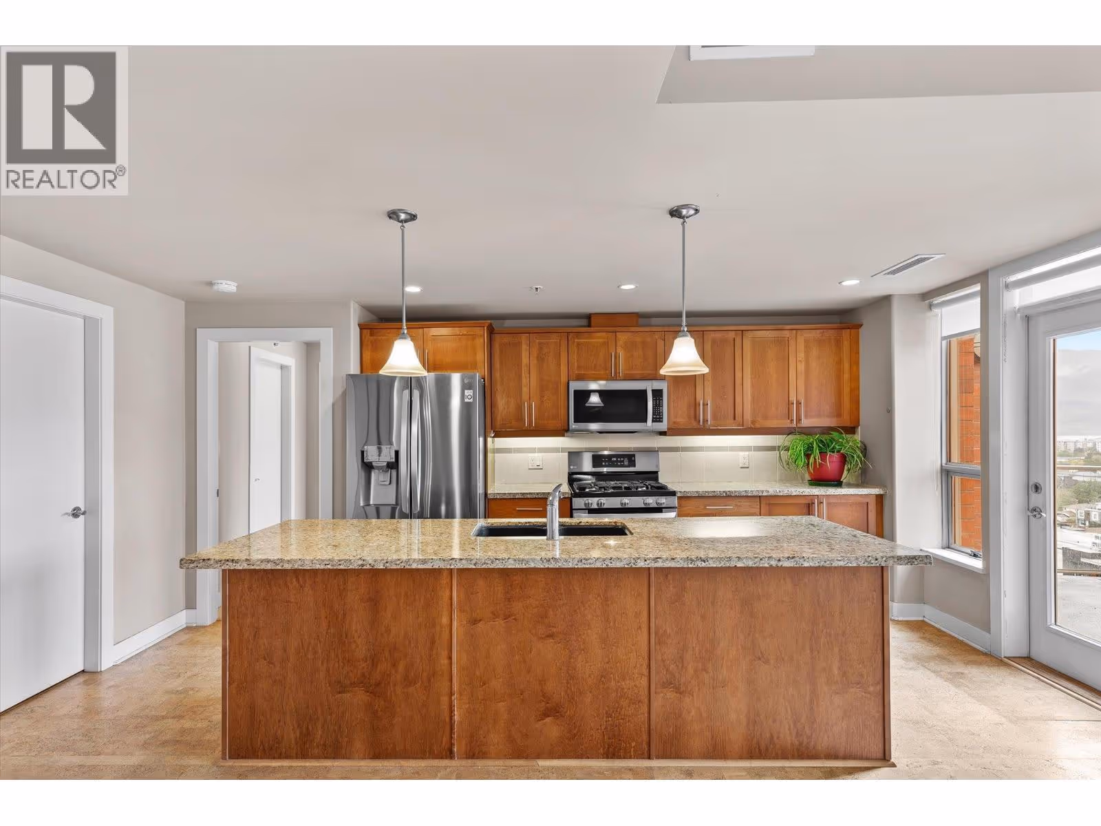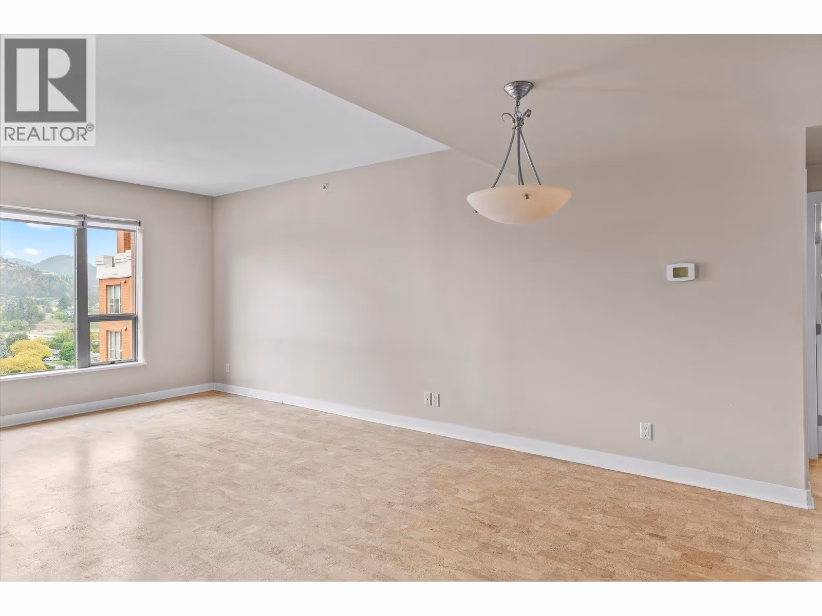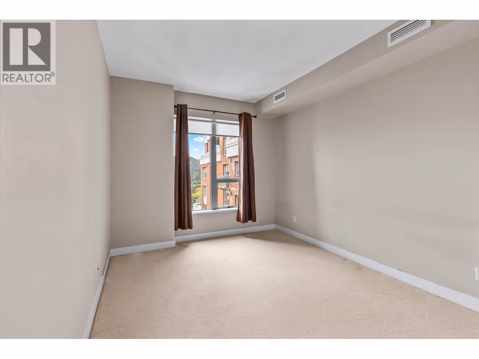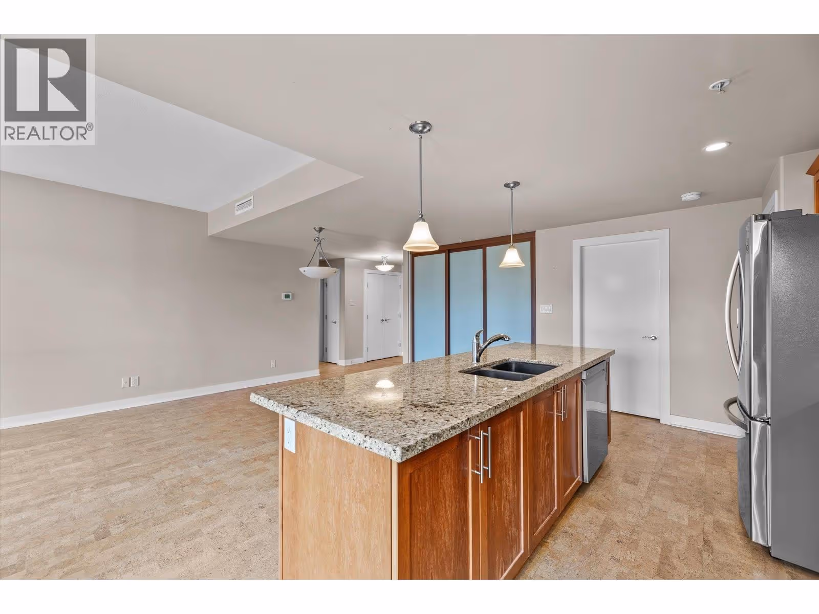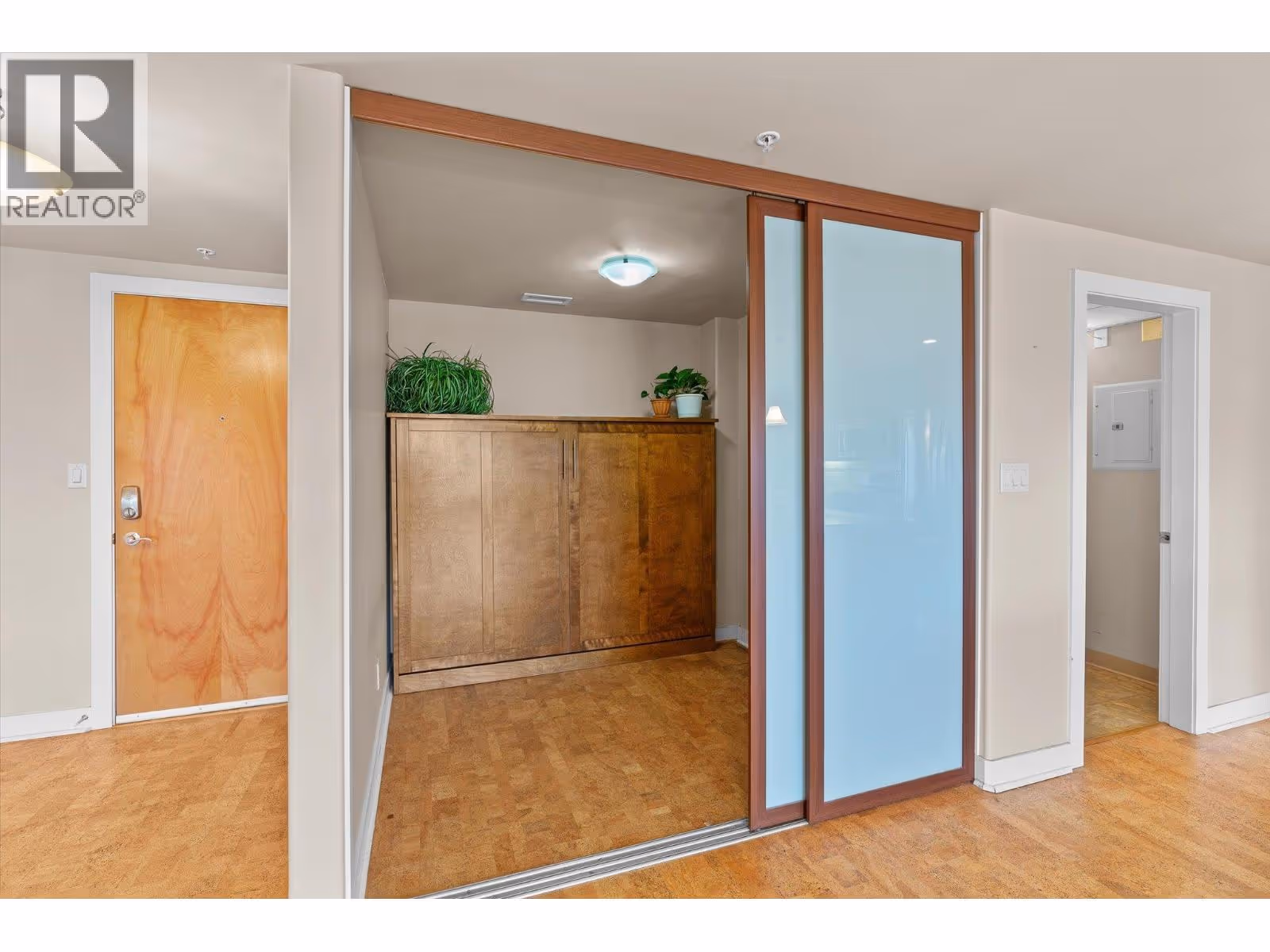 Two Bedroom + Den with 2 parking stalls—this condo puts you right on the edge of downtown Kelowna. Lake, city, and mountain views from the 12th floor. Located in one of the city’s most sought-after buildings, residents enjoy premium amenities including a pool, hot tub, dry sauna, steam room, and gym, with groceries just an elevator ride away. The unit itself is spacious and features a smart split-bedroom floor plan and a den with sliding doors complete with a built-in Murphy bed— perfect for guests or an ultra flexible work or hobby space. Enjoy a generous kitchen with new stainless steel appliances, an oversized island, plenty of storage, and ample prep space—perfect for hosting or everyday living. In the living room, a cozy gas fireplace anchors the space, framed by big windows and stunning views. Retreat to the primary bedroom, where you will find a spacious walk in closet, as well as an ensuite with dual vanities and a separate soaker tub. Step out onto the private balcony to soak up the scenery, all framing those iconic Kelowna views. This condo also comes with two parking spots and a storage locker, and the building welcomes 2 dogs (up to 14"" at the shoulder) or 2 cats! Whether it’s biking the nearby trails, beach days, brewery hopping, or dining out, this location connects you to everything If you’re looking for comfort, convenience, and a view, this condo is sure to check all of the boxes! (id:58842)