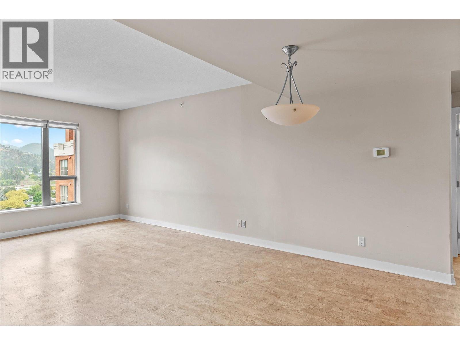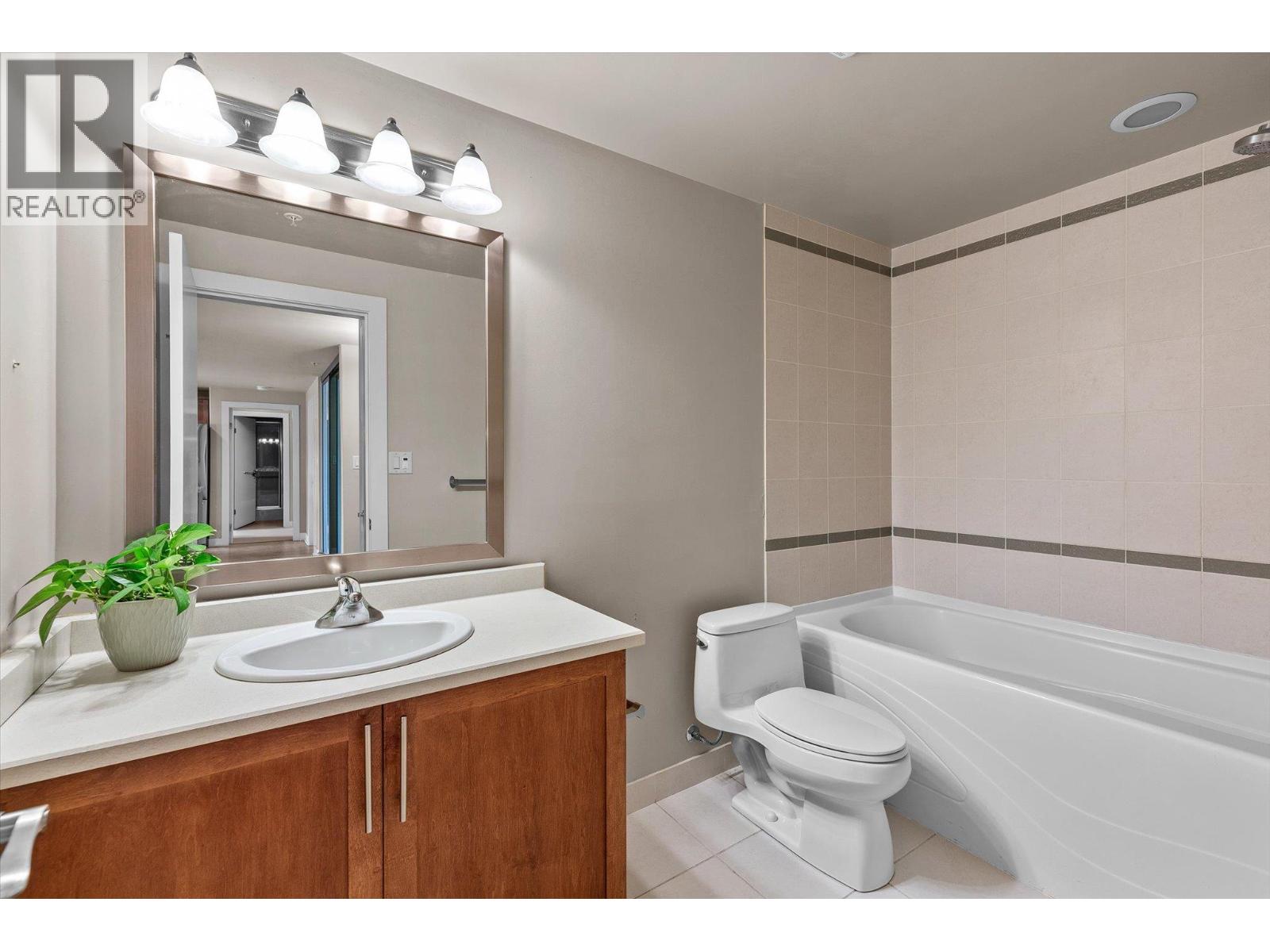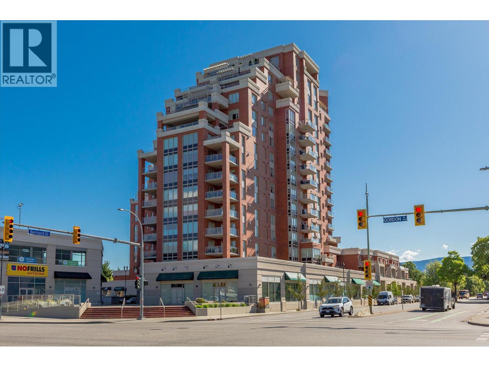 Two Bedroom + Den with 2 parking stalls—this condo puts you right on the edge of downtown Kelowna. Lake, city, and mountain views from the 12th floor. Located in one of the city’s most sought-after buildings, residents enjoy premium amenities including a pool, hot tub, dry sauna, steam room, and gym, with groceries just an elevator ride away. The unit itself is spacious and features a smart split-bedroom floor plan and a den with sliding doors complete with a built-in Murphy bed— perfect for guests or an ultra flexible work or hobby space. Enjoy a generous kitchen with new stainless steel appliances, an oversized island, plenty of storage, and ample prep space—perfect for hosting or everyday living. In the living room, a cozy gas fireplace anchors the space, framed by big windows and stunning views. Retreat to the primary bedroom, where you will find a spacious walk in closet, as well as an ensuite with dual vanities and a separate soaker tub. Step out onto the private balcony to soak up the scenery, all framing those iconic Kelowna views. This condo also comes with two parking spots and a storage locker, and the building welcomes 2 dogs (up to 14"" at the shoulder) or 2 cats! Whether it’s biking the nearby trails, beach days, brewery hopping, or dining out, this location connects you to everything If you’re looking for comfort, convenience, and a view, this condo is sure to check all of the boxes! (id:58842)