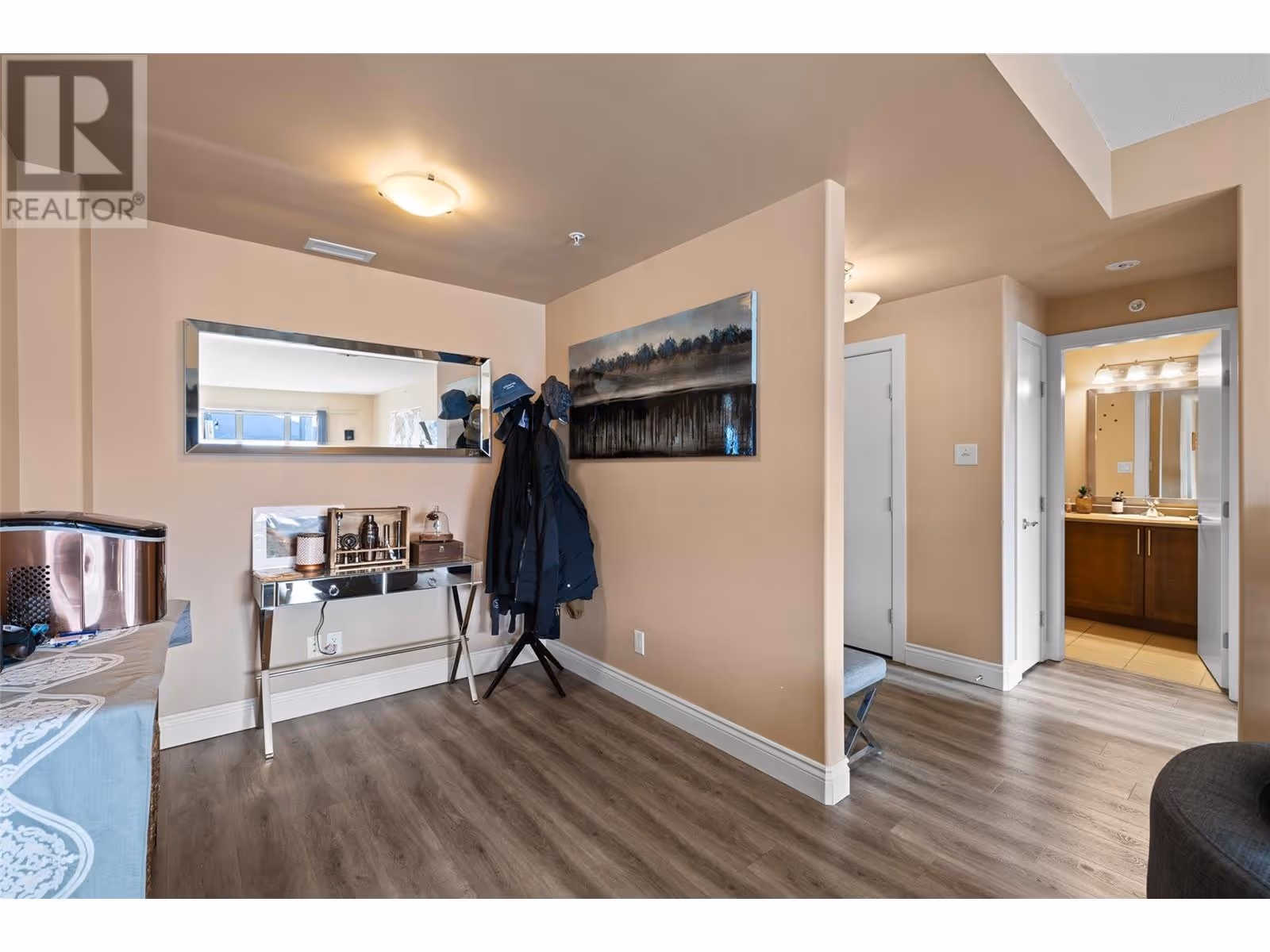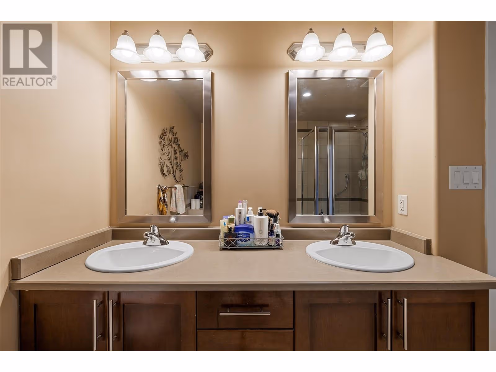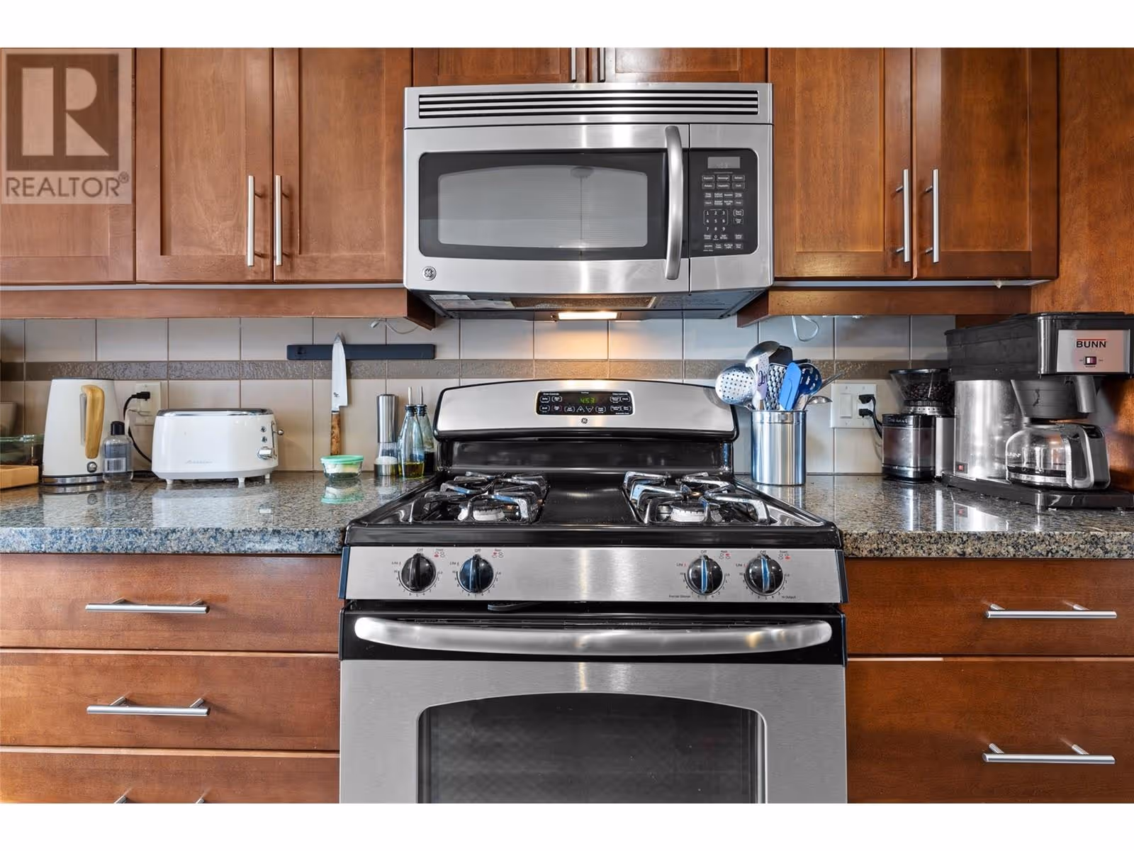 Experience vibrant urban living in this 2-bedroom residence featuring a split floor plan that includes a versatile open den, perfect for a home office. The spacious open-concept design includes a stylish kitchen with granite countertops, stainless steel appliances, and a gas stovetop. Enjoy lake and cityscape views from the generous living area, kitchen, and primary bedroom. The primary suite includes a walk-in closet and a 5-piece ensuite bathroom with a soaking tub, walk-in shower, and dual sinks. Step out onto your private covered balcony facing west, where you can bask in ample natural light. This exceptional unit also includes two secure underground parking spaces and a dedicated storage locker for additional storage needs. Discover the vibrant lifestyle at Centuria, which offers amenities such as an outdoor swimming pool, a hot tub, and a fully equipped fitness center. With grocery stores and various retail shops right at your doorstep and downtown just a leisurely bike ride or walk away, this location is perfect for those seeking both comfort and convenience. (id:58842)