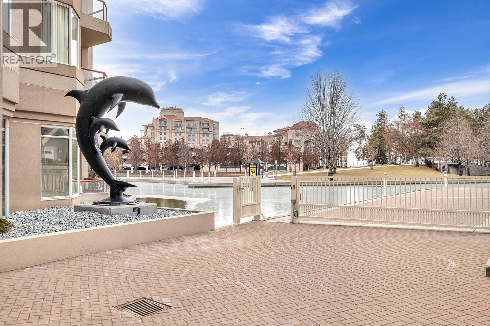 The Dolphins at Waterfront Park – one of Kelowna’s most sought-after lakefront addresses. This renovated 1000sqft, 2-bedroom, 2-bath home offers a combination of waterfront living and unmatched lifestyle convenience, in a rarely available layout directly overlooking the Lagoon! Located in the centre of the cultural district and vibrant downtown community, you are just steps from the Waterfront promenade, Tugboat beach, restaurants, craft breweries, wineries, pubs, and more! Enjoy all these conveniences while having the spectacular view of the iconic Dolphin Fountain outside your window! This home is downtown waterfront living at its finest! What truly sets this home apart is its premium 3rd-floor location—step outside your door to resort-style amenities including a fitness centre, outdoor pool, hot tub, large community BBQ, and tennis/pickleball courts. Enjoy front-row views of Kelowna’s waterfront energy—concerts, festivals, and fireworks—from your own private patio. You even have an opportunity to dock your boat outside your home! Inside, the stunning kitchen features a seamless 12-ft quartz countertop, premium appliances with a modern open-concept design ideal for entertaining. Extensive upgrades include lighting, wiring, plumbing, blinds, and fully renovated bathrooms. Best of all, you will have sunshine all day long in this very bright, East, South, and West facing home! (id:58842)