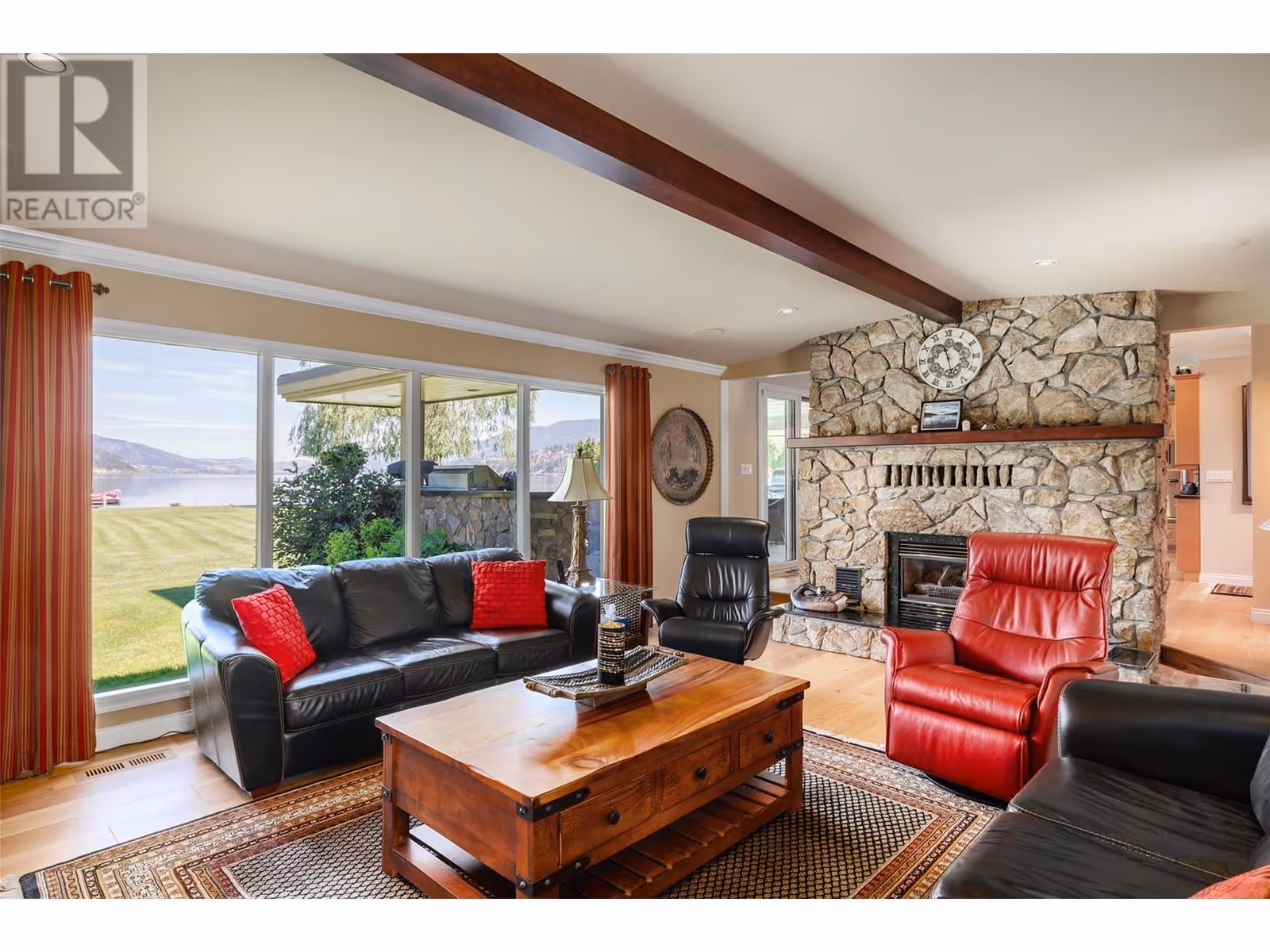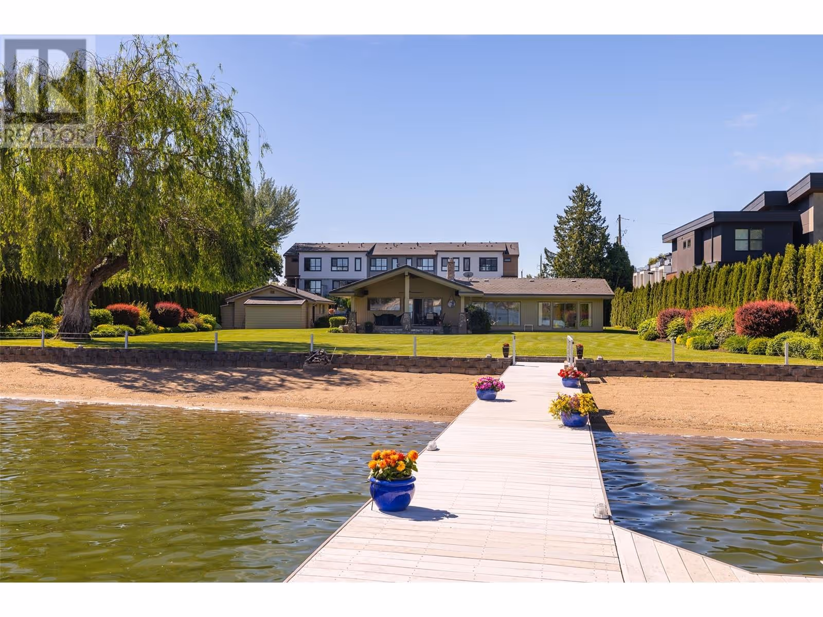 This is the very best waterfront lot on Woods Lake, which is the best swimming and waterski lake in the Sunny Okanagan…great fishing as well in the pristine clear waters! Three Bedrooms and three bathrooms with over a 1/2 Ac with 124 feet of sandy beach and a dock with composite decking and lifts for both boat and seadoo. The Ranch Style home is just under 2000 sqft and features two ensuite bathrooms and superb finishing throughout. A large stamped concrete covered patio allows you and your visitors to fully enjoy every season. The Master suite features a custom walk-in closet area and ensuite. Look at the amazing lake view and beyond to the surrounding hills, orchards out to the adjoining Kalamalka Lake. The garage features epoxy flooring, ample shelving and two separate shops for storage and tinkering. You are minutes from wineries, shopping, the Okanagan Rail Trail, parks, access to Kalamalka Lake, Okanagan Lake & Kelowna International Airport. This exceptional property offers the ultimate in lakeside living and lifestyle—don’t miss your chance to own a slice of paradise in the Okanagan. (id:58842)