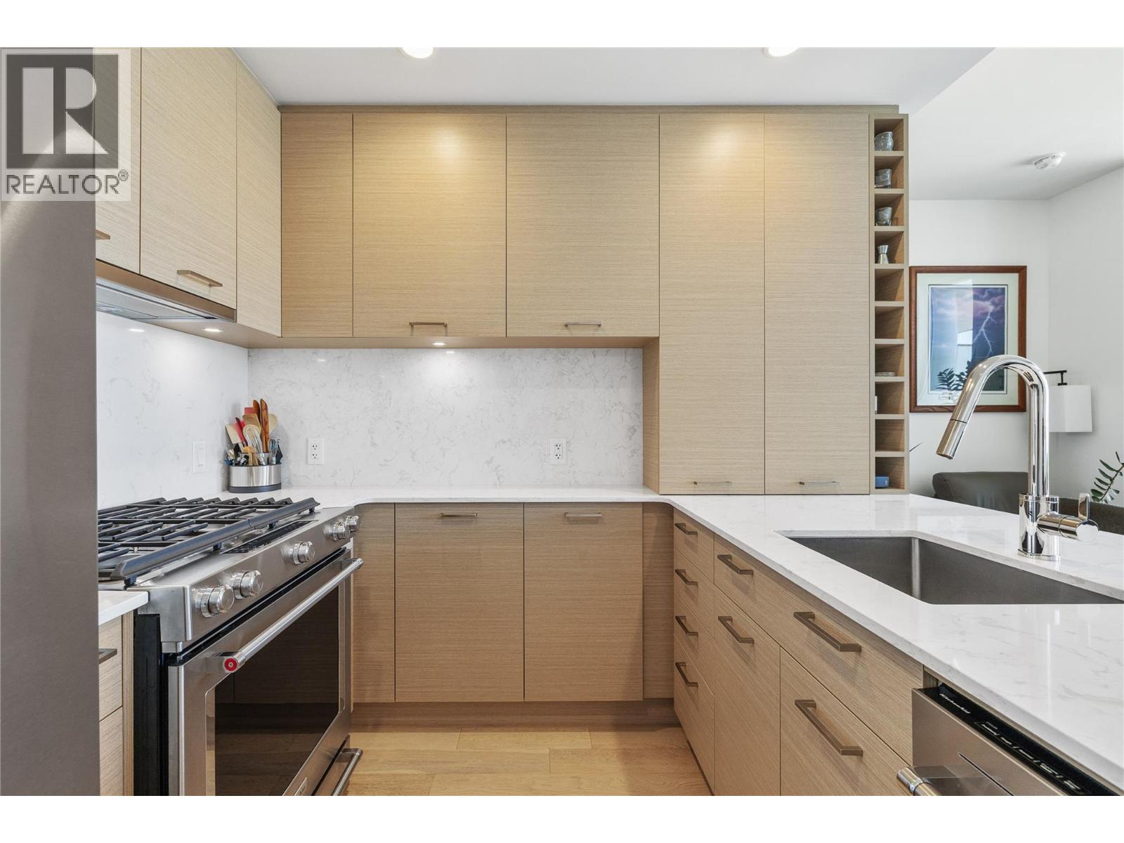 Experience elevated downtown living in this stunning 1 bed, 1 bath residence at One Water Street in the heart of Kelowna. Thoughtfully designed with a modern, open-concept layout, this home features stylish finishes, quartz countertops, and a sleek kitchen with stainless steel appliances. Take in lake views from your private patio—perfect for relaxing or entertaining while enjoying Kelowna’s vibrant energy. The spacious bedroom offers plenty of comfort, complemented by a well-appointed bathroom and convenient in-suite laundry. Just steps to the lake, beaches, dining, shopping, and nightlife, this unbeatable location makes it ideal for those seeking a walkable lifestyle. 1 secured underground parking space & storage locker are included. Great amenities including two outdoor pools, hot tub, fully equipped fitness center with yoga and Pilates studio, outdoor lounge with fire pits and BBQs, business center & pickleball court. Whether you're looking for a full-time residence, vacation getaway, or a strong investment property, this unit checks all the boxes. Live where lifestyle meets convenience at One Water Street. (id:58842)