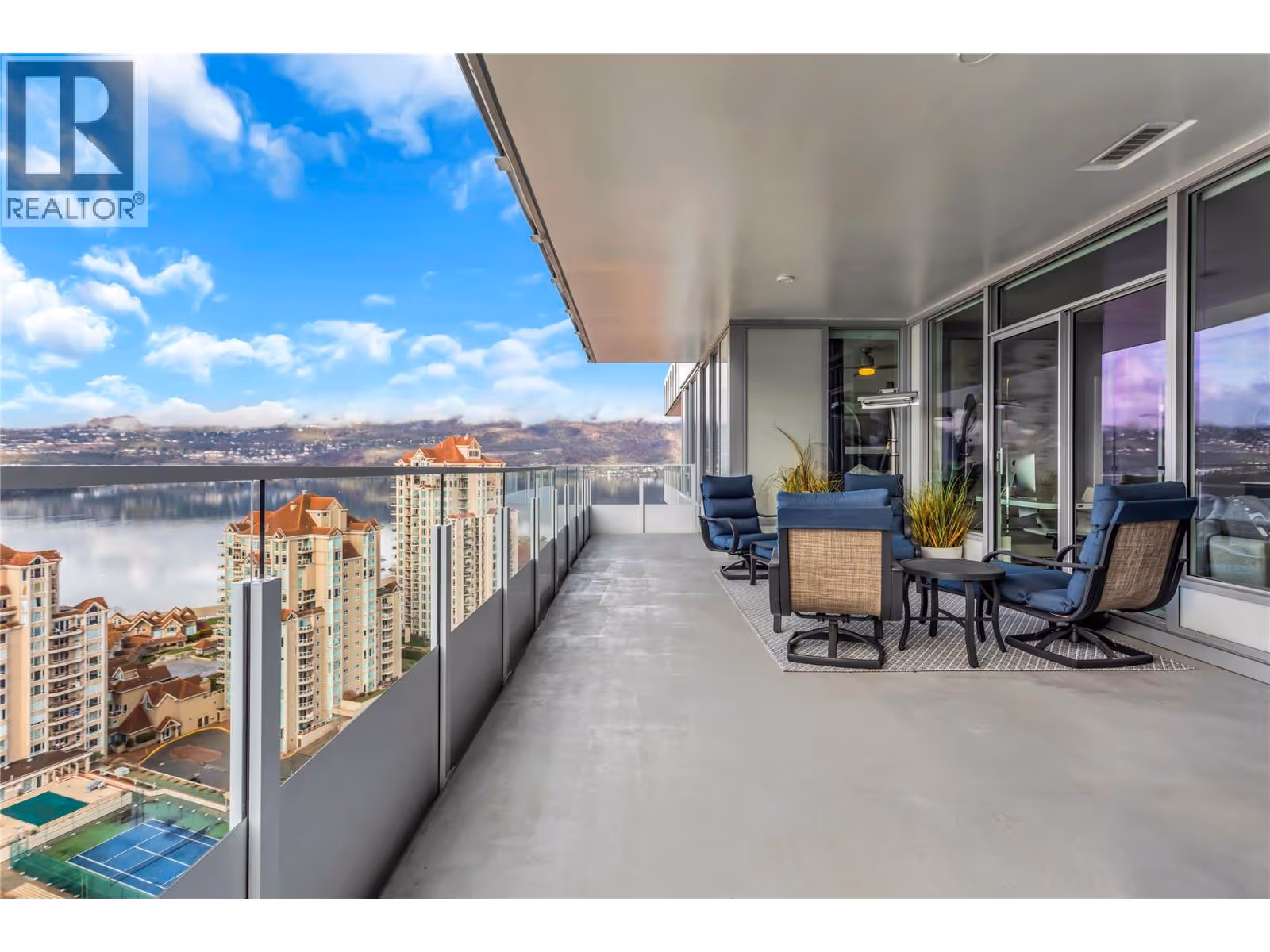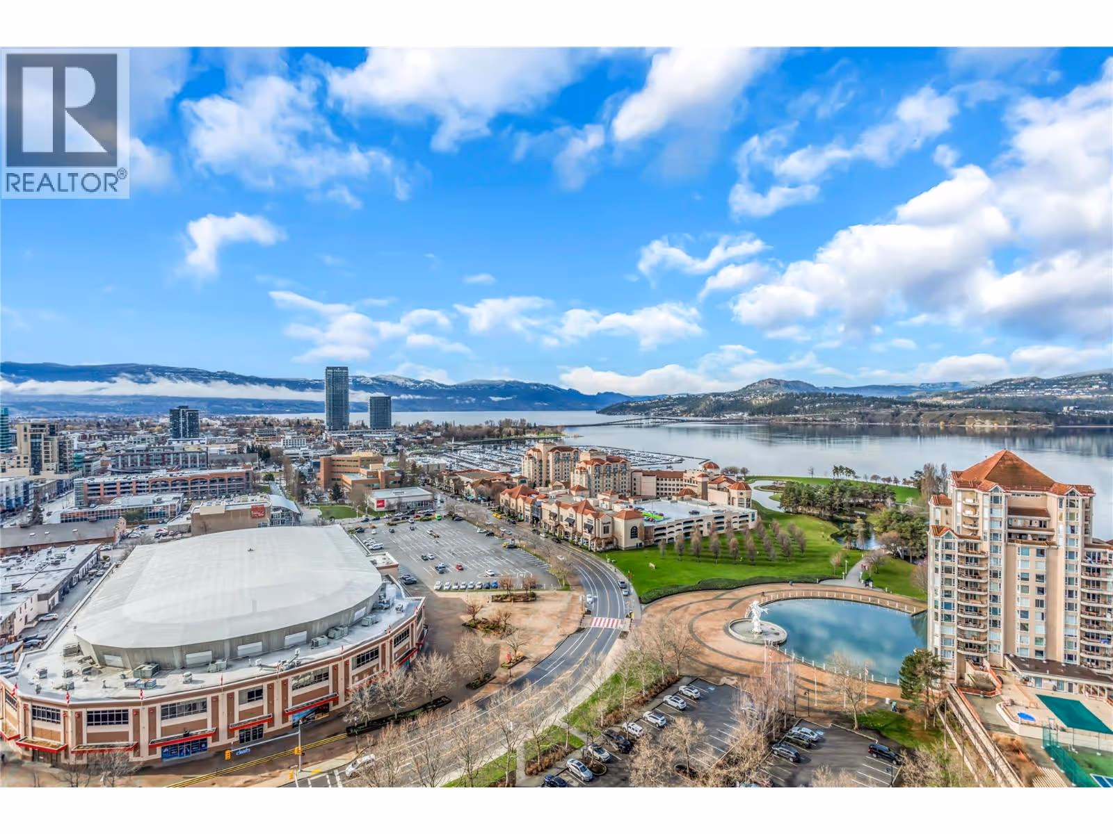 Not your average One Water Street apartment! UNOBSTRUCTED lake, city and mountain viewsfrom every window. HUGE deck. Lovingly maintained two bedroom unit with split floor plan. Bright island kitchen with built in coffee bar/ hutch, stainless steel appliances and loads of cabinets finished with pantry style pull out shelves. Spacious king accommodating primary suite with floor to ceiling windows, 5 piece ensuite and walk-in closet. Beautifully finished throughout. The 20th floor offers a view that is not so high you can't enjoy the view but high enough to be above any obstructions. One Water Street offers a 1.3-acre oasis of resort-style amenities. Residents enjoy access to two outdoor pools, inviting lounge areas with fire pits, a state-of-the-art fitness center with a yoga studio, an entertainment space, a business center, a pickleball court, and guest suites. The building's prime location places residents within easy reach of on-site restaurants and coffee shops, and within walking distance of the beach, the lake, downtown Kelowna, and the yacht club. To enhance convenience, the residence includes a dedicated parking stall and storage locker. This One Water Street condo is more than a home; it's a lifestyle, offering unparalleled views and a wealth of amenities in a prime location. (id:58842)
