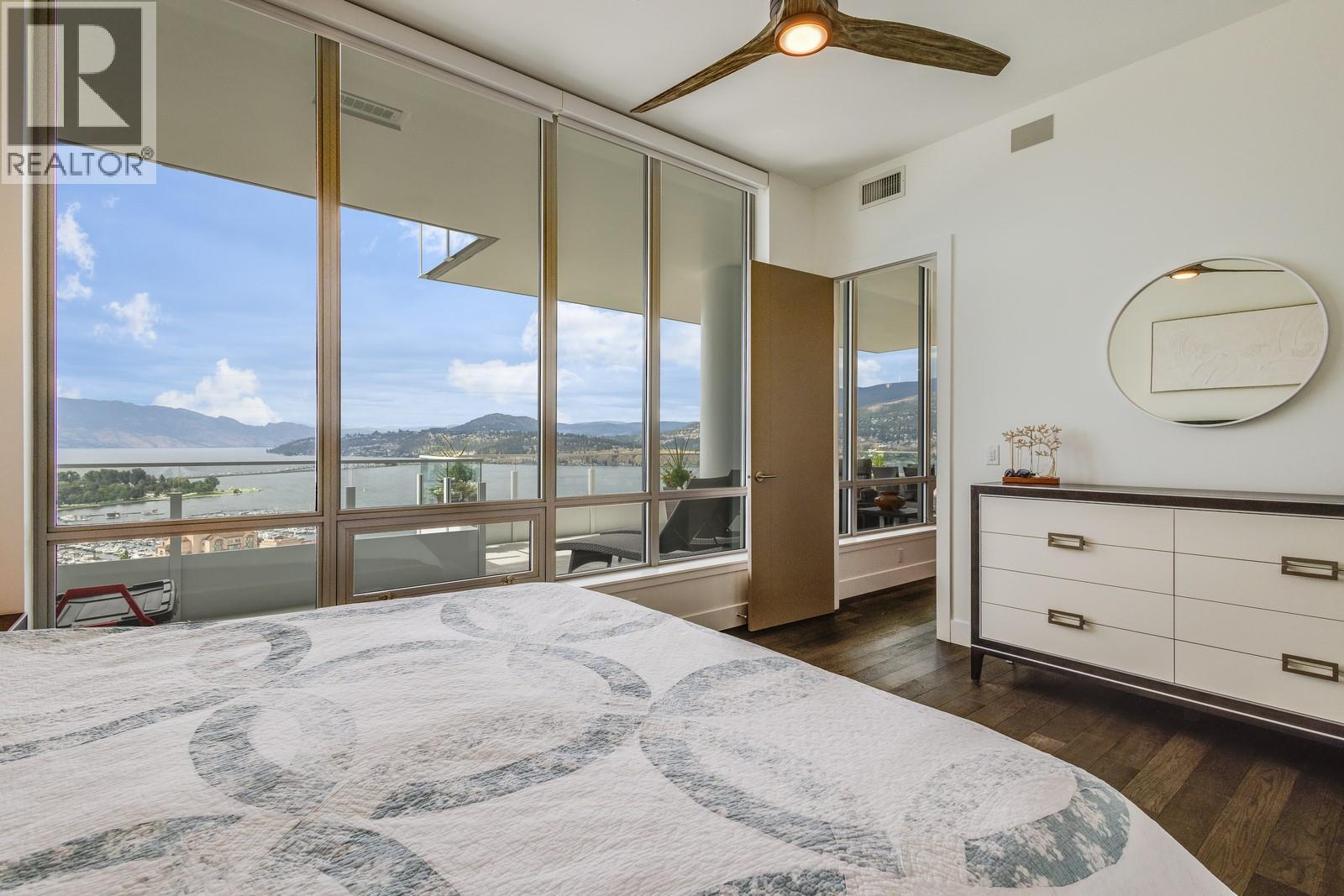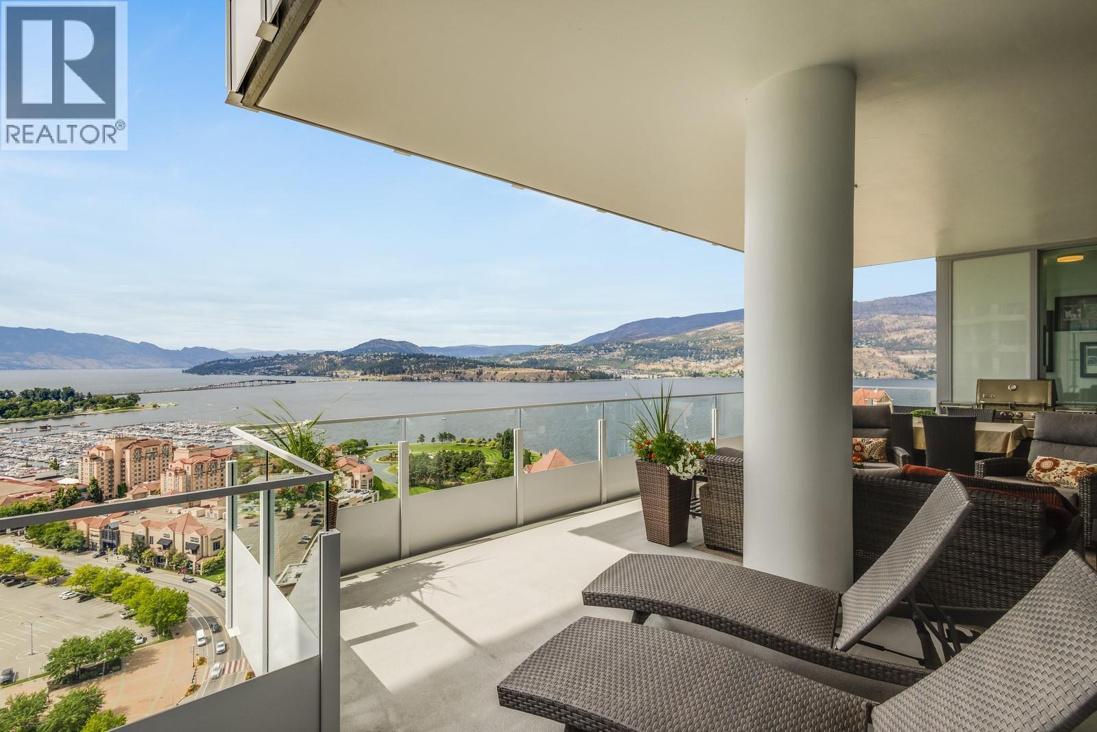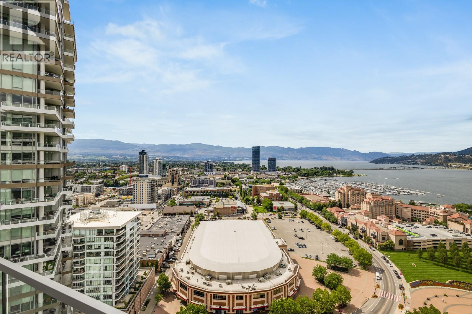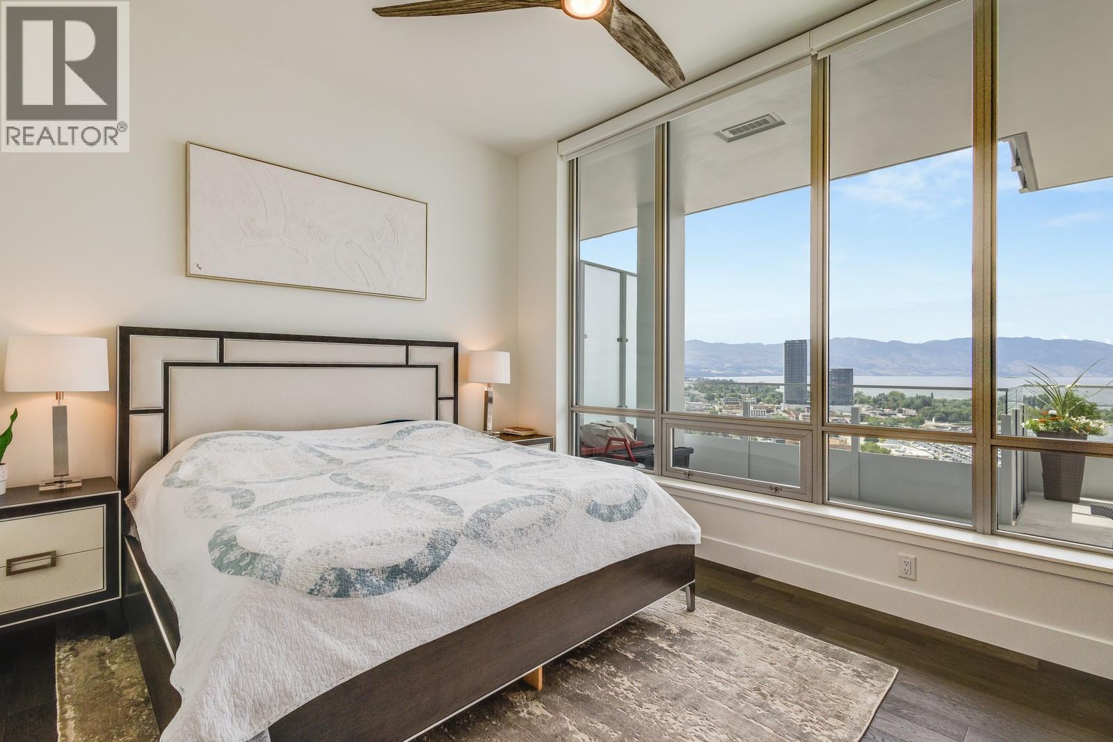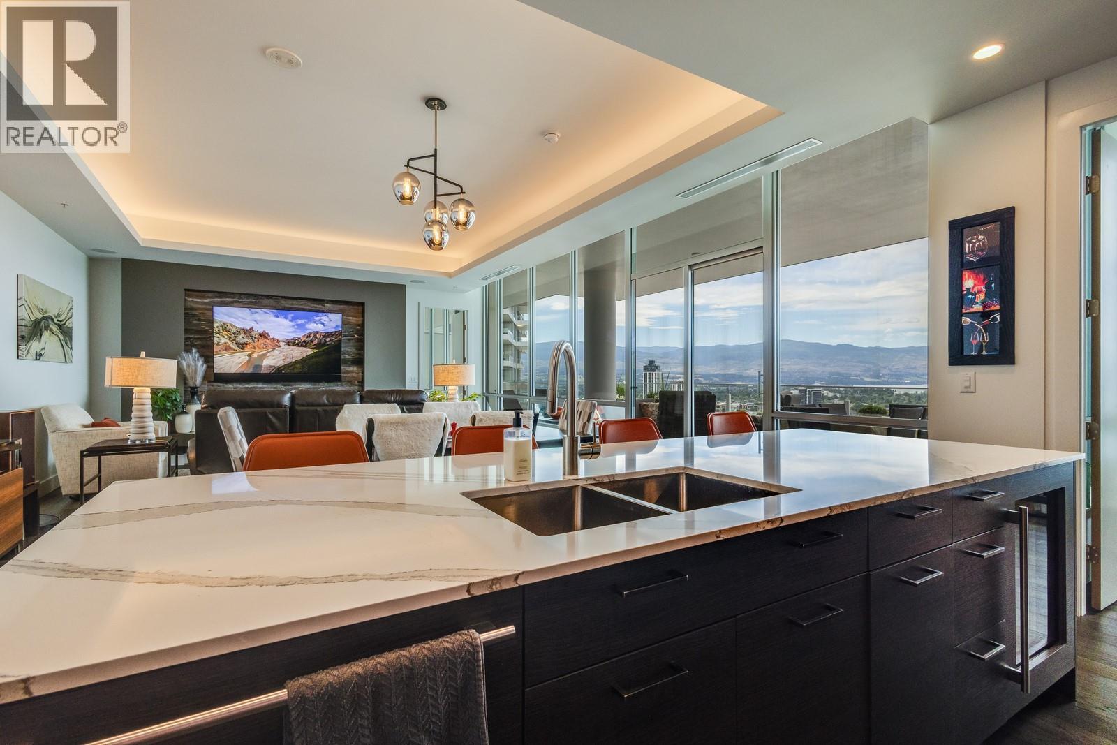 Sub-Penthouse | 2 Bedrooms + Den | 26th Floor | One Water Experience stunning panoramic vistas of Kelowna’s skyline, Lake Okanagan, and the scenic mountains from the upper levels of One Water Street! This spacious 2-bedroom plus den sub-penthouse features an open-concept layout with 10'5"" ceilings and high-end finishes throughout. The residence boasts a sleek selection of stainless steel appliances, including a Control4 smart home package, and an expansive outdoor patio perfect for enjoying the breathtaking surroundings. The modern kitchen is equipped with large quartz countertops, a waterfall island, a Sub-Zero fridge, Wolf gas cooktop, and built-in wall oven—ideal for entertaining while taking in the remarkable city and lake views through floor-to-ceiling windows. The adjacent living area is surrounded by windows and provides access to the large covered deck, creating a seamless indoor-outdoor living experience. The master suite features a luxurious spa-inspired ensuite and walk-in closet. What sets this unit apart is the 2 side-by-side parking spots and huge storage locker. Within this resort-like community, residents enjoy a range of amenities including BBQ and firepit enclaves, an oversized hot tub, swimming pools, a multi-purpose entertainment room, gym, a dog park, and more. Living on one of the best streets in Kelowna, you’re across the street from our world-famous lake and beaches, plus some of the best cafes, restaurants, and shops the Okanagan has to offer! (id:58842)