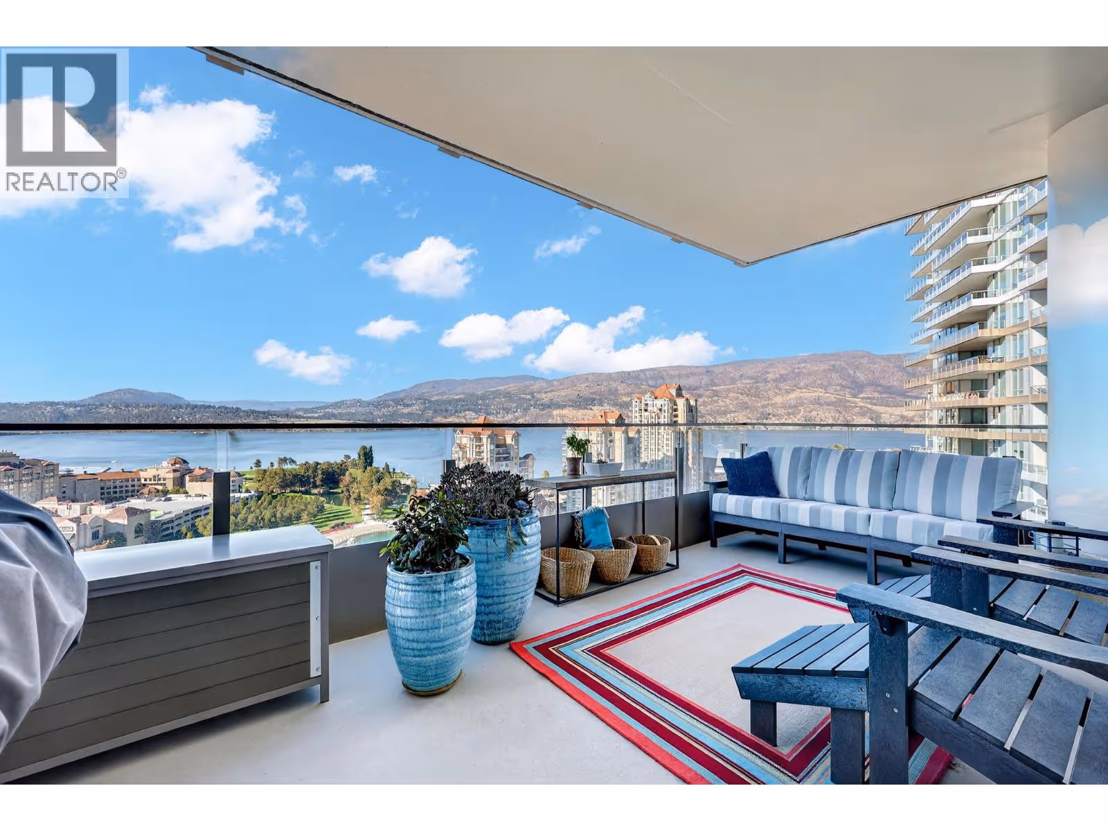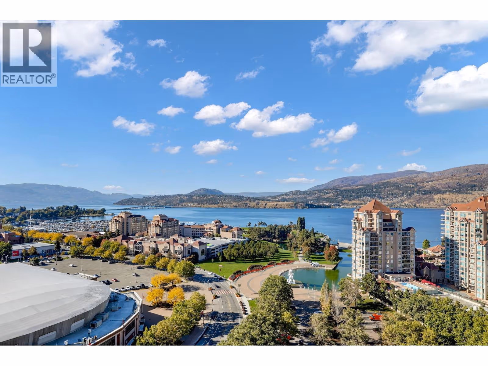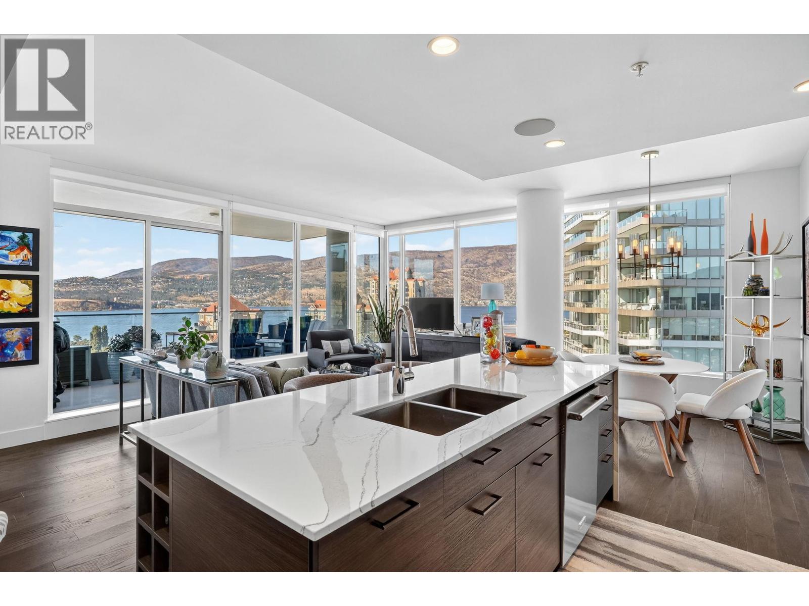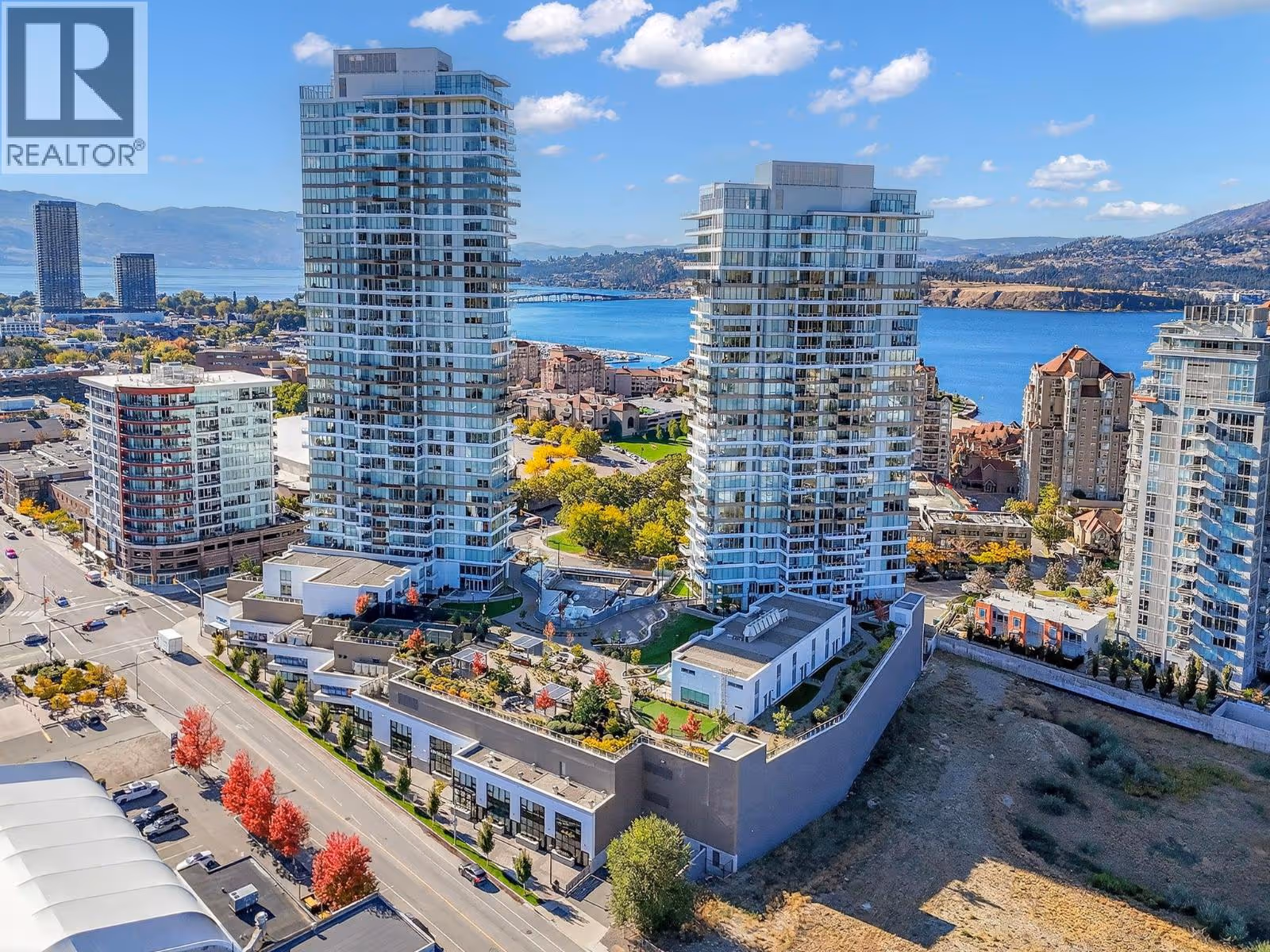 Welcome to One Water – Downtown Kelowna’s premier address for luxury urban living. This nearly new 2-bedroom, 2-bathroom condo sits high on the 16th floor, showcasing breathtaking 180° panoramic views of Lake Okanagan, downtown, and the surrounding mountains. Designed with sophistication in mind, the open-concept layout features floor-to-ceiling windows, soaring ceilings, and high-end finishes throughout. The gourmet kitchen boasts quartz countertops, a waterfall-edge island, KitchenAid stainless steel appliances, a gas 5-burner cooktop, soft-close cabinetry, and an under-mounted sink. Enjoy the privacy of a split-bedroom design and unwind on the spacious covered deck with a natural gas BBQ hookup. Another feature of this stunning home is the Control4 entertainment system, which includes a built in sound system and allows control of lights, thermostat, and door lock from your phone or a wall mounted iPad. Additional highlights include in-suite laundry, secured underground parking with EV charging, and a storage locker. One Water offers resort-style amenities: lap and leisure pools, hot tub, pickleball courts, fitness and yoga studios, fire pits, outdoor BBQ/lounge areas, pet zone, business centre, guest suite, car wash bay, and ample guest parking. Ideally located within walking distance to Kelowna’s vibrant waterfront, beaches, marina, restaurants, shops, and entertainment. Rentals and pets welcome – Okanagan living at its finest! (Up to 2 Large breed dogs allowed) (id:58842)