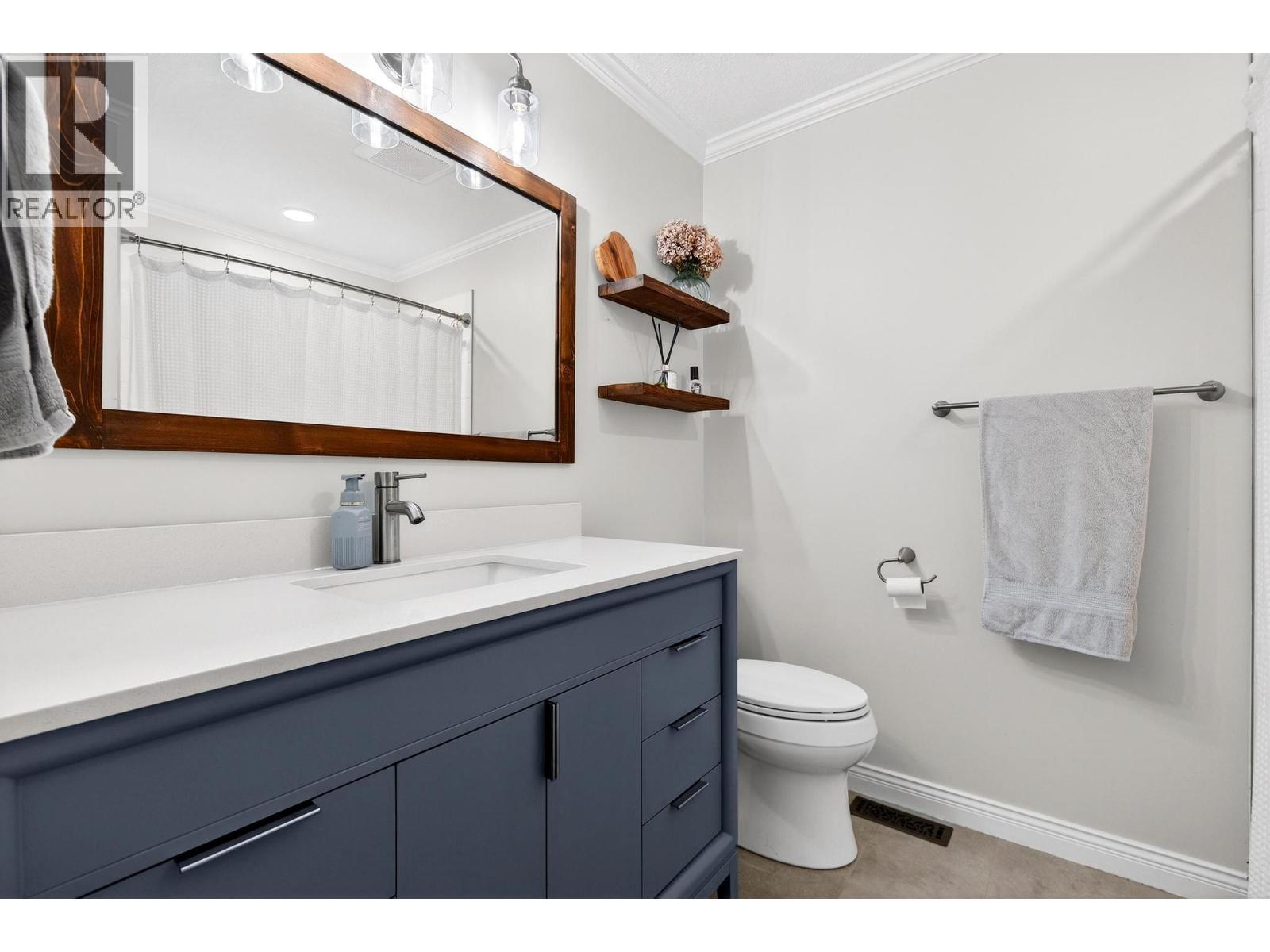 Beautifully updated 2,260 sq ft four level split offering space, comfort, and thoughtful upgrades throughout, situated on a generous .25 acre lot. This home features 3 bedrooms upstairs plus a den and 3 bathrooms, ideal for families or those needing flexible living space. Fresh paint and large windows create a bright, welcoming feel across every level. The kitchen shines with brand new quartz countertops, newer stainless steel appliances, and ample cabinetry, flowing seamlessly into the dining area. Step outside to the covered deck with skylights, overlooking a huge, fully fenced backyard with mature fruit trees, underground irrigation system, and plenty of room to play or garden. Backyard wired for a hot tub. Multiple living areas provide excellent separation, including a large rec room, a cozy family room with wood stove, and a dedicated den ideal for a home office or playroom. A huge laundry and mudroom adds everyday functionality. The baby’s room features gorgeous wainscotting, and bathrooms have been refreshed with new vanities. Additional highlights include central heating and cooling, a high end gas furnace, new HWT, 200 amp electrical service, PEX plumbing, central vac, whole home water filtration with UV purification, and Govee exterior lighting. The double garage, ample parking with room for an RV, and excellent storage throughout complete this well rounded home. Located in a very quiet neighborhood, walking distance to Davidson Elementary and minutes from the lake. (id:58842)