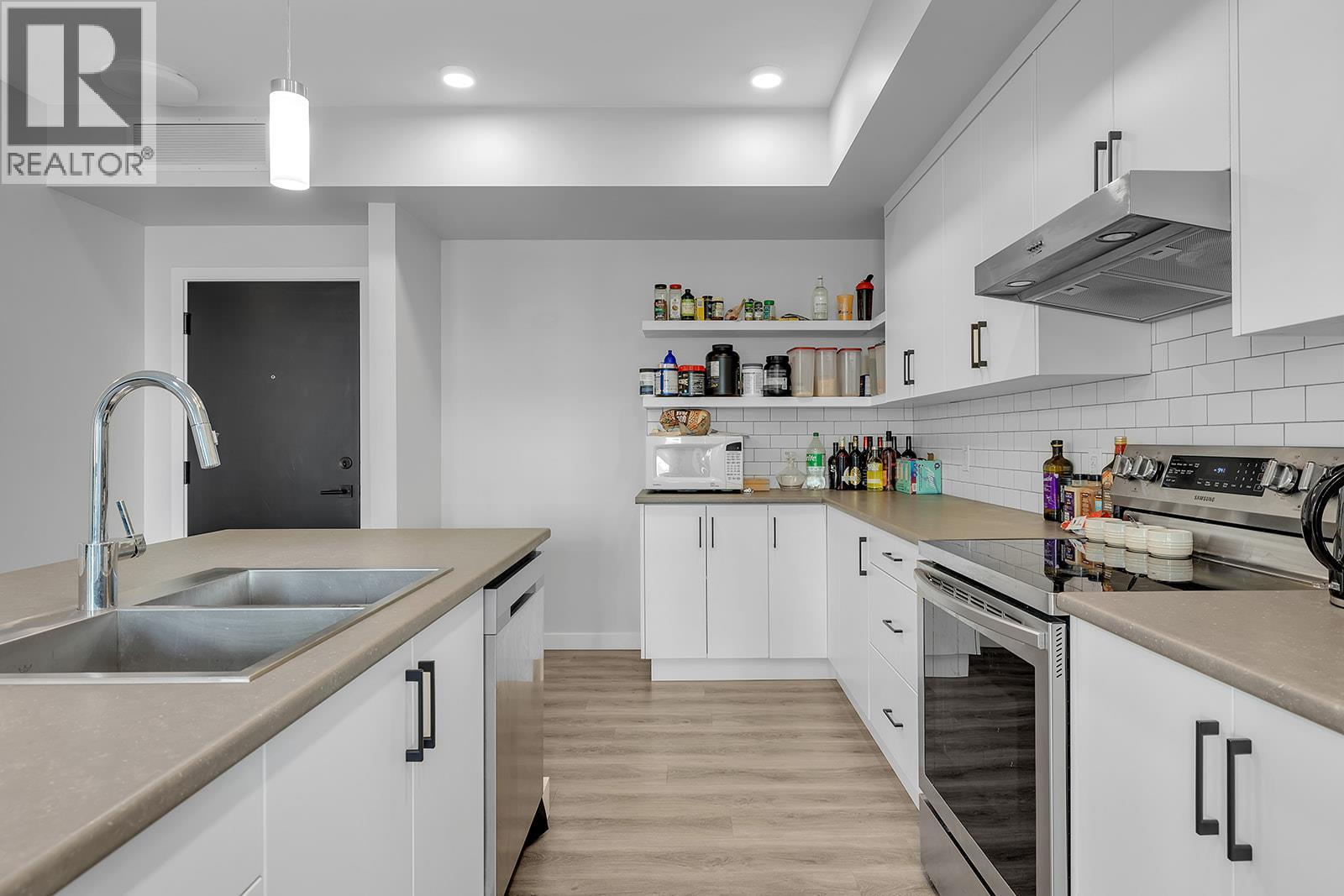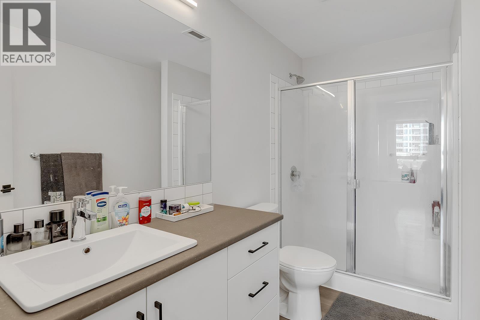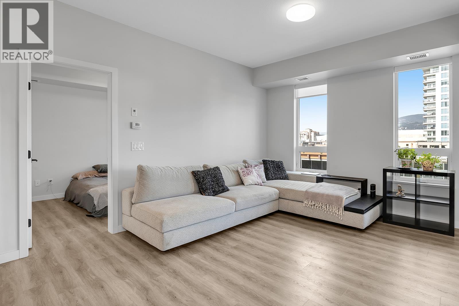 Welcome to this beautifully appointed 2-bed, 2-bath residence in the heart of downtown Kelowna. Thoughtfully designed with a split-bedroom layout, this home offers exceptional privacy and functionality. The bright, open-concept living space is complemented by a modern kitchen featuring stainless steel appliances and a large island with an eating bar, perfect for both everyday living and entertaining. The spacious primary suite includes a generous walk-through closet and a well-appointed 3-piece ensuite, while the second bedroom is ideal for guests, a home office, or additional living space. Step outside to the fully covered deck and take in stunning city and mountain views year-round. Additional highlights include in-unit laundry, central air, BBQ-friendly living, and a secure underground parking stall. Situated in a highly sought-after downtown location, you’re just steps from shopping, restaurants, entertainment, and the waterfront. Enjoy the best of Okanagan living with just a short stroll to Okanagan Lake. Call your favourite agent today to a schedule a viewing of your next home! (id:58842)