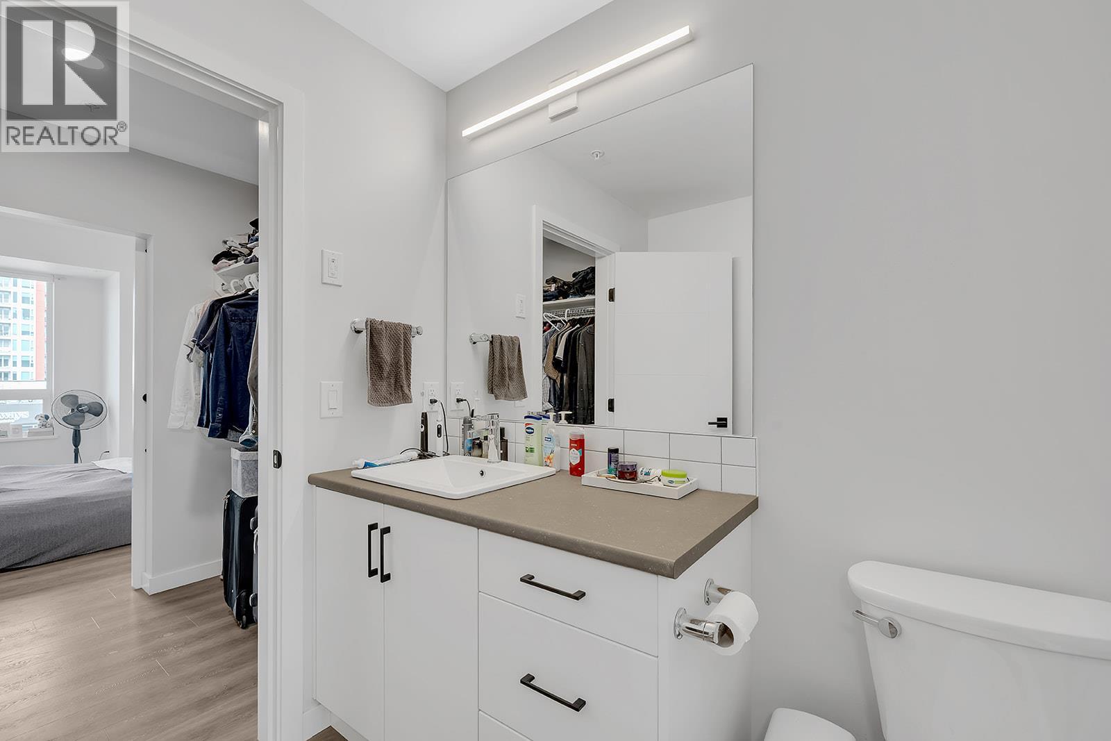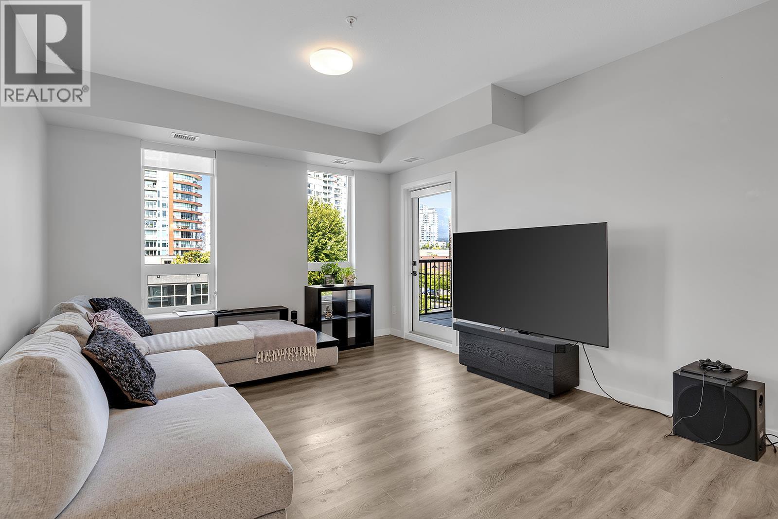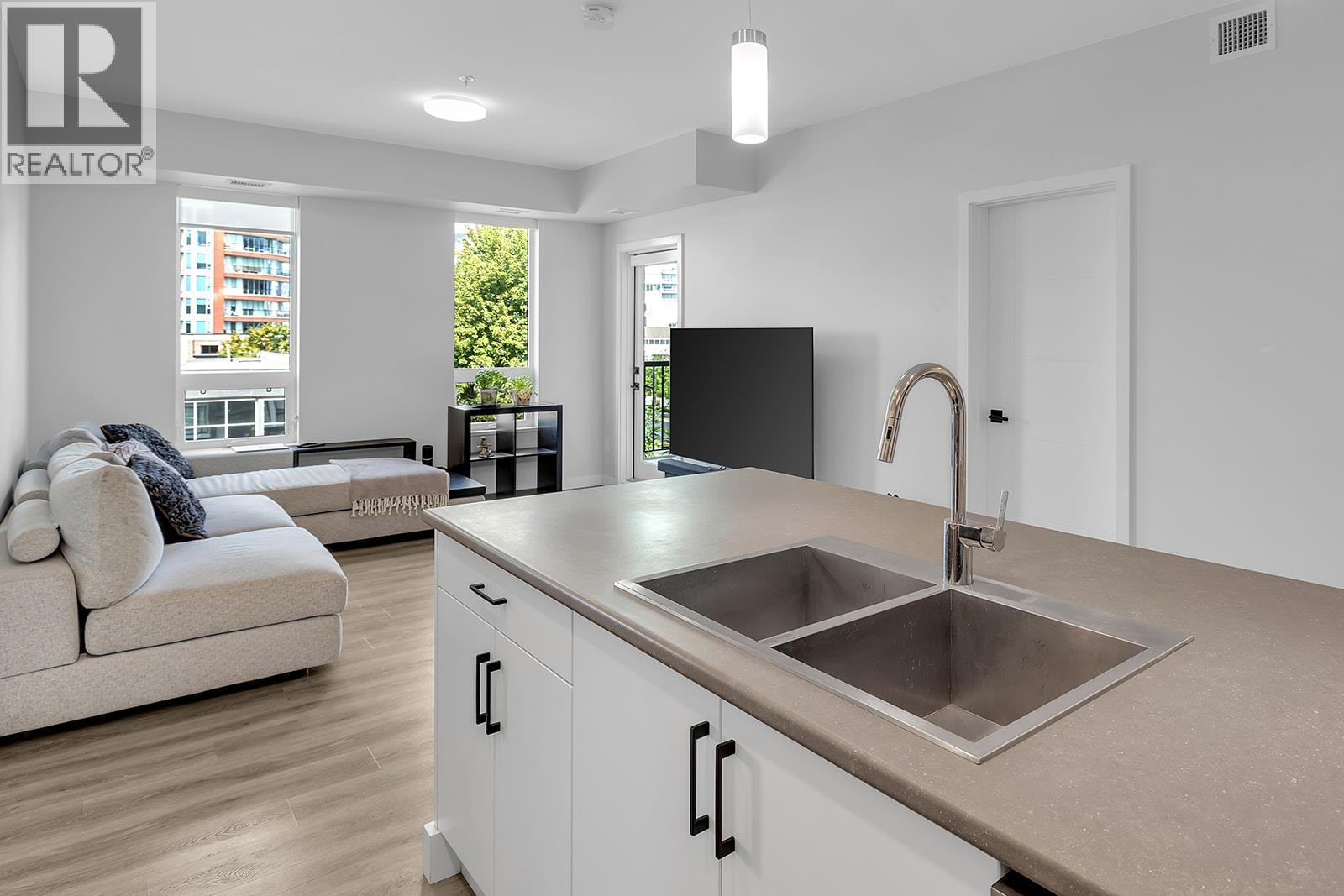 Welcome to this beautifully appointed 2-bed, 2-bath residence in the heart of downtown Kelowna. Thoughtfully designed with a split-bedroom layout, this home offers exceptional privacy and functionality. The bright, open-concept living space is complemented by a modern kitchen featuring stainless steel appliances and a large island with an eating bar, perfect for both everyday living and entertaining. The spacious primary suite includes a generous walk-through closet and a well-appointed 3-piece ensuite, while the second bedroom is ideal for guests, a home office, or additional living space. Step outside to the fully covered deck and take in stunning city and mountain views year-round. Additional highlights include in-unit laundry, central air, BBQ-friendly living, and a secure underground parking stall. Situated in a highly sought-after downtown location, you’re just steps from shopping, restaurants, entertainment, and the waterfront. Enjoy the best of Okanagan living with just a short stroll to Okanagan Lake. Call your favourite agent today to a schedule a viewing of your next home! (id:58842)