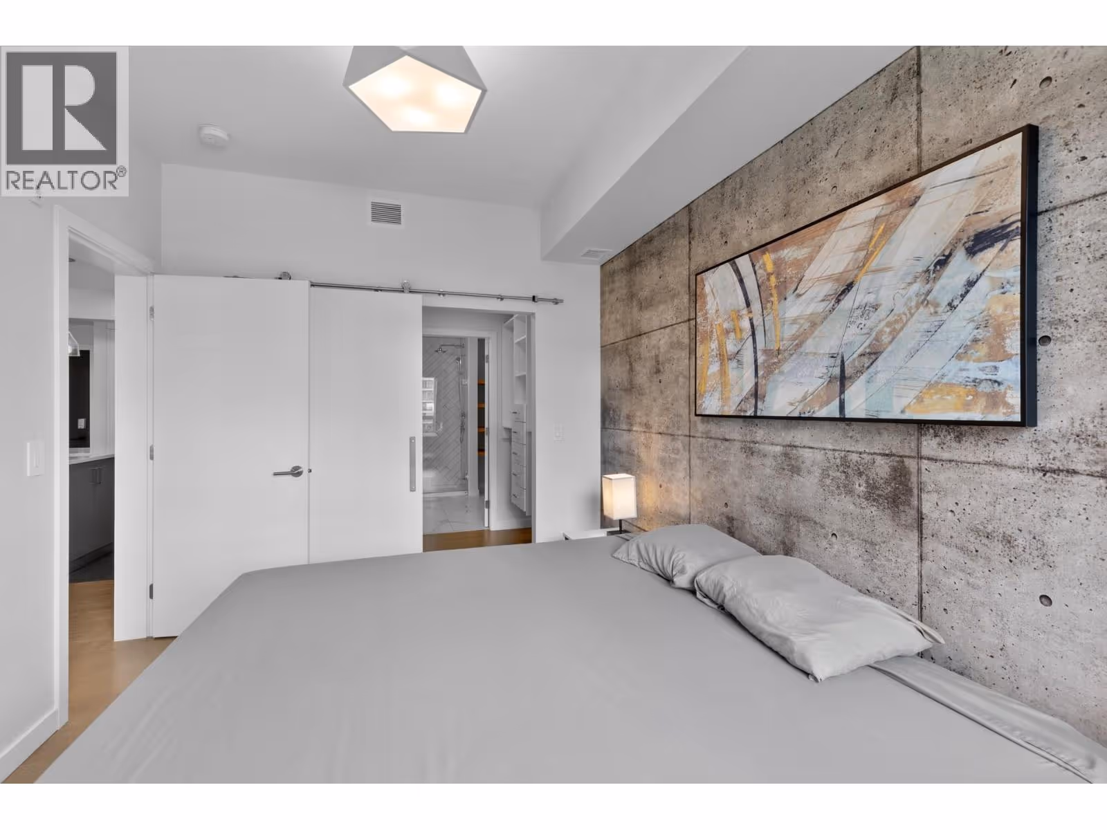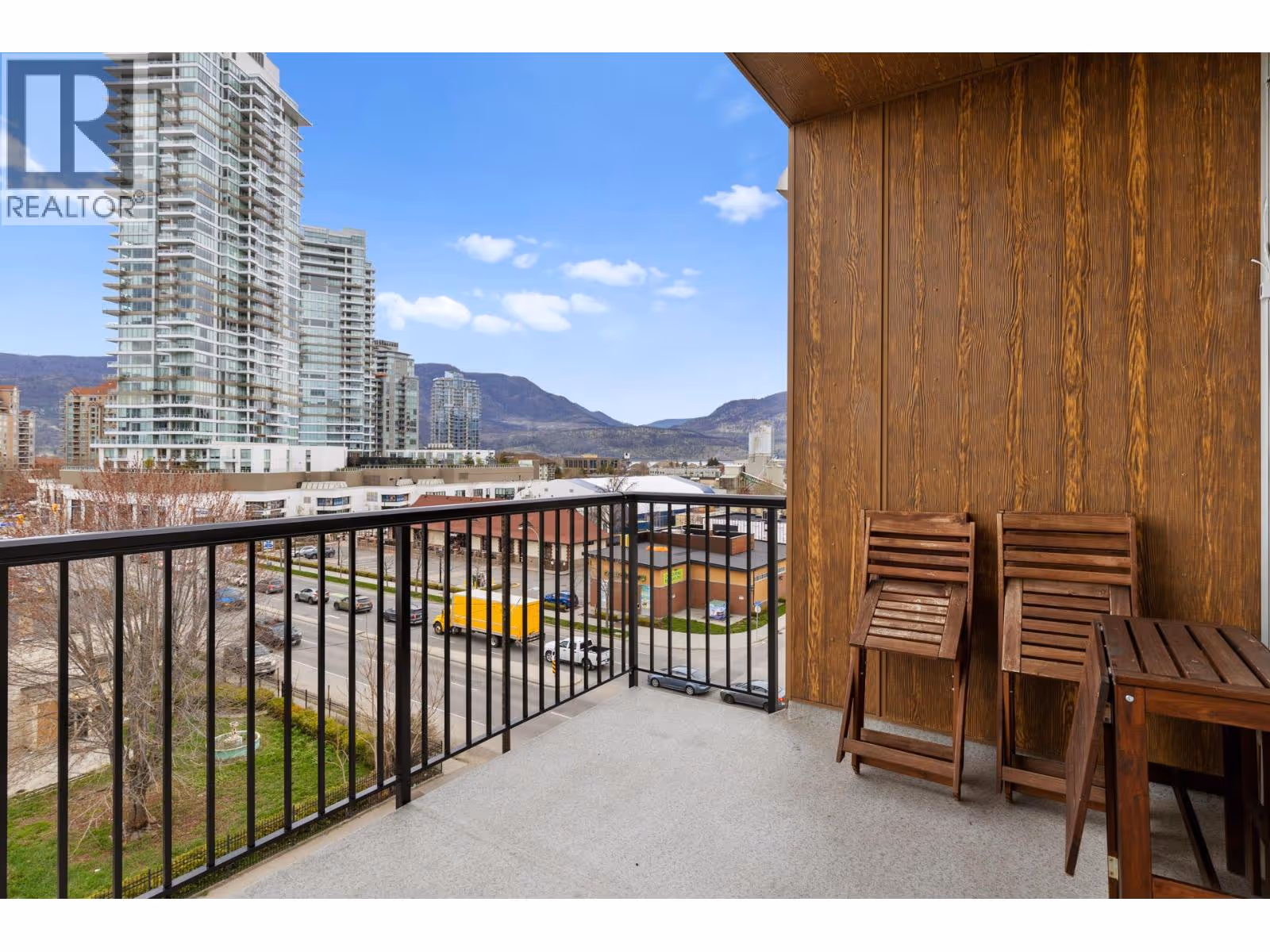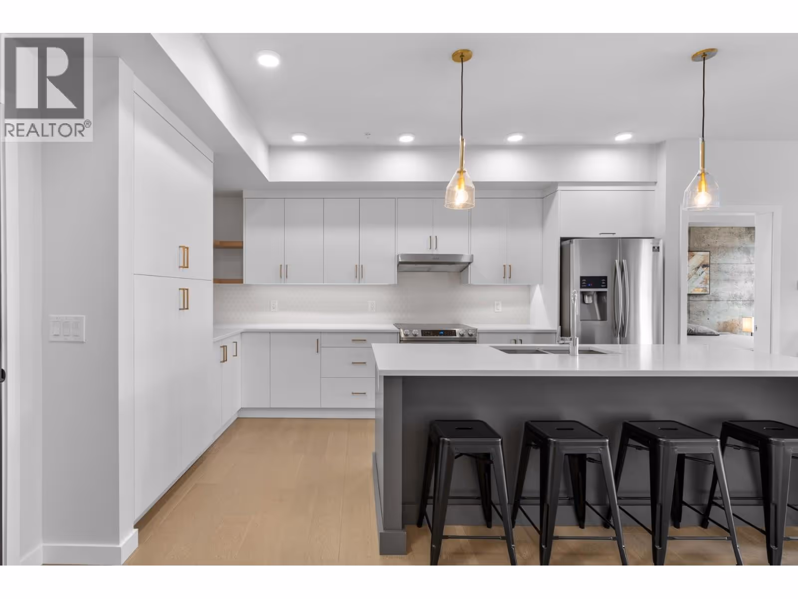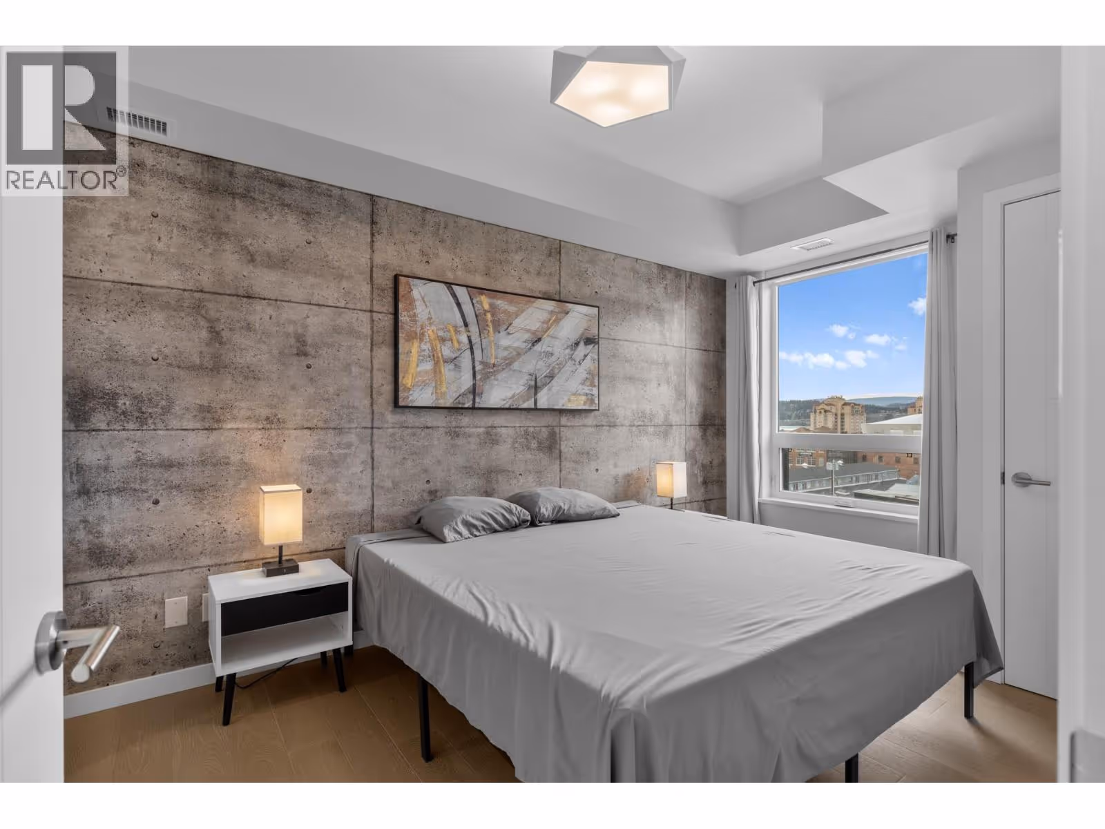 Modern Downtown Living in Kelowna’s Cultural District | 2 Bed + 2 Bath Condo with $30K in Upgrades. This stylish 2-bedroom, 2-bathroom condo blends modern finishes with thoughtful design and just steps from the city’s best restaurants, events, beaches, and parks. The unit features rich hardwood flooring and sleek tile run throughout, while under-cabinet lighting and upgraded appliances elevate the chef-inspired kitchen. The massive kitchen island, quartz countertops, and custom shelving provide both style and function, complemented by an upgraded pantry offering exceptional storage. The smart split-bedroom layout ensures privacy, ideal for guests or home office needs. The primary suite features a custom walk-in closet complete with two banks of drawers, and a spa-like ensuite. Both bathrooms are tastefully appointed, mirroring the home’s overall attention to detail. Enjoy west-facing views of Kelowna’s dynamic city core with a charming peekaboo view of Okanagan Lake. Forced air heating and cooling keep the space comfortable year-round. Additional features include: 2 conveniently located storage lockers (one on the same floor!), Custom closet system in the primary bedroom, Steps from the waterfront, Prospera Place, art galleries, dining, and more. Whether you’re looking for a full-time residence or a stylish urban retreat, this condo delivers on location, lifestyle, and luxury! (id:58842)