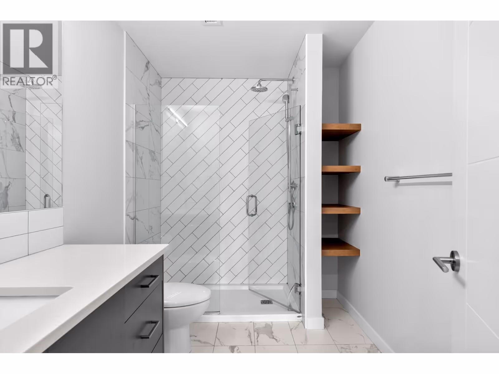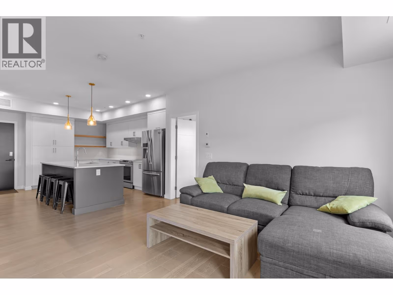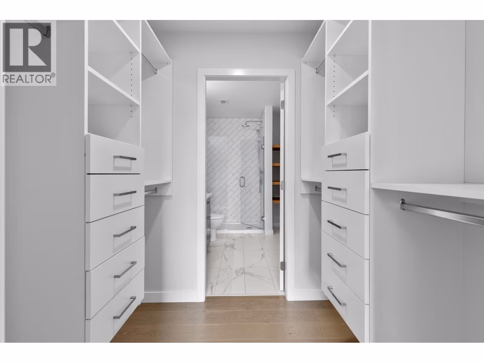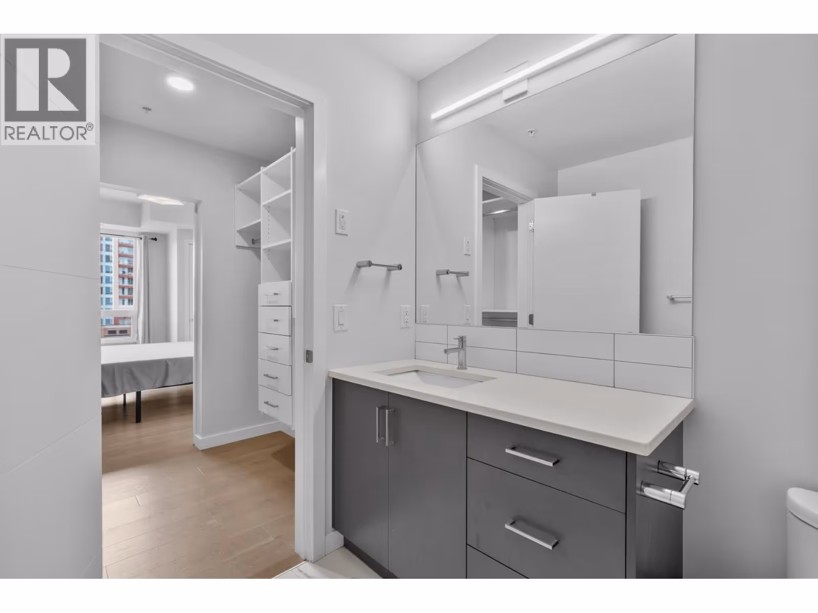 Modern Downtown Living in Kelowna’s Cultural District | 2 Bed + 2 Bath Condo with $30K in Upgrades. This stylish 2-bedroom, 2-bathroom condo blends modern finishes with thoughtful design and just steps from the city’s best restaurants, events, beaches, and parks. The unit features rich hardwood flooring and sleek tile run throughout, while under-cabinet lighting and upgraded appliances elevate the chef-inspired kitchen. The massive kitchen island, quartz countertops, and custom shelving provide both style and function, complemented by an upgraded pantry offering exceptional storage. The smart split-bedroom layout ensures privacy, ideal for guests or home office needs. The primary suite features a custom walk-in closet complete with two banks of drawers, and a spa-like ensuite. Both bathrooms are tastefully appointed, mirroring the home’s overall attention to detail. Enjoy west-facing views of Kelowna’s dynamic city core with a charming peekaboo view of Okanagan Lake. Forced air heating and cooling keep the space comfortable year-round. Additional features include: 2 conveniently located storage lockers (one on the same floor!), Custom closet system in the primary bedroom, Steps from the waterfront, Prospera Place, art galleries, dining, and more. Whether you’re looking for a full-time residence or a stylish urban retreat, this condo delivers on location, lifestyle, and luxury! (id:58842)