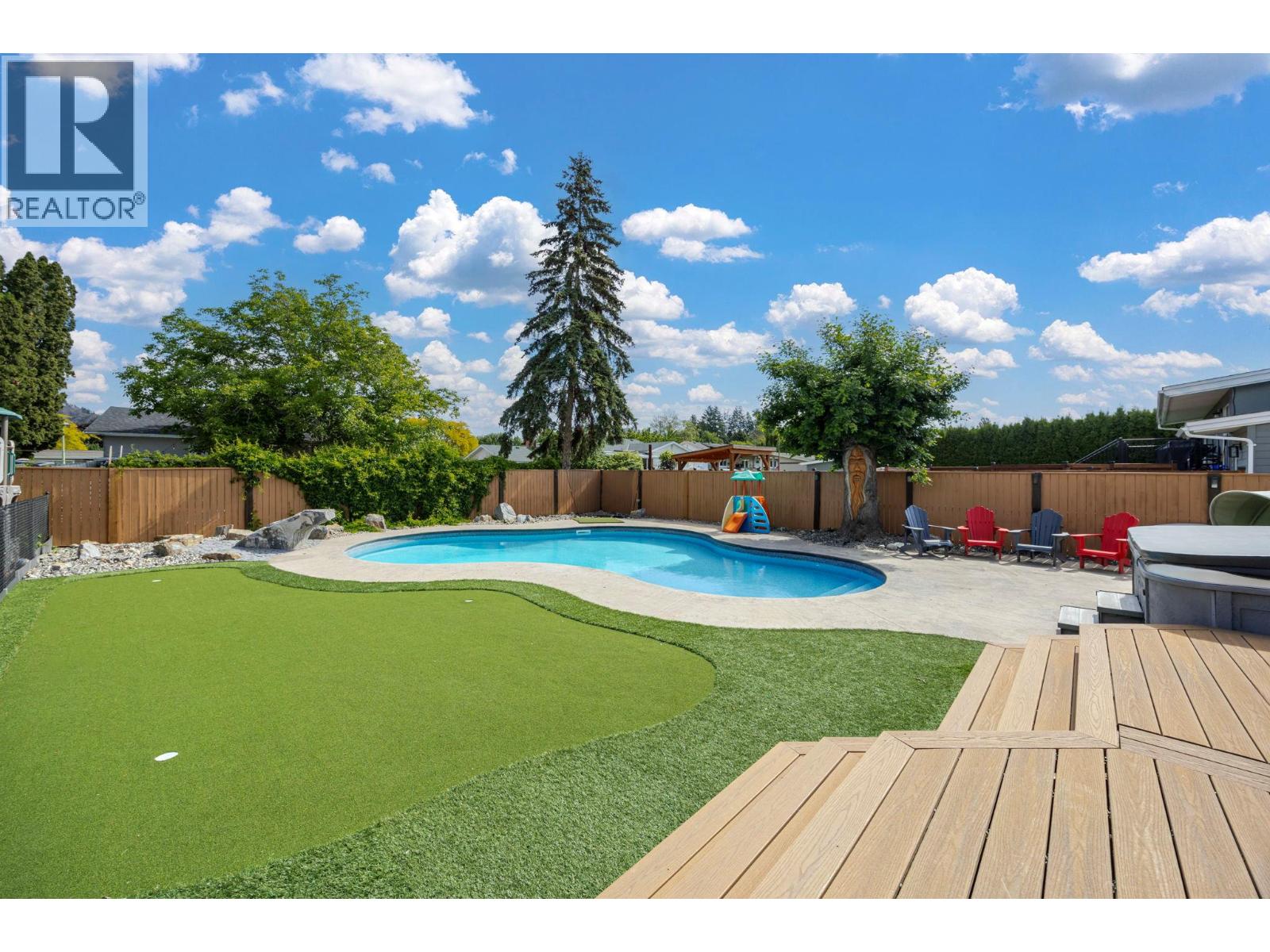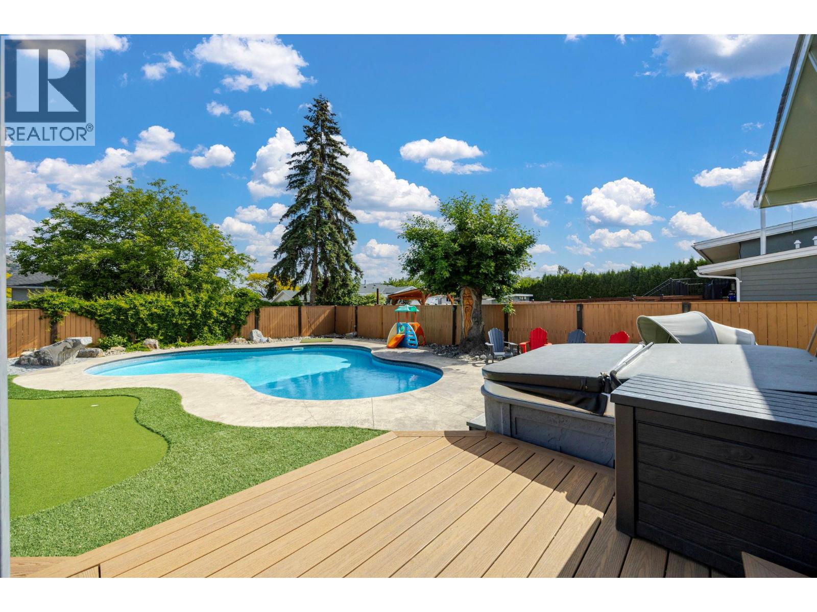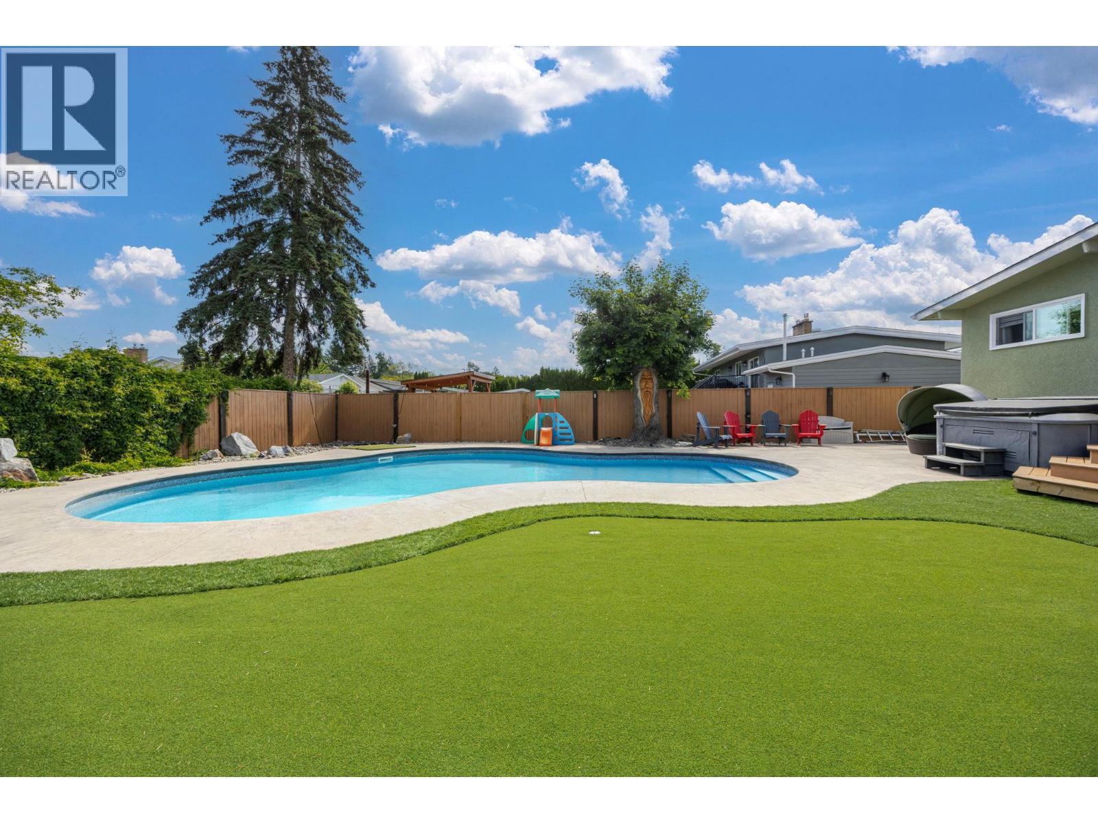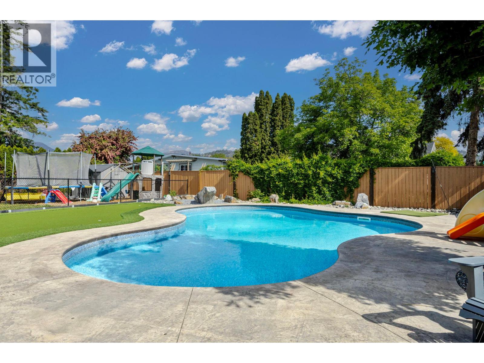 A Must See!! This fantastic family home has been completely updated. It features 5 bedrooms—3 upstairs and 2 downstairs. The interior is bright, enhanced by a fresh coat of paint, and equipped with new appliances. Both bathrooms have been recently renovated. The open living space provides easy access to the backyard from the back of the house. Enjoy the large patio, perfect for soaking up the afternoon sun. The downstairs area has been recently finished and could easily be converted into a suite. You'll find a spacious living room complete with a wet bar and an exercise room. All windows have been newly installed, creating a bright above-ground atmosphere. There are 2 large bedrooms. The backyard is truly an oasis, featuring a large pool and hot tub surrounded by beautiful landscaping, including a putting green, a diving rock, and a beautifully carved old oak tree. The area is fenced off from the play astructure and trampoline. The drive-through garage provides extra vehicle parking off the street. Location is key!! Situated in the heart of Old Glenmore, it's just a short distance to downtown and all the amenities you could need—restaurants, beaches, and shopping. It's also close to a great elementary school, sports fields, and recreational facilities. Plus, you're near all transit options and the Okanagan Rail Trail, which offers easy access to Kelowna. Don't miss out—book a private viewing now. (id:58842)