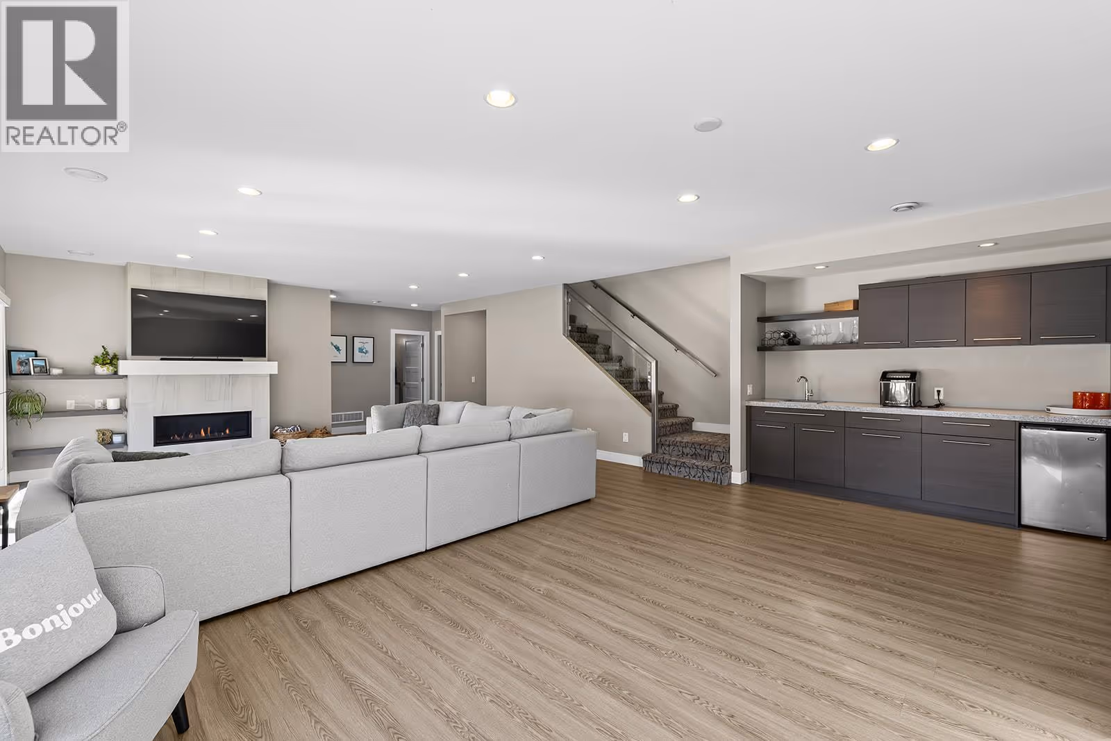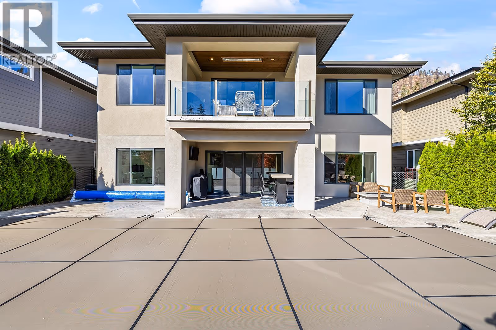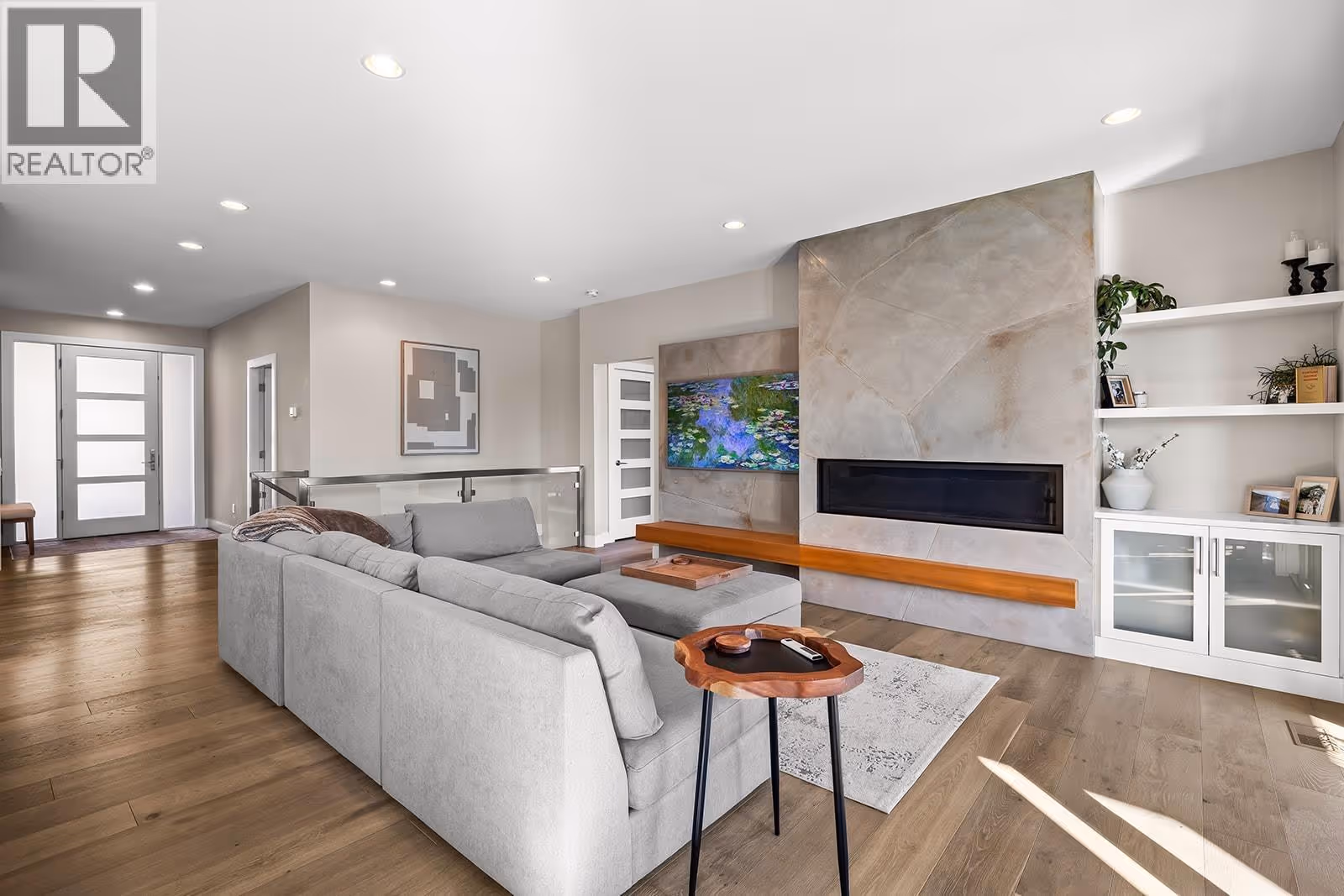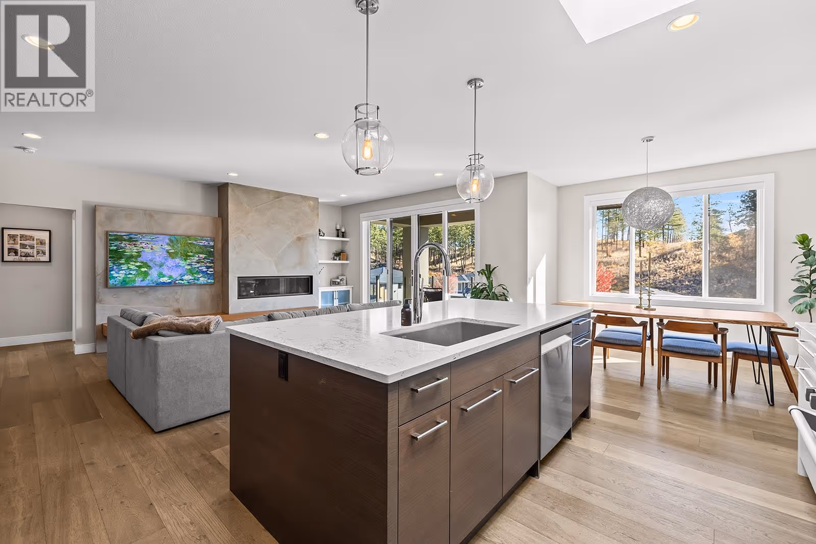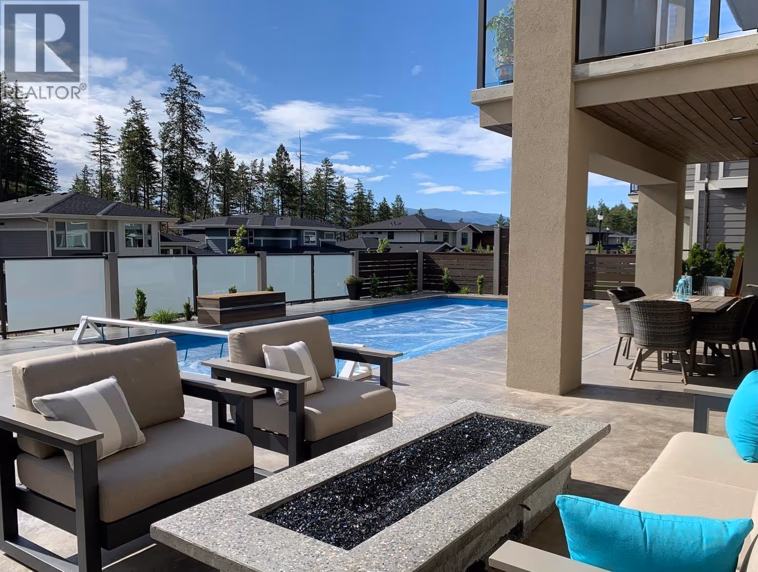 Welcome to your own private oasis with a pool, in the prestigious Wilden community. This modern residence sits on a quiet cul-de-sac, next to peaceful nature trails. Step inside to find wide plank oak flooring and an inviting living area highlighted by a stunning stamped concrete feature wall with a gas fireplace. The entertainers kitchen includes an oversized gas stove, quartz countertops, and a butler’s pantry for added storage. Perfect for gatherings, the kitchen is open to the dining room, living room and to the covered deck with a built-in heater so you can enjoy outdoor living well into the cooler months. The primary bedroom is spacious, while the connected ensuite evokes the feeling of a Scandinavian spa, featuring double vanities, soaker tub, walk-in shower, and a full walk-in closet with custom shelving. You'll find closets throughout the home include custom built-ins for organized living. Downstairs, the walk-out opens to a private salt water pool oasis, complete with a new pool liner, new winter and summer pool covers, a pool shed for accessories, & a custom concrete gas fire pit surrounded by a lounging area and outdoor TV. There's also 2 more bedrooms & a den! The 2 car garage has added electric heat & built in shelving. There is also a separate entrance to the lower level (suite potential). Set on a quiet street, this property offers quick access to schools, parks, hiking trails, the airport & Downtown, all while providing a private retreat surrounded by nature (id:58842)