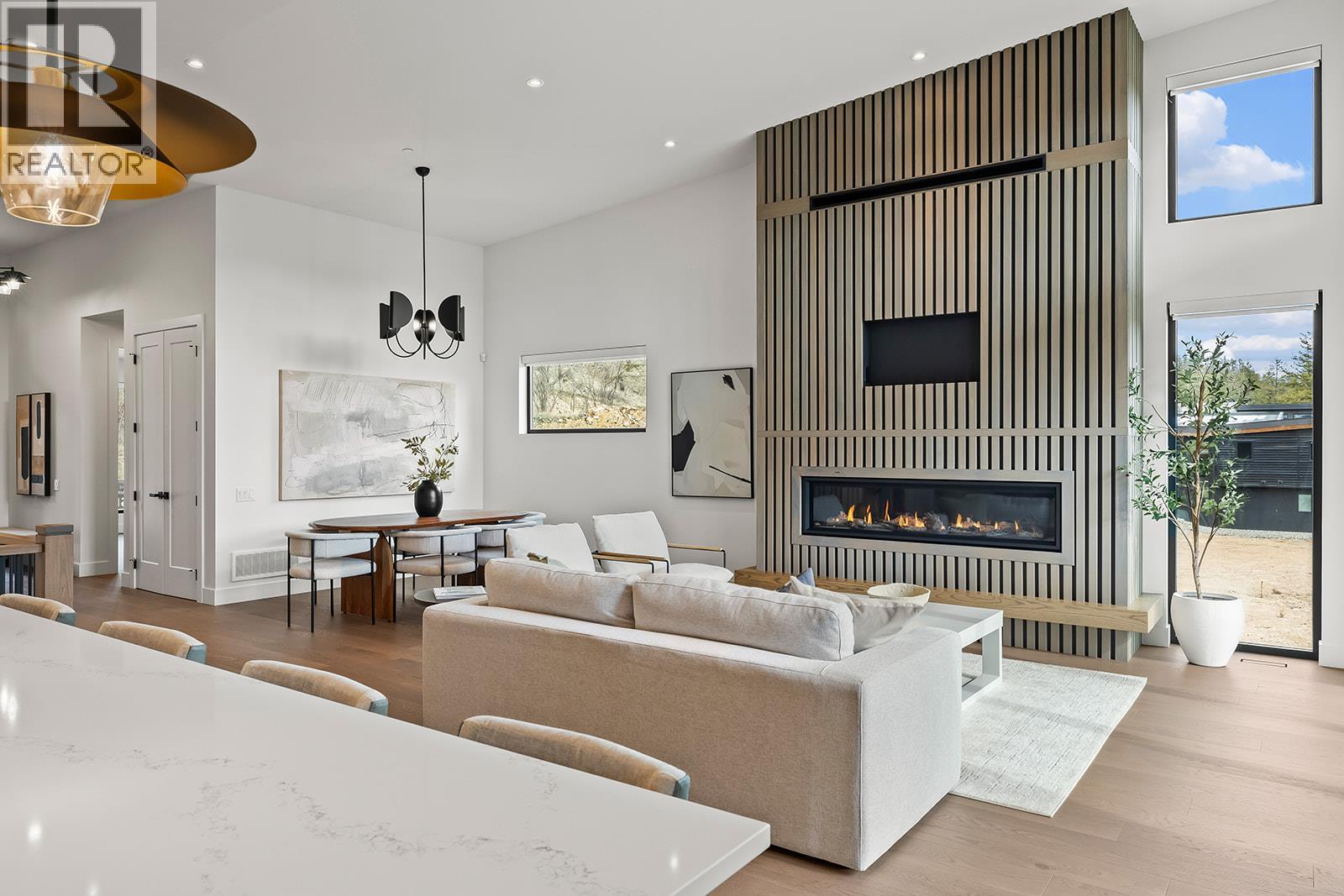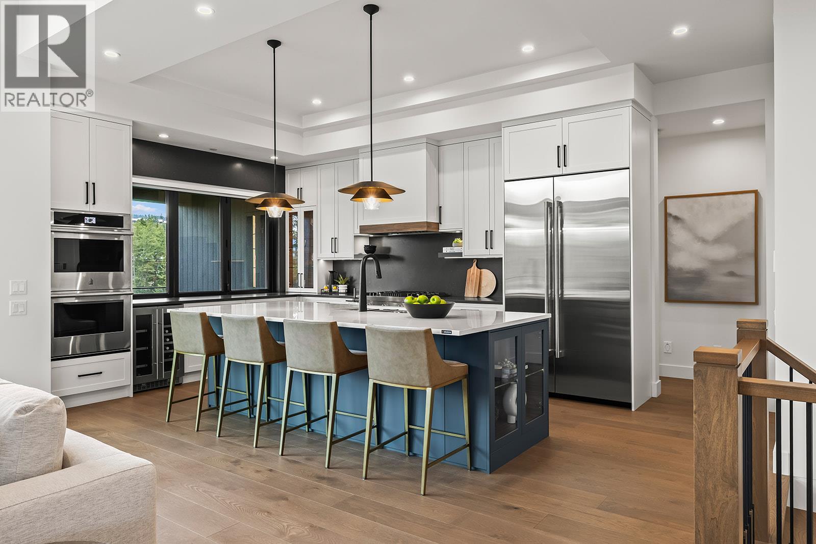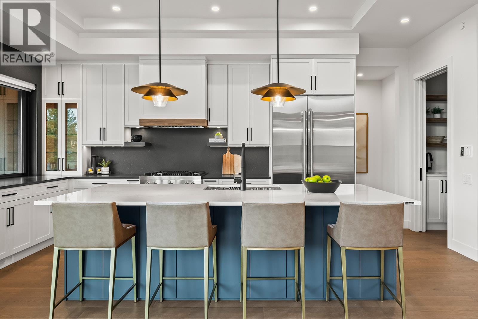 Welcome to The Fairway Lookout at Predator Ridge, an exceptional golf course new build home designed to capture the best of Predator Ridge lifestyle and Okanagan living. Perfectly positioned in one of the region’s most sought-after Predator Ridge golf communities, this stunning residence blends luxury design, open living spaces, and seamless indoor outdoor entertaining. Thoughtfully crafted by Carrington Homes, the main level showcases expansive windows framing breathtaking golf course and hillside views. The heart of the home is a chef-inspired kitchen featuring premium appliances, generous prep space, and a signature folding pass-through window that connects to the outdoor eating bar creating the ultimate entertaining experience. Covered outdoor living areas extend the space, perfect for summer dining, relaxing evenings, and enjoying the beauty of the Predator Ridge golf resort community. The primary retreat offers spectacular views, a spa-inspired ensuite, and a spacious walk-in closet, creating a peaceful sanctuary. Also on the main floor are convenient laundry, a stylish bathroom, and a versatile bedroom or office. The walk out lower level is designed for entertaining and recreation, featuring a spacious family room, an impressive wet bar opening to the outdoor patio bar, and a striking glass wine cellar. Additional bedrooms, bathrooms, and a flexible room ideal for a gym or guest suite provide ample space for family and guests. Outside, expansive decks and patios with a gas fire pit create multiple gathering spaces to enjoy warm Okanagan evenings. Experience luxury living at Predator Ridge, where championship golf, nature trails, and resort style amenities define the ultimate Predator Ridge Property. (id:58842)