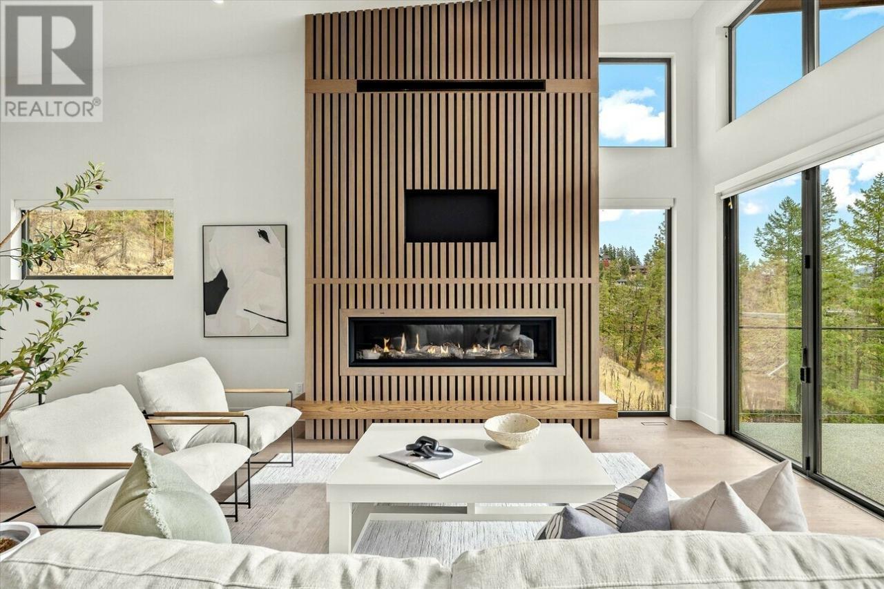 Carrington Homes takes great pride in introducing The Fairway Lookout at Predator Ridge! This exceptional custom home is ideal for individuals who enjoy hosting gatherings, cooking, or simply unwinding in spacious and open areas. With its covered outdoor spaces, chef-style kitchen, and a unique folding window that opens to the outdoor eating bar, this residence is a true gem. The Primary Bedroom offers breathtaking views and features a spa-like ensuite and a walk-in closet. The main floor also includes a laundry facility, an additional bathroom, and a secondary bedroom/office. The lower level is a walk-out showcasing a family room, an expansive wet bar that opens to the outdoor eating bar, and a glass-enclosed wine cellar, extra bedrooms, bathrooms, and a room that can serve as a gym or another bedroom. The outdoor deck and patio space provide ample seating areas and a gas fire pit, perfect for enjoying the Okanagan evenings. Photos may be representative. (id:58842)