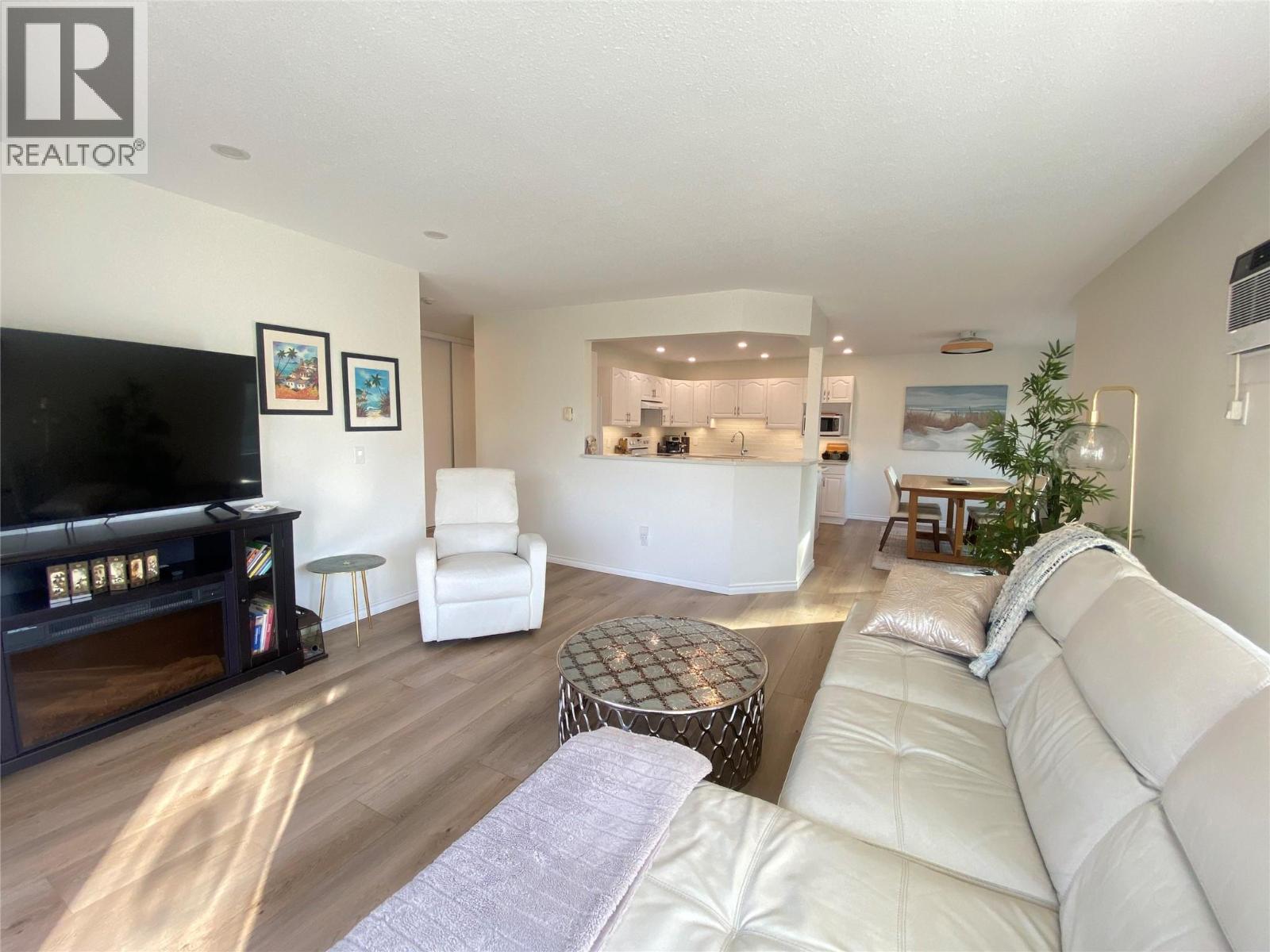 Nicely updated! Located on the 2nd floor, Southwest facing corner of the 55+complex - The Gables. This prime unit benefits from wonderful views of trees, mountains and the sky. Mill Creek flows close by and supports an abundance of wildlife. The floorplan is open and bright year round. The large kitchen is rare to find in a condo and features quartz countertops and an oversized Blanco Siligranit sink. The living area is open and has a good sized dining and living room. A large king sized primary has generous closet space and a full ensuite with soaker tub. There is also a 2nd bedroom, dedicated laundry and lots of in unit storage. The unit comes with central-vac, covered deck, underground parking, a separate storage locker also on the 2nd floor, etc. Some updates include granite counter tops, Siligranit sink, window coverings, baseboards, light fixtures, vanities in both bathrooms, lighting, baseboard heaters, soaker tub and luxury vinyl planking throughout. Centrally located close to Capri Shopping Centre, Doctors office, pharmacy, recreation, trails, etc. This is a lovely place to live. (id:58842)