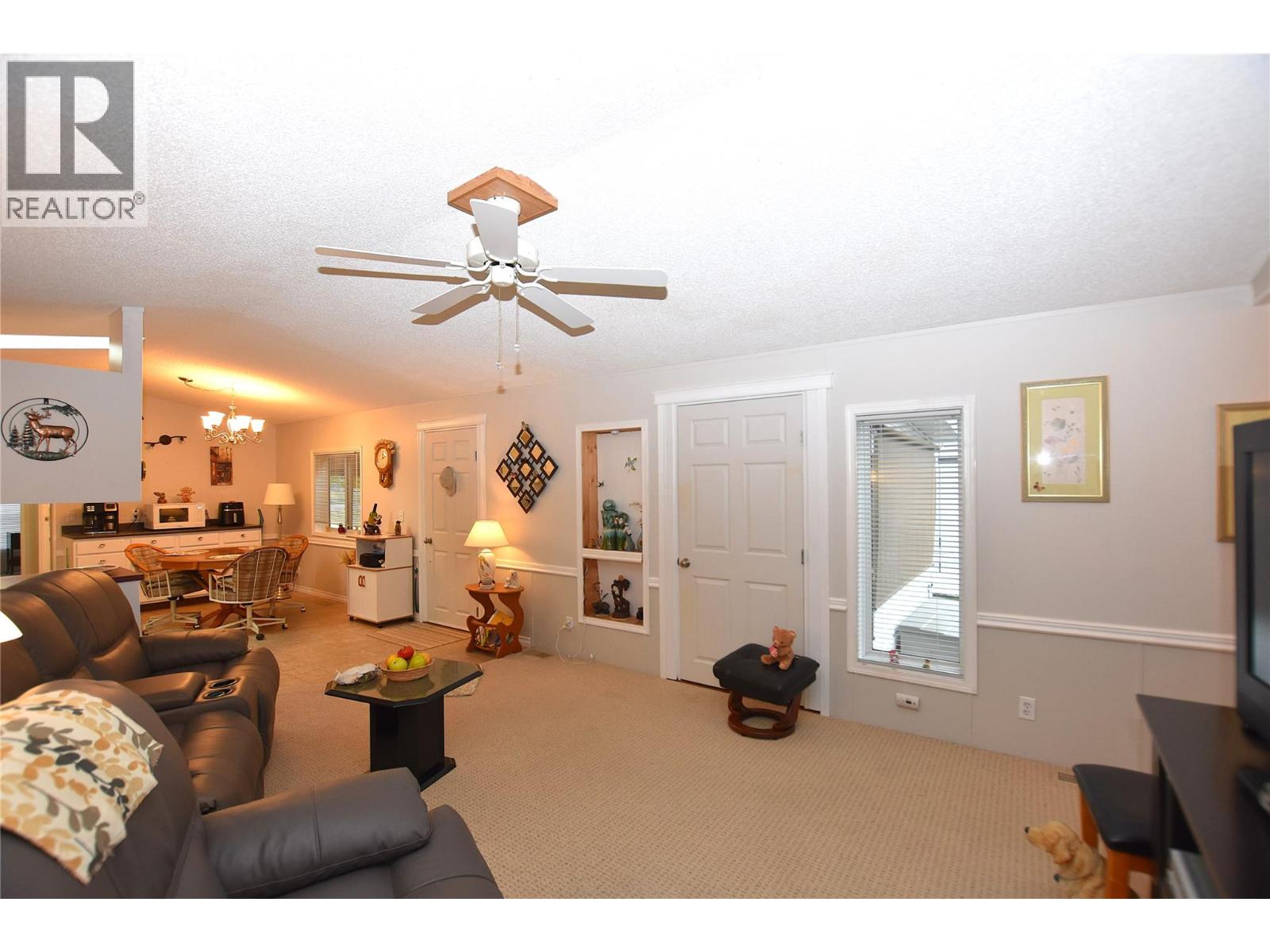 Welcome to Unit 3 at Coyote Crossing Villas! This is a beautifully maintained open-concept two-bedroom two-bath home with an addition. The kitchen is spacious and equipped with mostly updated appliances, a gas range, and a skylight that bathes the space in natural light. The primary bedroom is large enough to accommodate a king-sized bed comfortably and also has a 4 piece en-suite. Bedroom 2 is located at the opposite end of the home for added privacy. Outside, the patio provides a beautiful mountain view a perfect setting for gatherings with family and friends. Additional highlights of this home include a brand new furnace and heat pump (2025) an outdoor storage shed, a fully enclosed yard, and a garden bed for your green thumb. Coyote Crossings is a welcoming, family-oriented community that allows up to two pets (not over 25lbs) with the approval of the park manager. Conveniently located, it’s just a ten-minute drive from the town center and only four minutes away from the local golf course. Pad rental is $500.00 per month. Includes water, sewer (septic), garbage and snow removal. (id:58842)