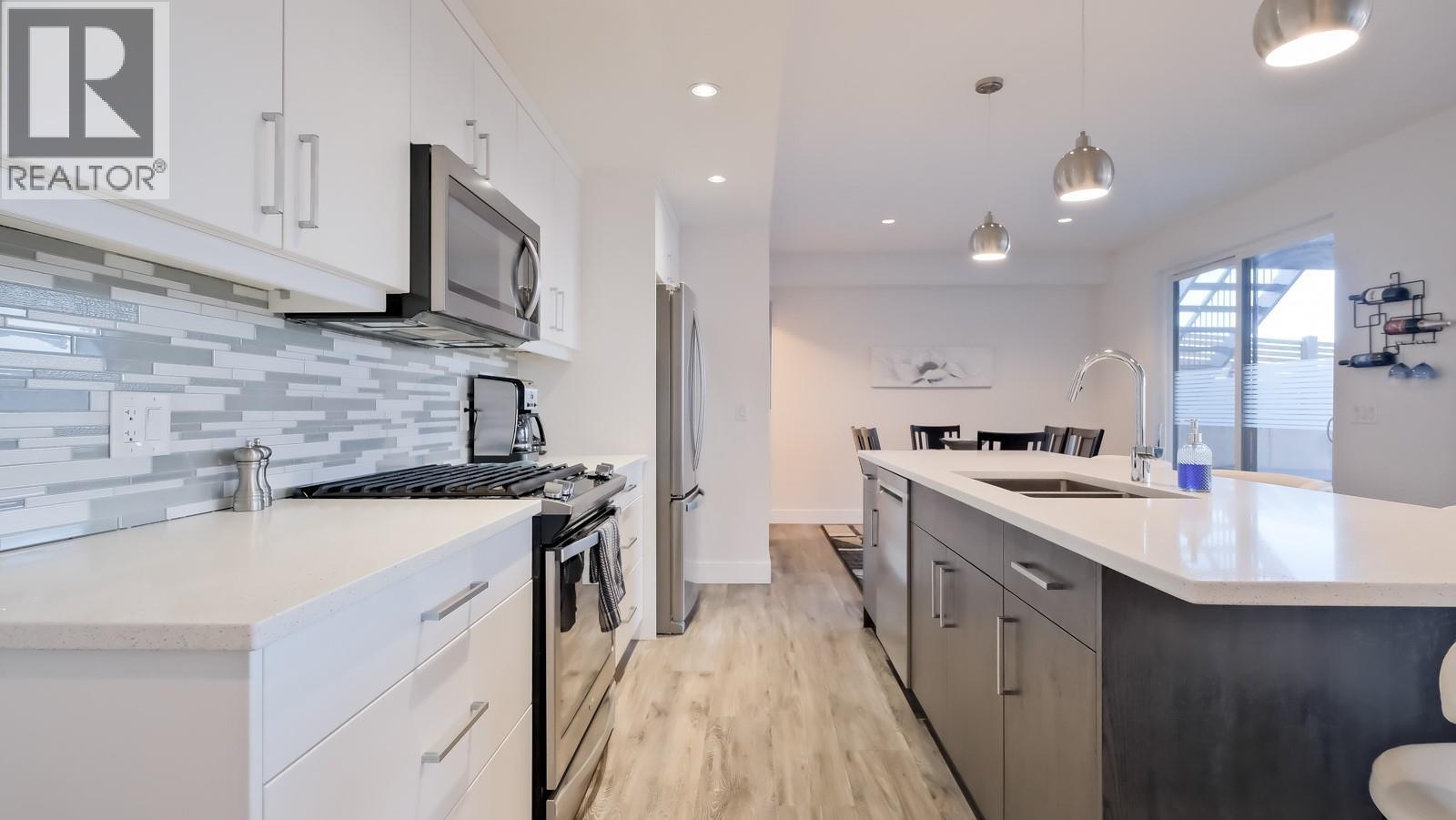 Discover refined living in this masterfully crafted 5-bedroom, 3-bathroom walkout rancher. The sophisticated open design showcases premium hardwood floors, a chef-inspired kitchen with luxurious quartz countertops, professional-grade stainless steel appliances, and built-in oven. The expansive covered deck extends from the grand living room, offering panoramic lake views and overlooking a private resort-style saltwater pool. The luxurious primary retreat on the main level features a walk-in closet and spa-inspired ensuite with heated floors, designer double vanity, tiled shower, and freestanding soaking tub. A second bedroom completes the main floor. The immaculate lower level offers a third bedroom plus a separate legal two-bedroom suite with high-end appliances, premium finishes, and sound engineering. Located in prestigious ""The Ponds"" community, enjoy hiking trails, winter skating, and easy access to Canyon Falls Middle School, Bellevue Creek Elementary, and shopping anchored by Save-On-Foods. Modern luxury meets natural splendor in this exceptional property. (id:58842)