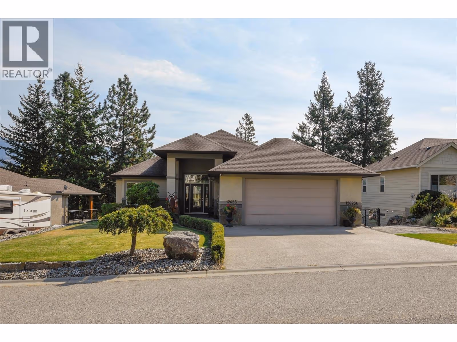 Welcome to The Lakes in Lake Country! This 5-bedroom, 3-bathroom home offers the perfect blend of comfort and flexibility with a legal 2-bedroom suite featuring its own private entrance. Ideal for Air BnB, rental income, extended family, or hosting guests, this home offers tremendous value. The main level boasts a bright, open-concept layout with soaring tray ceilings, hardwood floors, and expansive windows that frame the natural surroundings. The inviting living room with cozy fireplace flows seamlessly into the dining and kitchen areas, creating an ideal space for entertaining or relaxing. The primary suite offers a private retreat, complete with its own ensuite. Downstairs, the spacious suite provides 2 bedrooms, 1 bathroom, and a full kitchen, all with excellent privacy and separate entry. Outdoors, you’ll appreciate low-maintenance landscaping, a welcoming front yard, and extra parking for your travel trailer, boat AND several vehicles. The expansive parking is one of the many features that set this home apart from everything else in The Lakes. Located in a quiet, sought-after neighbourhood with public transit just a short walk away, this home is minutes from schools, parks, hiking trails, and Lake Country’s incredible lakes and wineries. A rare opportunity to enjoy the Okanagan lifestyle with income potential built right in! Tremendous value - please book a private viewing at your earliest convenience. (id:58842)
