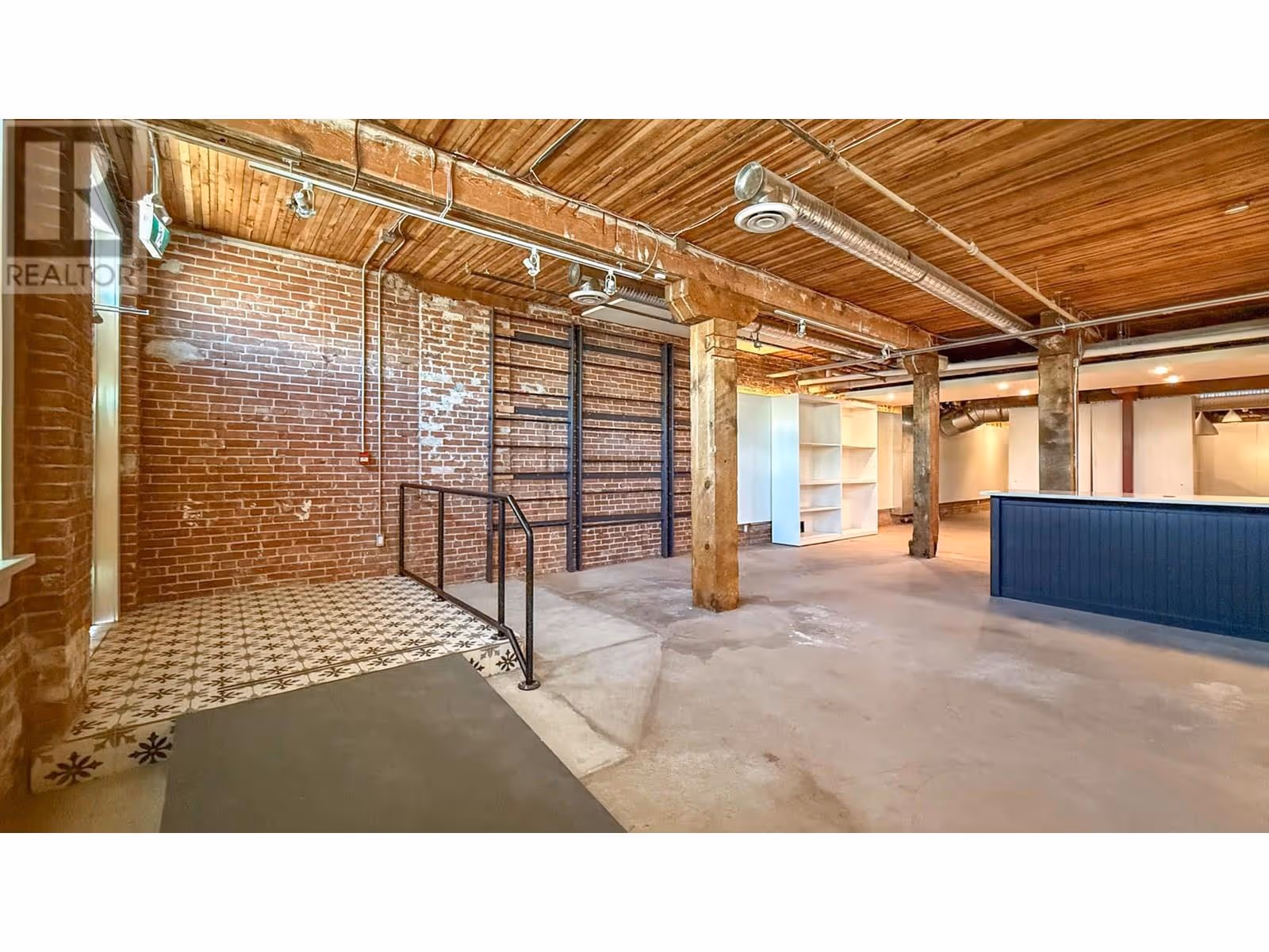 High profile commercial space available in the Old Cannery Building, an iconic 3-storey, brick building in Downtown Kelowna. Unit includes +/- 8,025 SF over the first two floors and includes elevator access as well as front & back staircases. Space has a modern urban feel with exposed brick walls & ventilation ducts and a post & beam architectural style throughout. Large frontage along Ellis St, with oversized street facing windows and an inviting entryway that flows into a large open work area. Second floor features more open work area and a washroom. Unit includes 3 dedicated parking stalls to the rear of the building with access to the unit from Cannery Lane. Located in proximity to Prospera Place, Rotary Centre for the Arts, Art Gallery, Law Courts, Downtown Library, Okanagan Centre for Innovation, Interior Health buildings and a short walk from the waterfront and the newly announced UBCO Downtown Campus. This is an inviting commercial space ideal for a business looking for a larger, more prominent presence in the downtown core. (id:58842)