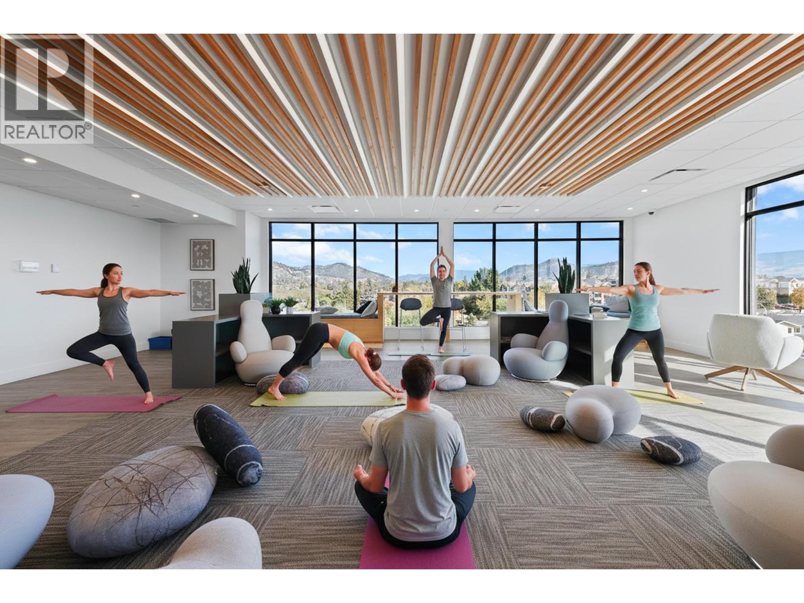 Five Crossings is an super cool building. It's so amenity rich and truly a lifestyle unlike any other. This thoughtfully designed micro suite maximizes space with a built-in Murphy bed, clever storage, a sleek galley kitchen, and a fully curated furniture package. The building offers resort-style amenities including a well equipped fitness centre, bike storage, dog wash, and a sophisticated lounge with a full kitchen, golf simulator, pool table, and elegant fireplace. The sixth floor reveals a serene yoga lounge and an expansive rooftop deck with BBQ area, covered outdoor dining/fireplace with breathtaking city and mountain views. The rooftop also features many cozy fire pit areas to enjoy with friends. On the ground level, enjoy a bocce area and a dog run. Additional conveniences include MODO car share, EV chargers, and a nice park across the street, all steps from Capri shopping and many restaurants. This condo combines style, comfort, and an unrivaled urban lifestyle. (id:58842)
