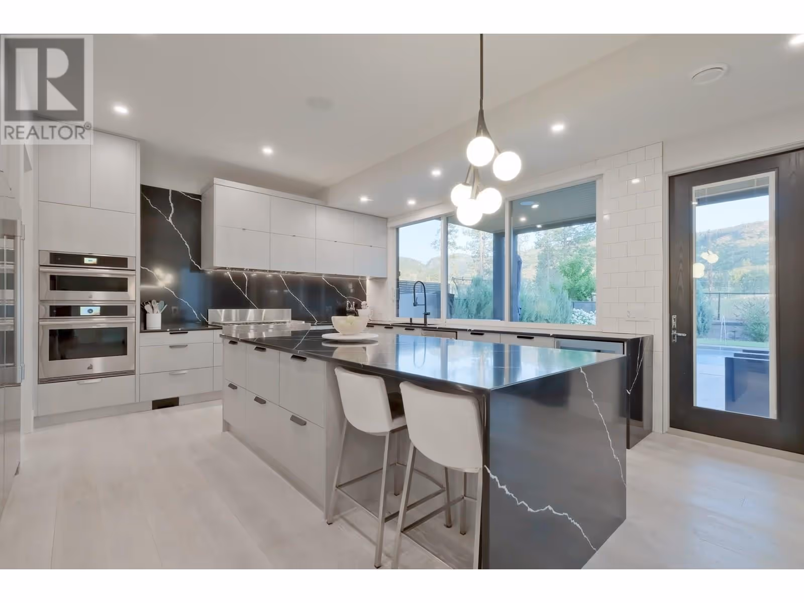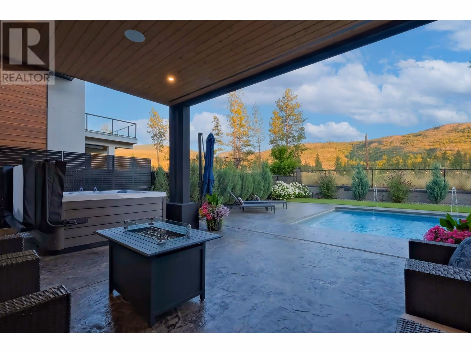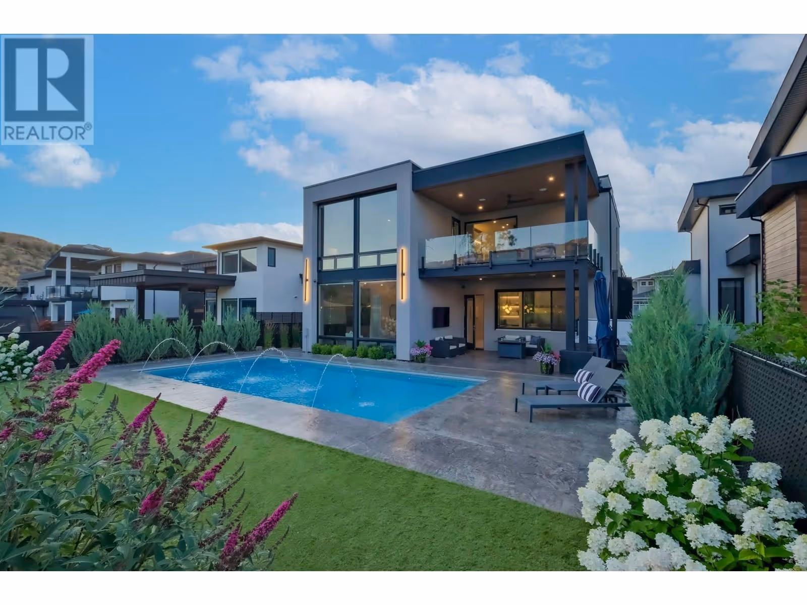 Welcome to your dream home in the desirable Upper Mission offering luxury finishes and every feature imaginable. This elegant property boasts 6 bedrooms, a 16x32 saltwater pool with an auto cover, hot tub, and a chef's kitchen with a pass-through window to the covered patio/BBQ. The upper level features 4 bedrooms (or 3+ family room), including the spacious primary retreat with a private patio, built-in makeup vanity and laundry hamper, and a stunning ensuite complete with a steam shower and freestanding tub. Additionally, there are 3 more bedrooms upstairs, one with its own ensuite, and a full laundry room with ample storage. This exceptional property harmoniously combines luxury and functionality, with eco-friendly features such as solar panels and EV charging, zoned HVAC, a water softener, hide-a-hose vacuum, and hot water on demand. Roughed-in for an elevator. Whether you're relaxing by the pool, entertaining guests on the patio, or enjoying the tranquility of the mountain views through the floor-to-ceiling windows, this property is a true oasis! The spacious heated garage with epoxy floors and an oversized door adds convenience, while the fully fenced low-maintenance yard with artificial turf and landscape lighting enhances the outdoor Okanagan experience. Located within the catchment of some of the city's top schools, close to Mission Village, and steps from hiking/biking trails, this custom home offers every luxury feature and natural surroundings. Like new-NO GST! (id:58842)