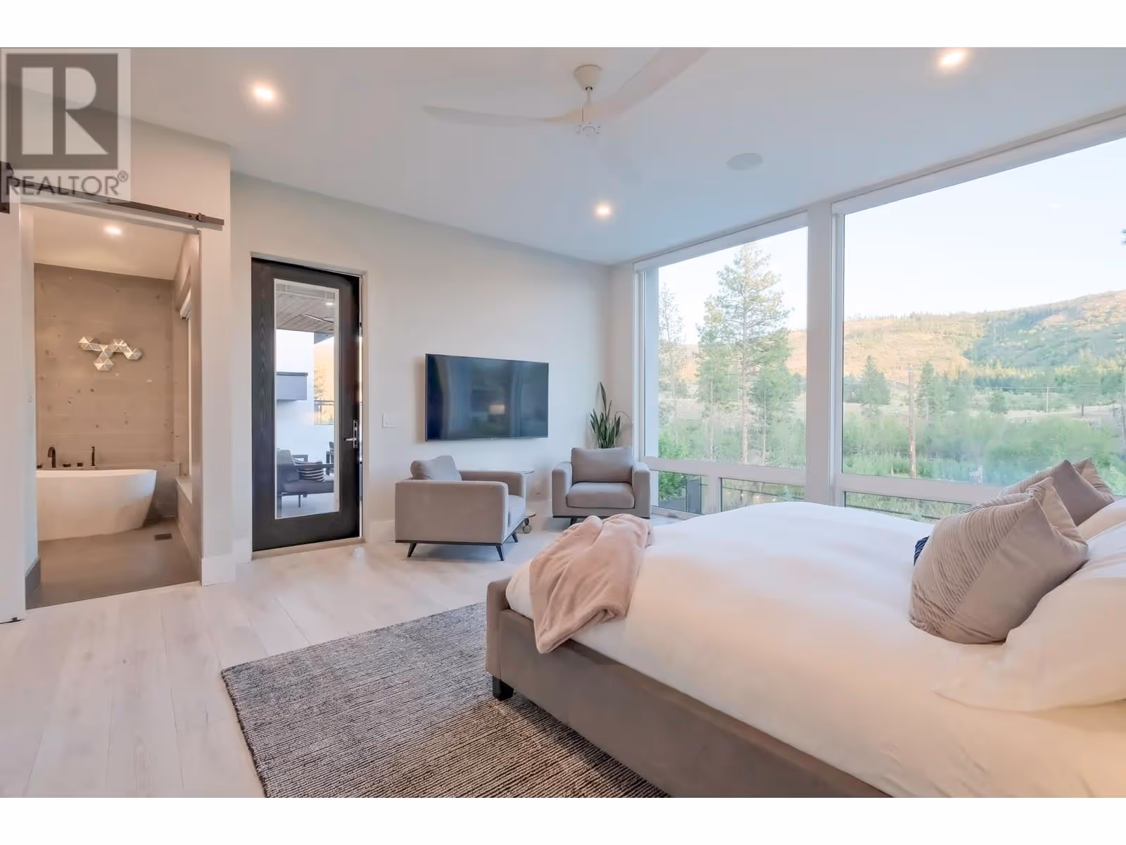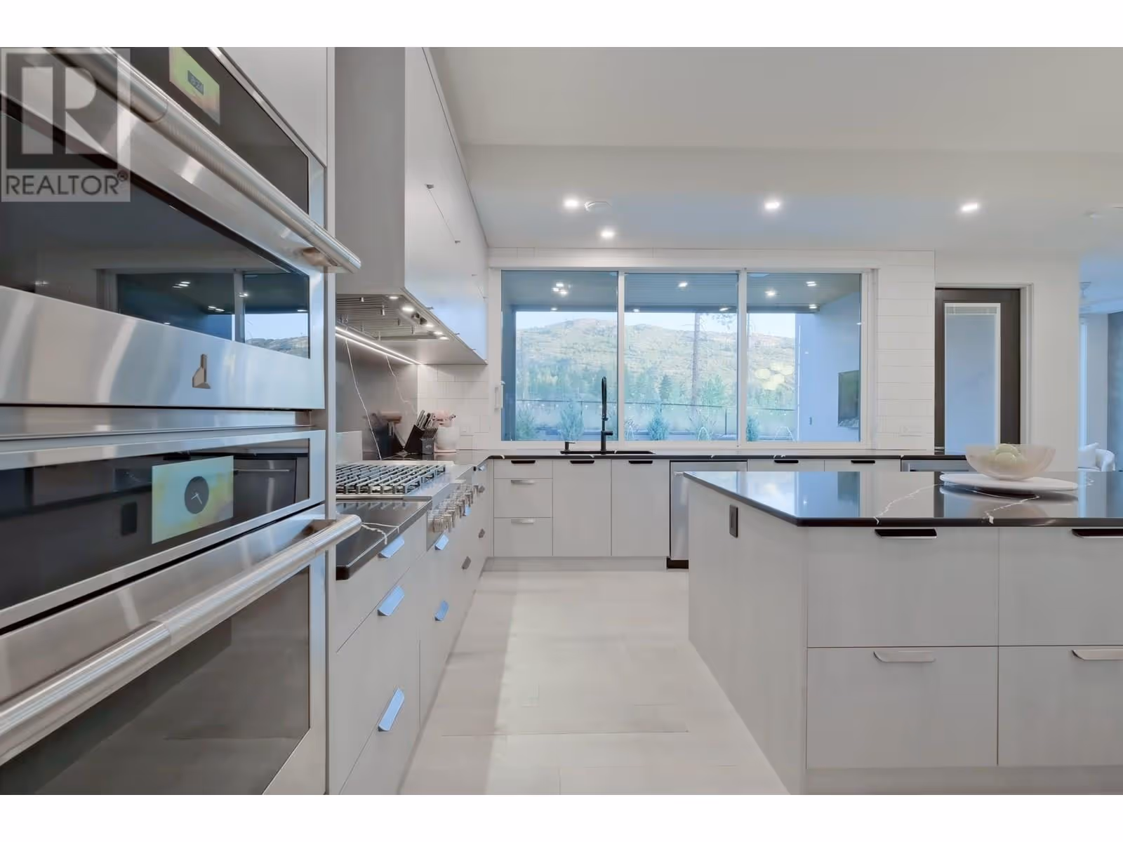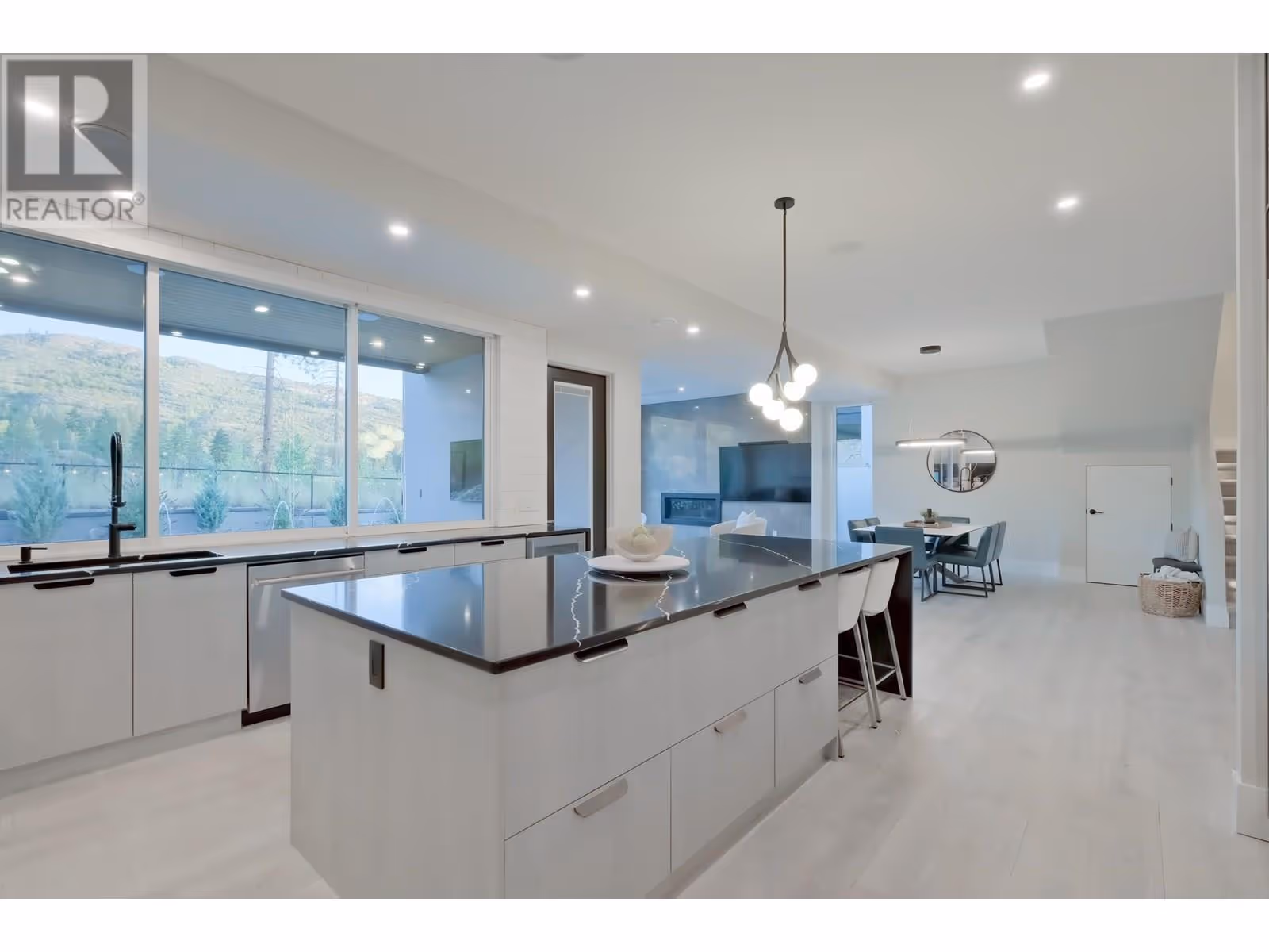Welcome to your dream home in the desirable Upper Mission offering luxury finishes and every feature imaginable. This elegant property boasts 6 bedrooms, a 16x32 saltwater pool with an auto cover, hot tub, and a chef's kitchen with a pass-through window to the covered patio/BBQ. The upper level features 4 bedrooms (or 3+ family room), including the spacious primary retreat with a private patio, built-in makeup vanity and laundry hamper, and a stunning ensuite complete with a steam shower and freestanding tub. Additionally, there are 3 more bedrooms upstairs, one with its own ensuite, and a full laundry room with ample storage. This exceptional property harmoniously combines luxury and functionality, with eco-friendly features such as solar panels and EV charging, zoned HVAC, a water softener, hide-a-hose vacuum, and hot water on demand. Roughed-in for an elevator. Whether you're relaxing by the pool, entertaining guests on the patio, or enjoying the tranquility of the mountain views through the floor-to-ceiling windows, this property is a true oasis! The spacious heated garage with epoxy floors and an oversized door adds convenience, while the fully fenced low-maintenance yard with artificial turf and landscape lighting enhances the outdoor Okanagan experience. Located within the catchment of some of the city's top schools, close to Mission Village, and steps from hiking/biking trails, this custom home offers every luxury feature and natural surroundings. Like new-NO GST! (id:58842)