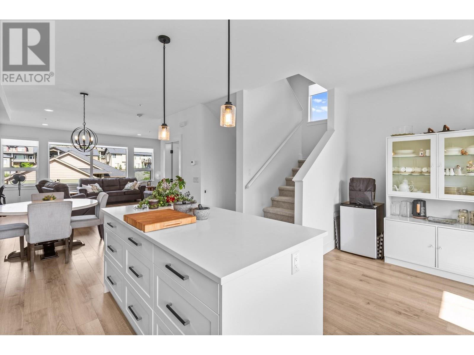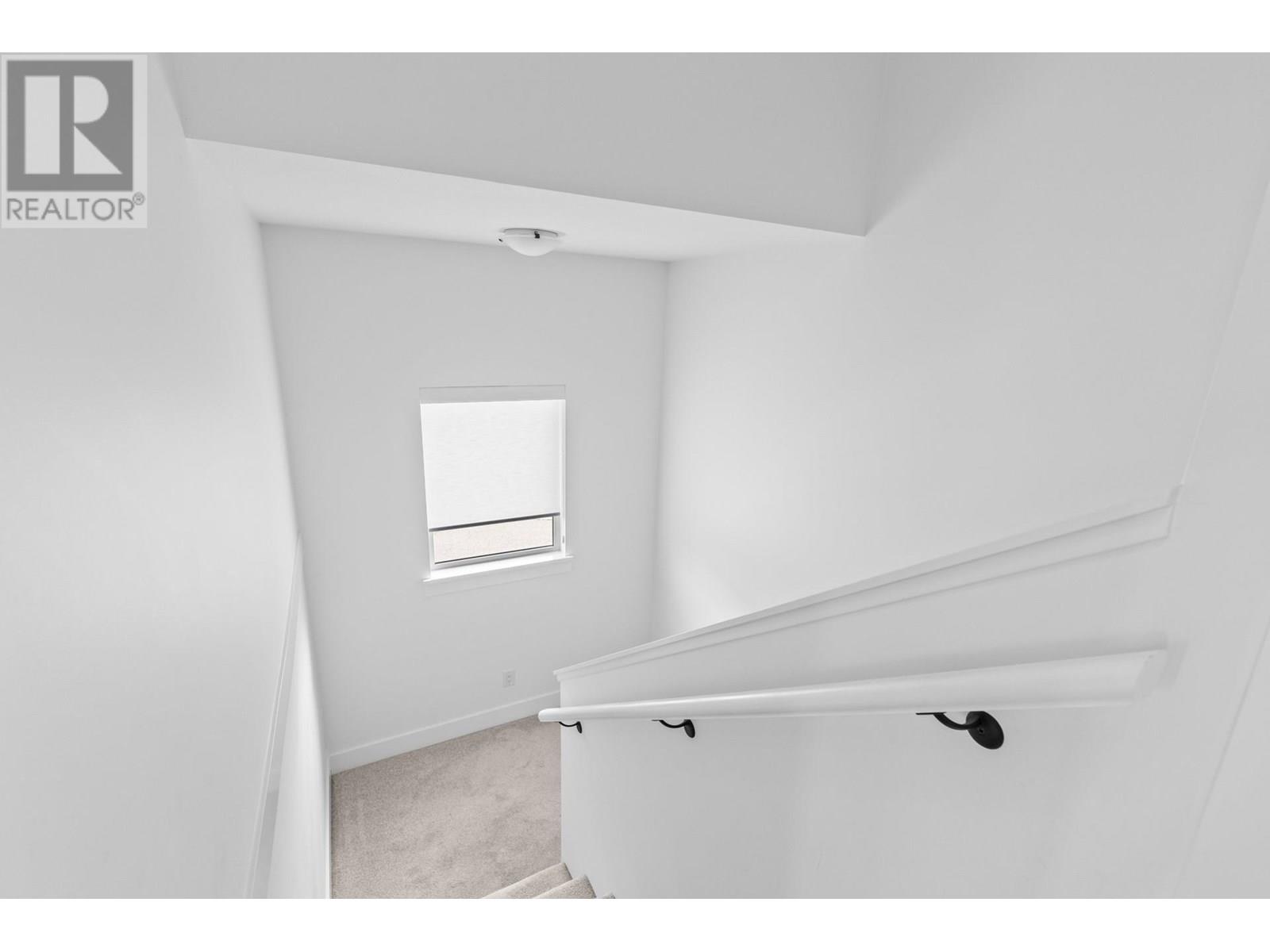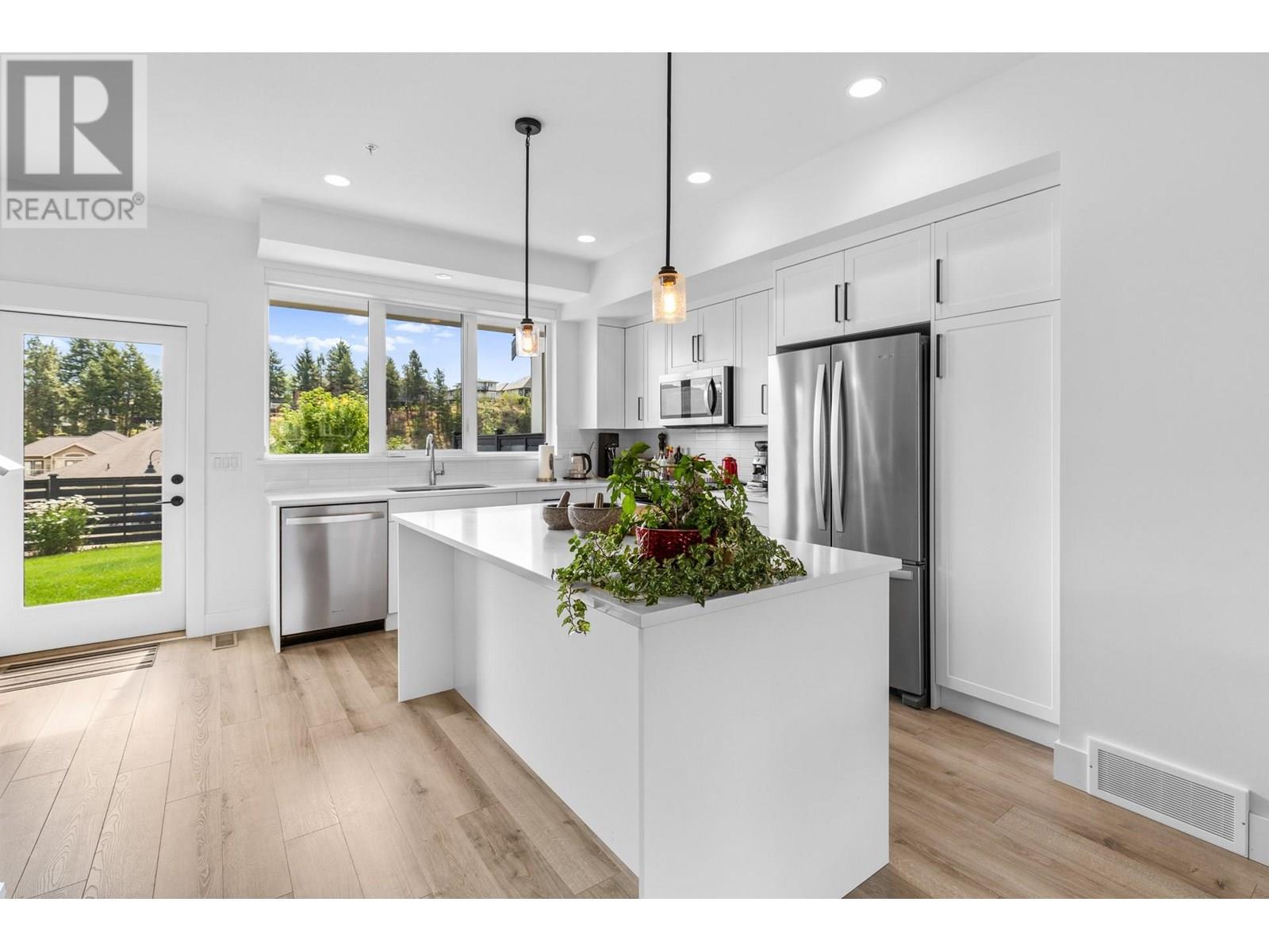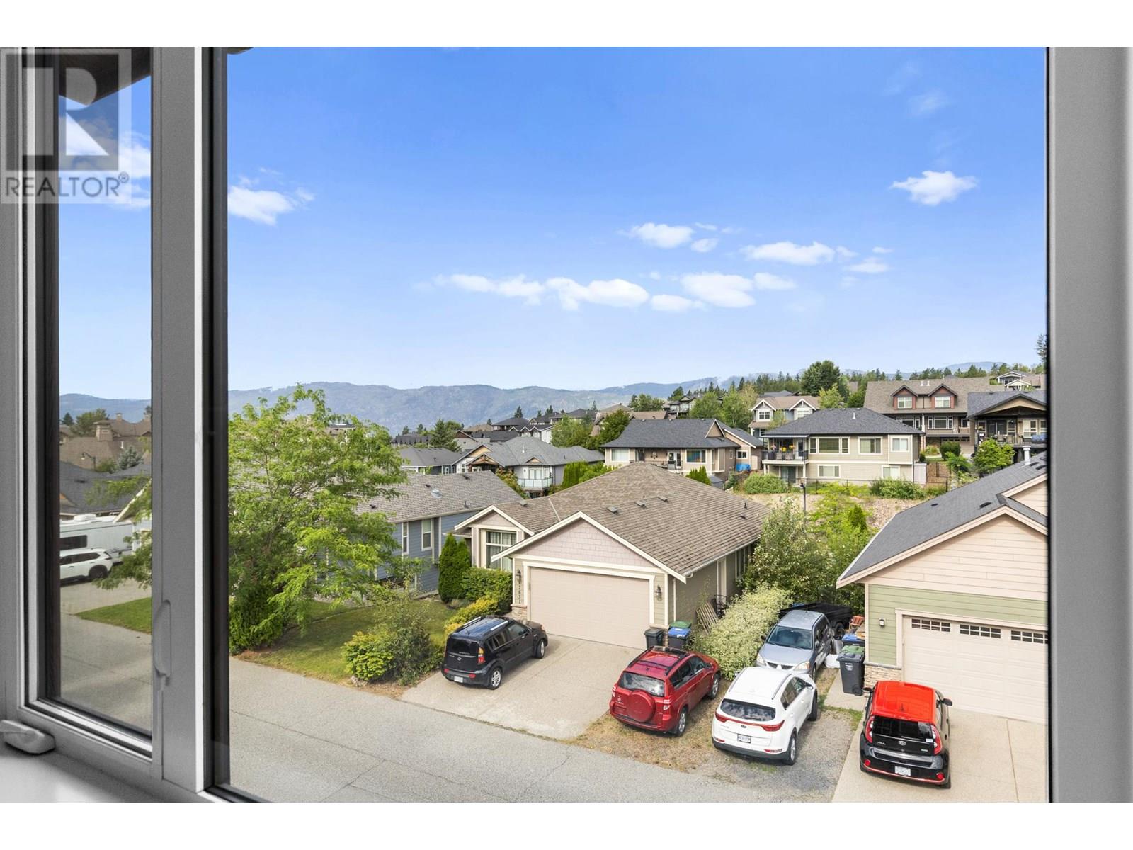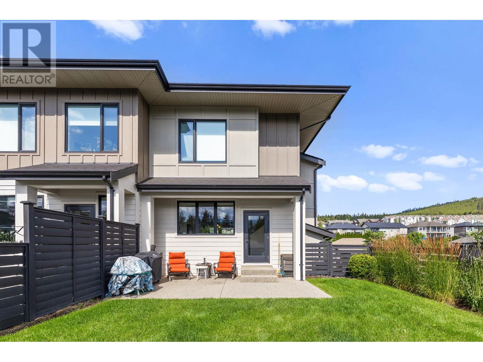 Bright & Modern End Unit in Rockridge at The Lakes. A vibrant and family/pet friendly townhome community in the heart of Lake Country. This stylish 3-bedroom + den/flex, 3-bathroom end unit offers the perfect blend of space, functionality, and comfort. Flooded with natural light, the main floor showcases a modern open-concept design with large windows throughout. The kitchen is a true highlight, featuring quartz countertops, a gas range, sit-up island, and cozy eating nook. The layout flows seamlessly into a spacious dining area and bright living room—perfect for everyday living and entertaining. Step out from the kitchen to your private, elevated backyard oasis with panoramic Eastern Mountain views. With no units directly behind, you’ll enjoy added privacy along with a gas hookup, power, and water connection. Upstairs you’ll find three well-appointed bedrooms, including a generous primary suite with a 4-piece ensuite. The laundry is conveniently located on this level as well. The lower level adds valuable flexibility with a den/flex room – perfect for a home office, gym, or guest space. Additional features include a double car garage, a full-length 26 ft driveway that easily accommodates most vehicles, and close proximity to visitor parking—making hosting friends and family a breeze. This home truly has it all—modern comfort, unbeatable functionality, and a fantastic location. (id:58842)