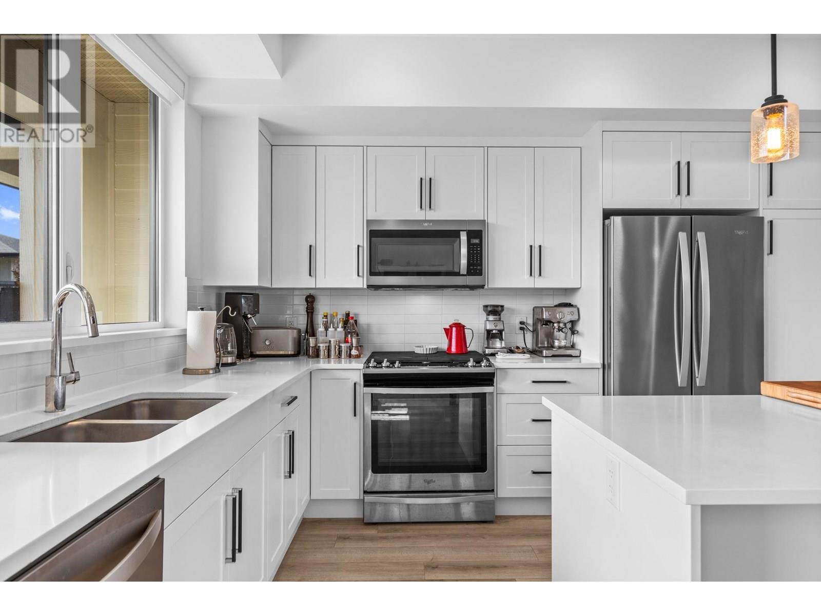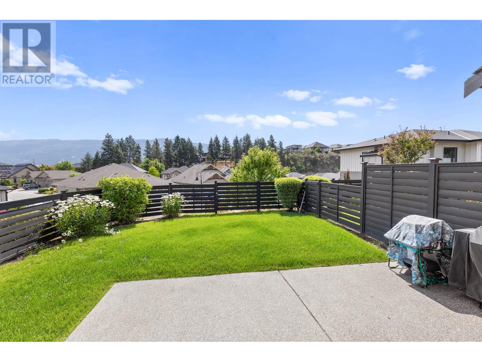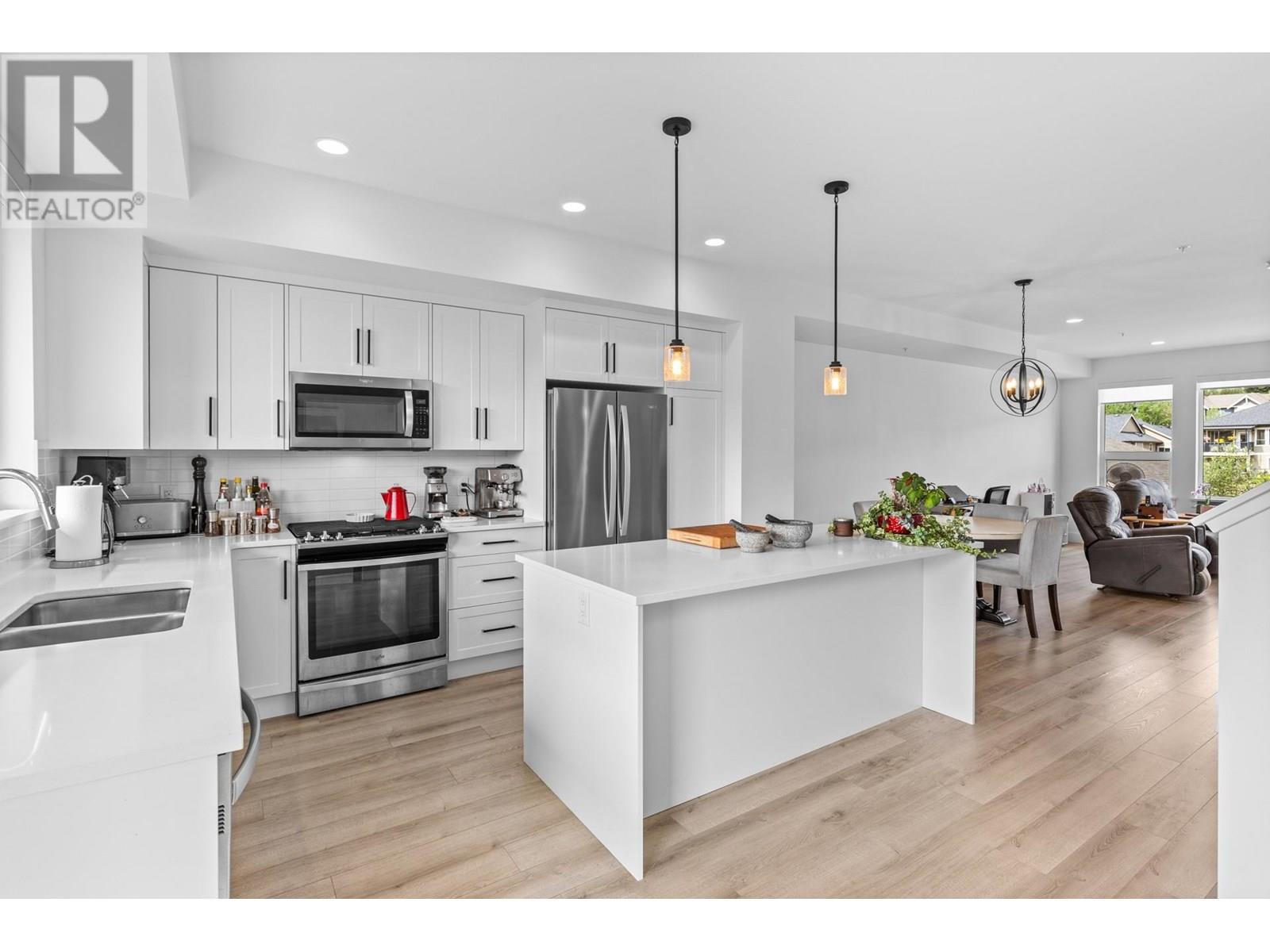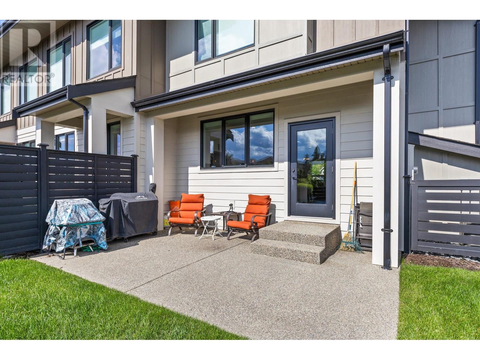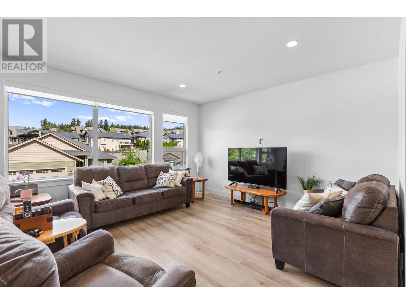 Bright & Modern End Unit in Rockridge at The Lakes. A vibrant and family/pet friendly townhome community in the heart of Lake Country. This stylish 3-bedroom + den/flex, 3-bathroom end unit offers the perfect blend of space, functionality, and comfort. Flooded with natural light, the main floor showcases a modern open-concept design with large windows throughout. The kitchen is a true highlight, featuring quartz countertops, a gas range, sit-up island, and cozy eating nook. The layout flows seamlessly into a spacious dining area and bright living room—perfect for everyday living and entertaining. Step out from the kitchen to your private, elevated backyard oasis with panoramic Eastern Mountain views. With no units directly behind, you’ll enjoy added privacy along with a gas hookup, power, and water connection. Upstairs you’ll find three well-appointed bedrooms, including a generous primary suite with a 4-piece ensuite. The laundry is conveniently located on this level as well. The lower level adds valuable flexibility with a den/flex room – perfect for a home office, gym, or guest space. Additional features include a double car garage, a full-length 26 ft driveway that easily accommodates most vehicles, and close proximity to visitor parking—making hosting friends and family a breeze. This home truly has it all—modern comfort, unbeatable functionality, and a fantastic location. (id:58842)