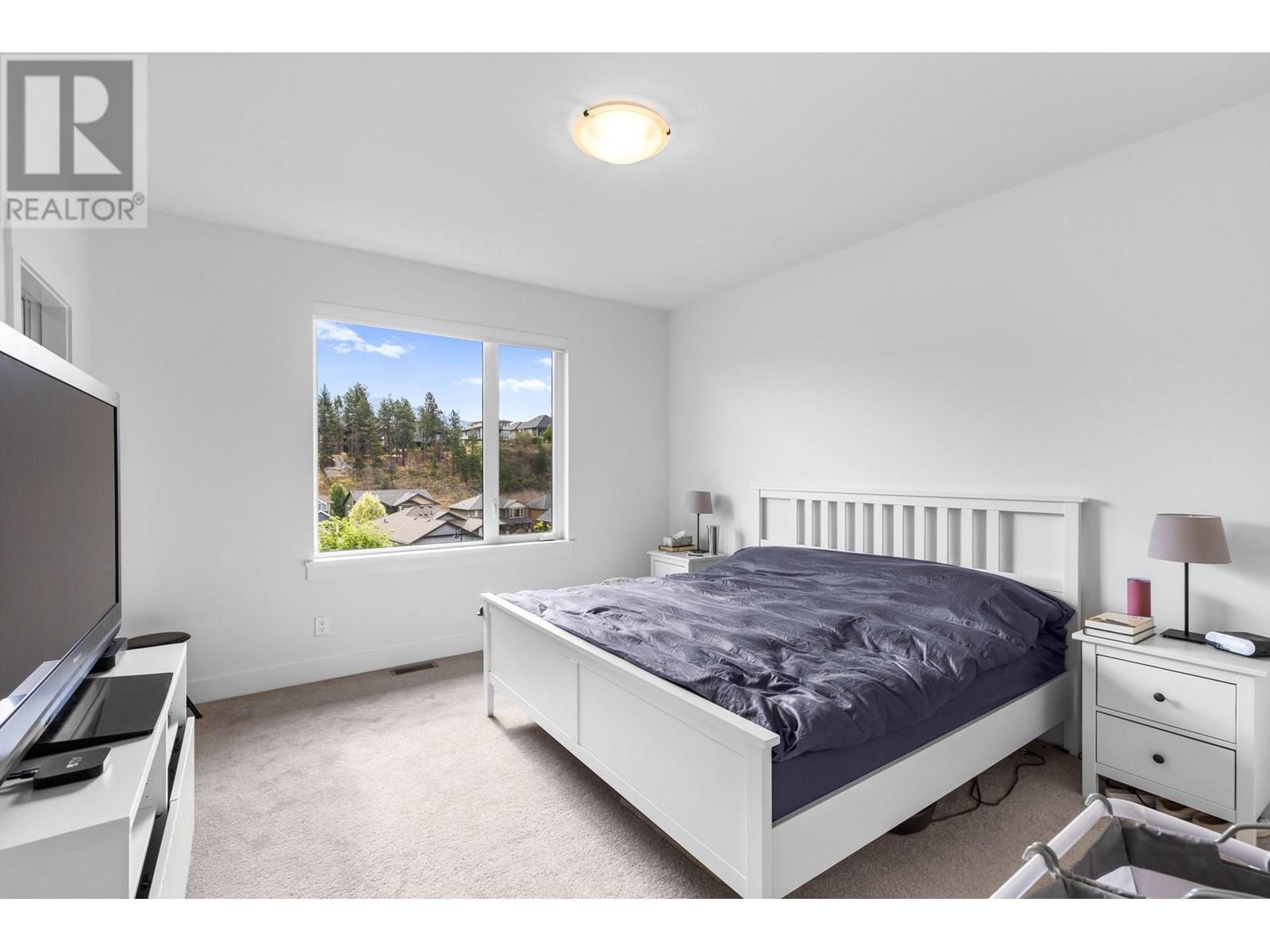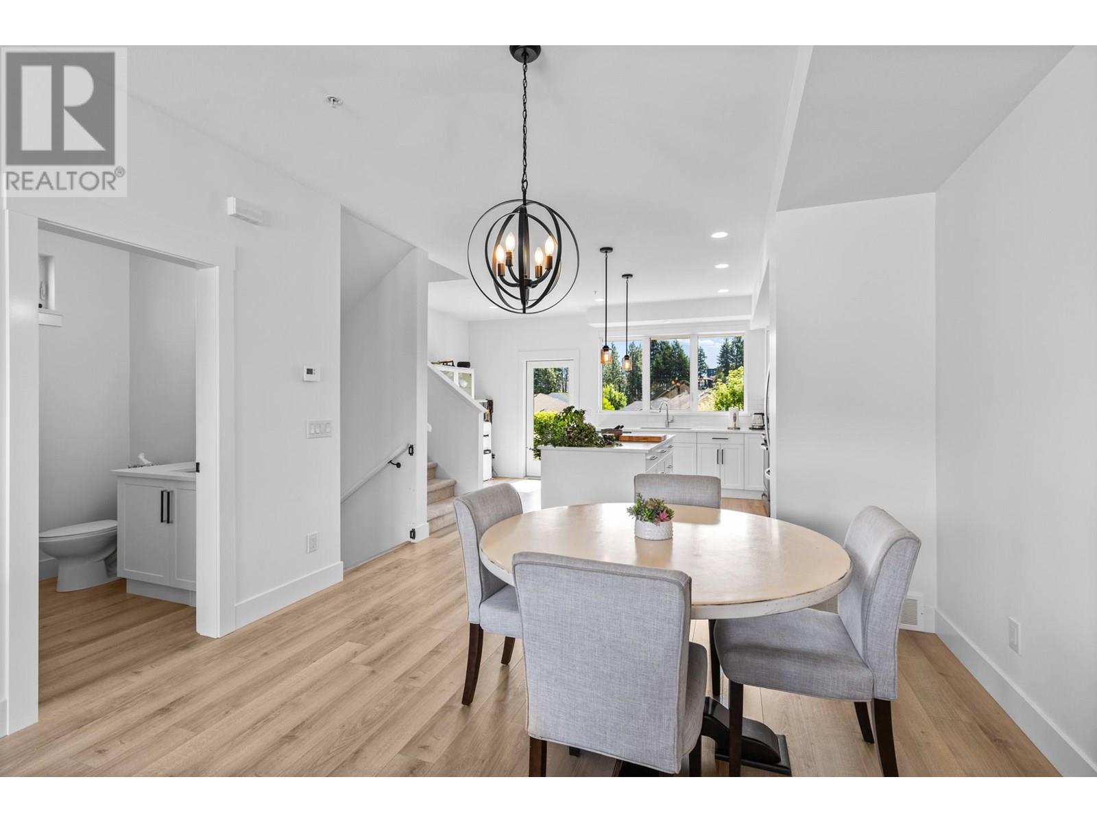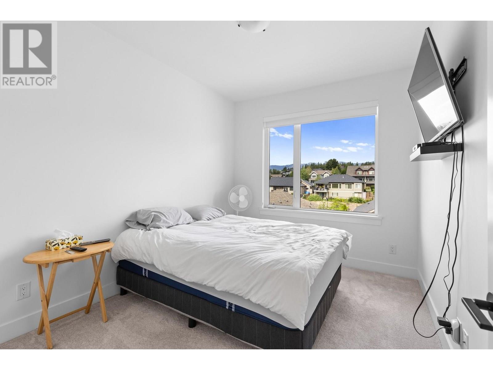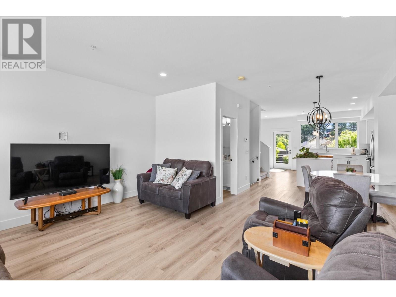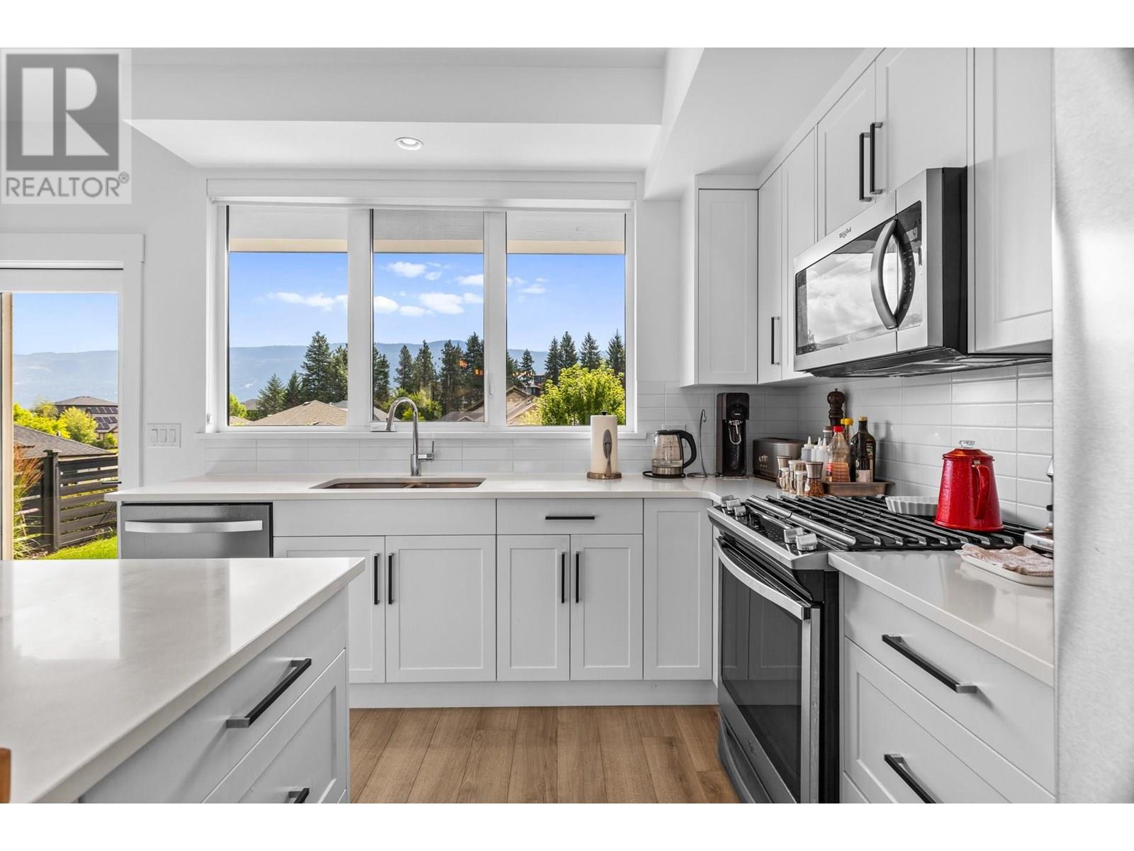 Bright & Modern End Unit in Rockridge at The Lakes. A vibrant and family/pet friendly townhome community in the heart of Lake Country. This stylish 3-bedroom + den/flex, 3-bathroom end unit offers the perfect blend of space, functionality, and comfort. Flooded with natural light, the main floor showcases a modern open-concept design with large windows throughout. The kitchen is a true highlight, featuring quartz countertops, a gas range, sit-up island, and cozy eating nook. The layout flows seamlessly into a spacious dining area and bright living room—perfect for everyday living and entertaining. Step out from the kitchen to your private, elevated backyard oasis with panoramic Eastern Mountain views. With no units directly behind, you’ll enjoy added privacy along with a gas hookup, power, and water connection. Upstairs you’ll find three well-appointed bedrooms, including a generous primary suite with a 4-piece ensuite. The laundry is conveniently located on this level as well. The lower level adds valuable flexibility with a den/flex room – perfect for a home office, gym, or guest space. Additional features include a double car garage, a full-length 26 ft driveway that easily accommodates most vehicles, and close proximity to visitor parking—making hosting friends and family a breeze. This home truly has it all—modern comfort, unbeatable functionality, and a fantastic location. (id:58842)
