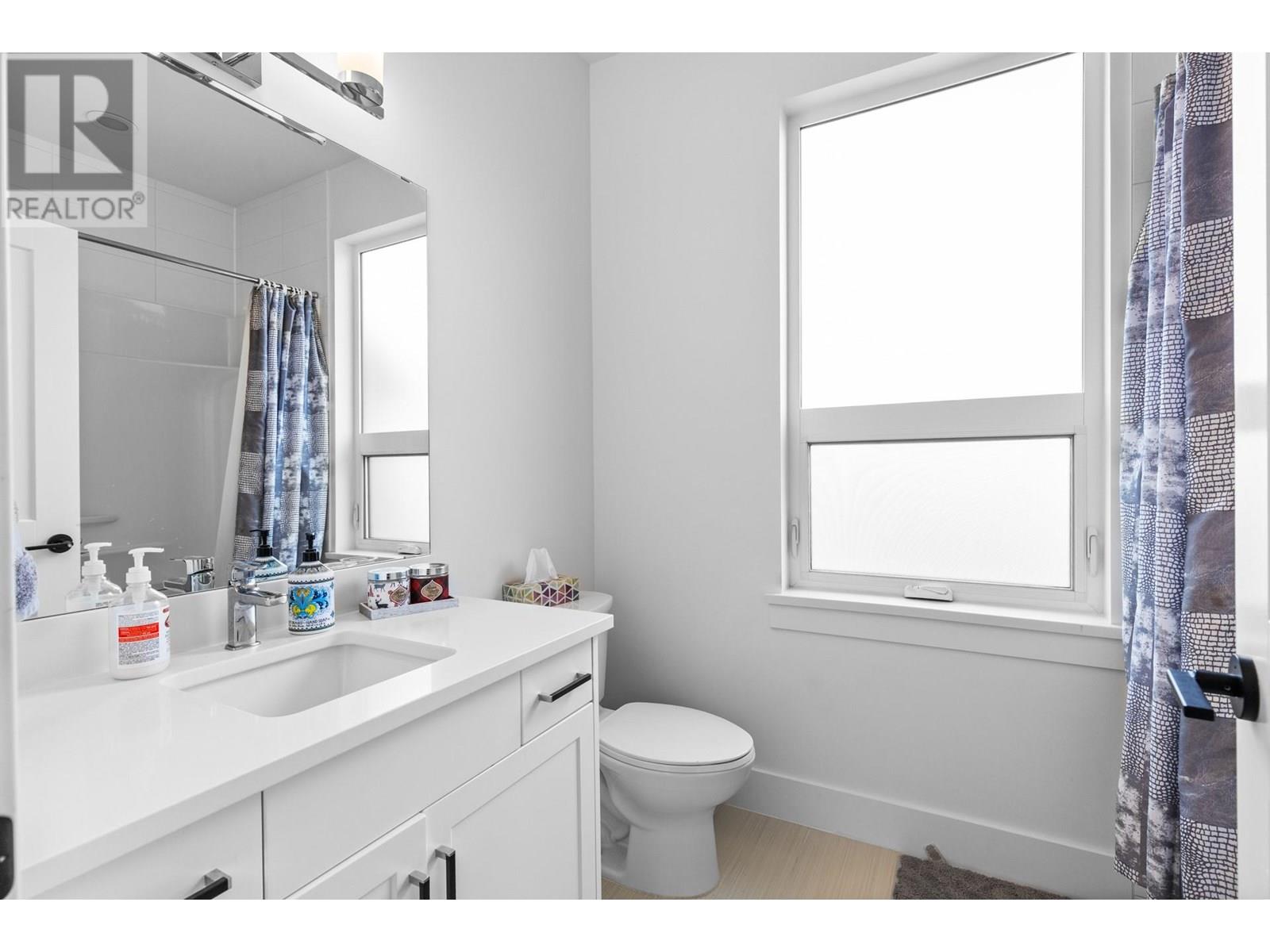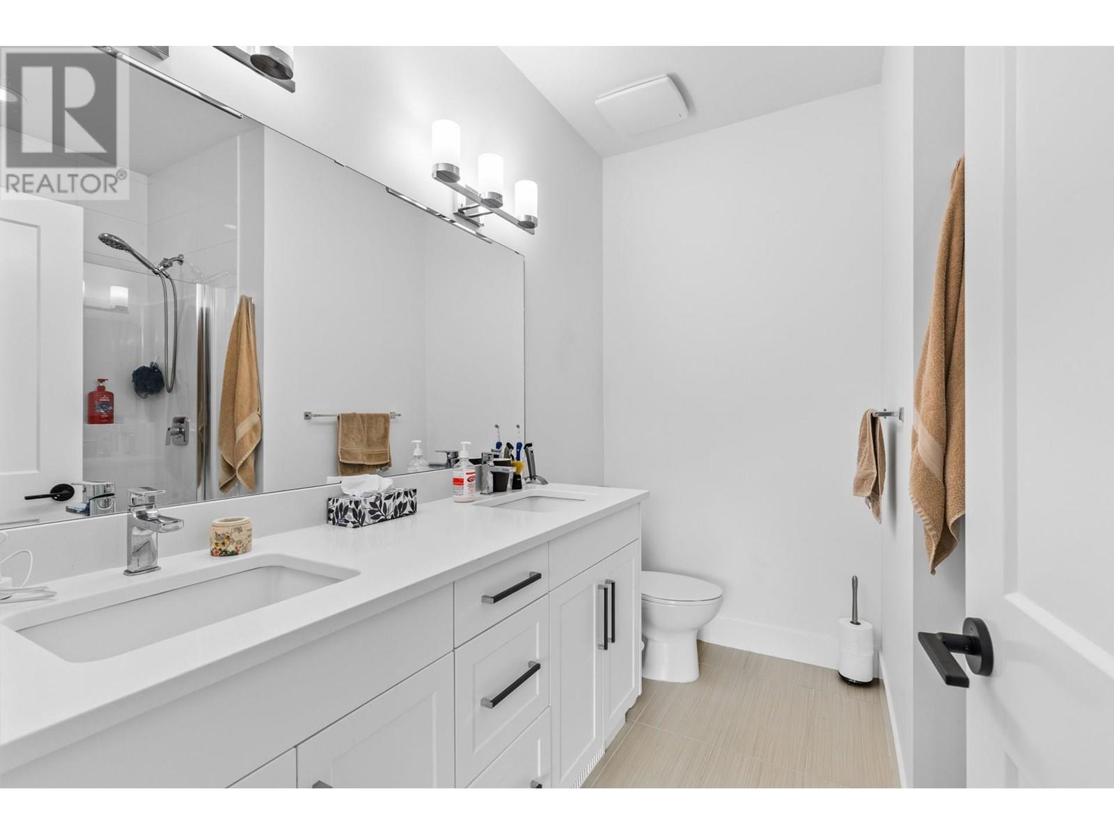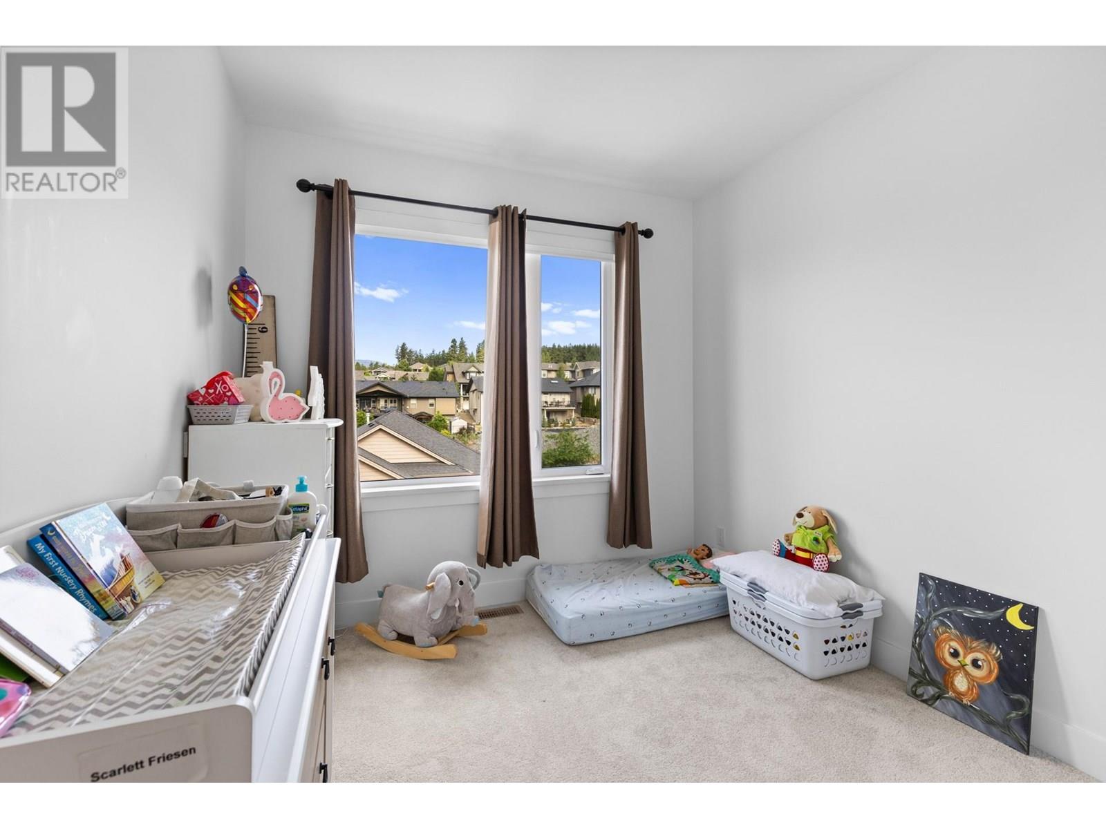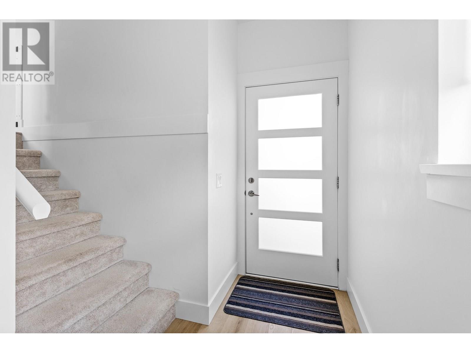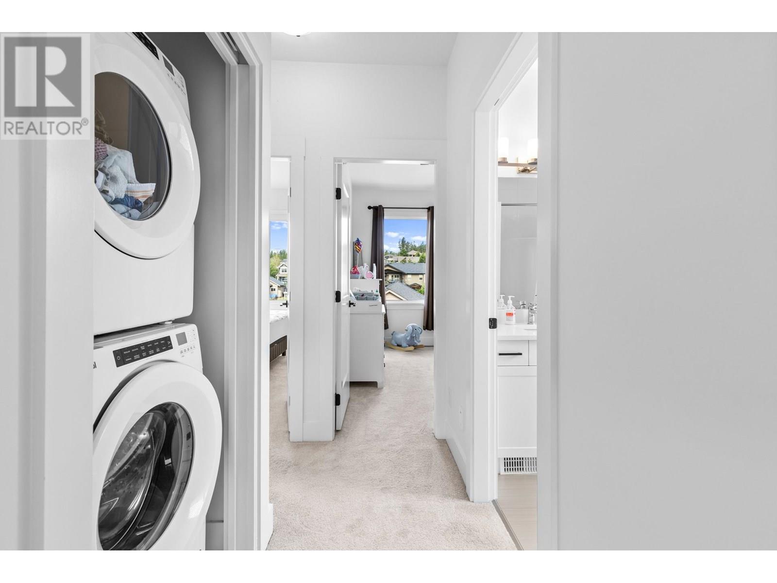 Bright & Modern End Unit in Rockridge at The Lakes. A vibrant and family/pet friendly townhome community in the heart of Lake Country. This stylish 3-bedroom + den/flex, 3-bathroom end unit offers the perfect blend of space, functionality, and comfort. Flooded with natural light, the main floor showcases a modern open-concept design with large windows throughout. The kitchen is a true highlight, featuring quartz countertops, a gas range, sit-up island, and cozy eating nook. The layout flows seamlessly into a spacious dining area and bright living room—perfect for everyday living and entertaining. Step out from the kitchen to your private, elevated backyard oasis with panoramic Eastern Mountain views. With no units directly behind, you’ll enjoy added privacy along with a gas hookup, power, and water connection. Upstairs you’ll find three well-appointed bedrooms, including a generous primary suite with a 4-piece ensuite. The laundry is conveniently located on this level as well. The lower level adds valuable flexibility with a den/flex room – perfect for a home office, gym, or guest space. Additional features include a double car garage, a full-length 26 ft driveway that easily accommodates most vehicles, and close proximity to visitor parking—making hosting friends and family a breeze. This home truly has it all—modern comfort, unbeatable functionality, and a fantastic location. (id:58842)