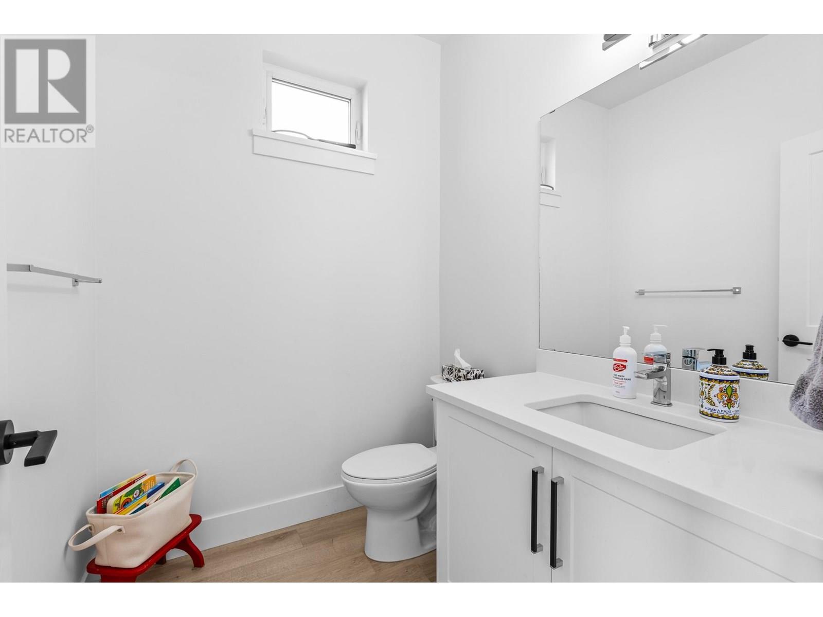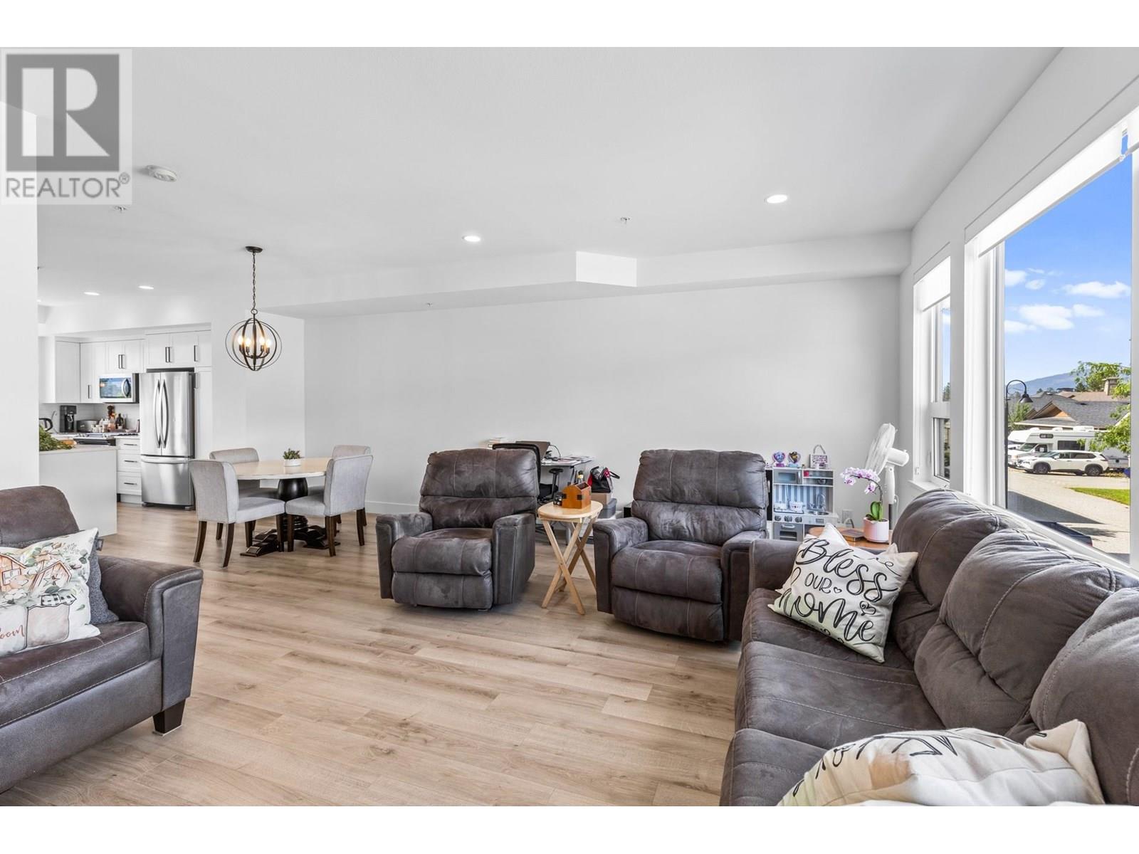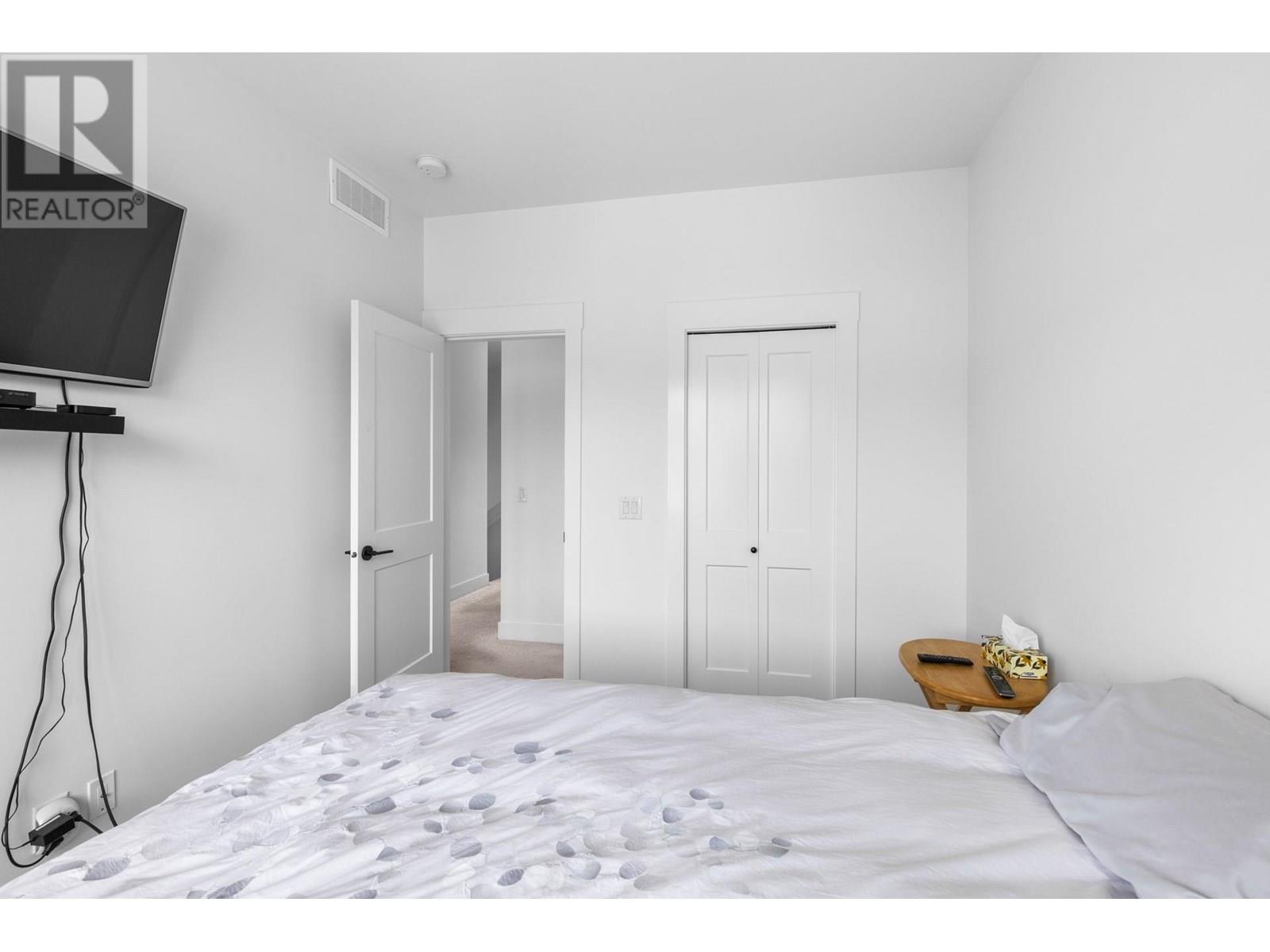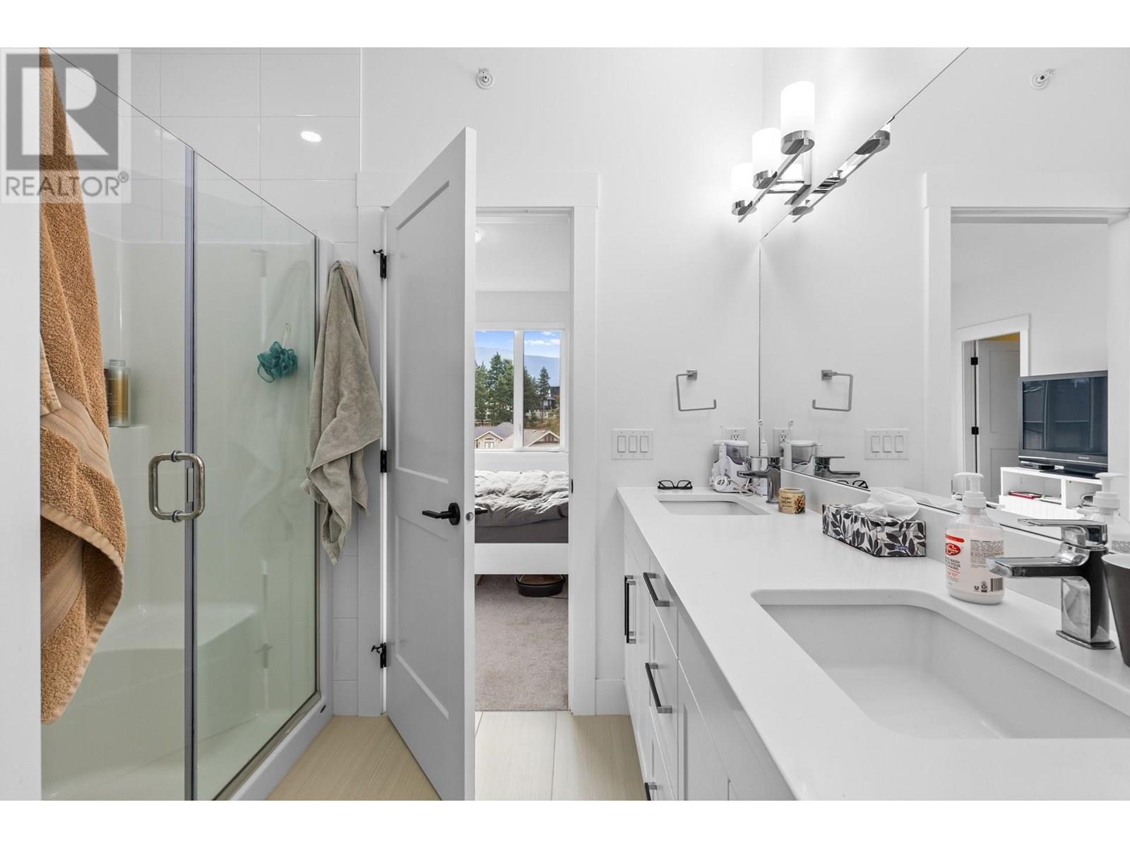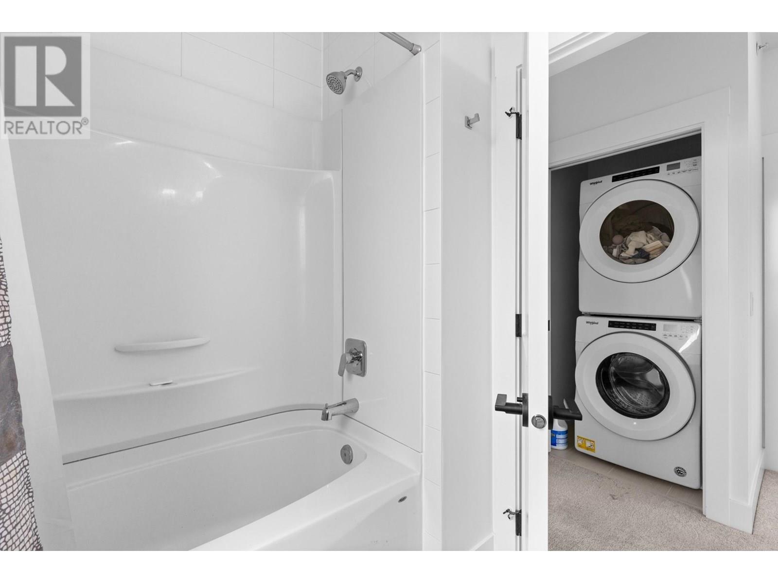 Bright & Modern End Unit in Rockridge at The Lakes. A vibrant and family/pet friendly townhome community in the heart of Lake Country. This stylish 3-bedroom + den/flex, 3-bathroom end unit offers the perfect blend of space, functionality, and comfort. Flooded with natural light, the main floor showcases a modern open-concept design with large windows throughout. The kitchen is a true highlight, featuring quartz countertops, a gas range, sit-up island, and cozy eating nook. The layout flows seamlessly into a spacious dining area and bright living room—perfect for everyday living and entertaining. Step out from the kitchen to your private, elevated backyard oasis with panoramic Eastern Mountain views. With no units directly behind, you’ll enjoy added privacy along with a gas hookup, power, and water connection. Upstairs you’ll find three well-appointed bedrooms, including a generous primary suite with a 4-piece ensuite. The laundry is conveniently located on this level as well. The lower level adds valuable flexibility with a den/flex room – perfect for a home office, gym, or guest space. Additional features include a double car garage, a full-length 26 ft driveway that easily accommodates most vehicles, and close proximity to visitor parking—making hosting friends and family a breeze. This home truly has it all—modern comfort, unbeatable functionality, and a fantastic location. (id:58842)