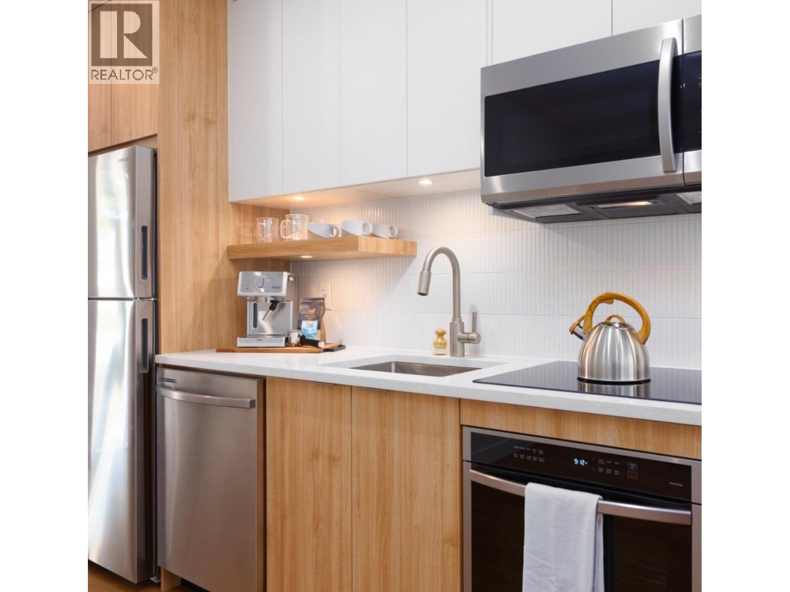 Studio home at Revo Kelowna, the latest Millennial Developments Smart CommunityTM. Centrally located in the Capri Landmark district with a 98 Bike ScoreTM, pet and rental-friendly, ideal for first-time buyers and investors. Peekaboo lake view with west-facing soft natural light, thoughtful floorplan with roomy full bathroom, ample storage, and private balcony. Quality stainless steel appliance package including dishwasher and washer/dryer. Incredible building amenities include rooftop recreational terrace, gym, spa- inspired wellness facilities, indoor and outdoor social spaces, coworking area, expansive communal green space, and organic gardens. Fully tech-enhanced living with digital keys, concierge app, smart parcel delivery, touchless facial recognition entry, and more. Presentation Centre featuring a full-sized studio show suite open for tours by appointment. Delivery mid 2026. Revo Kelowna – Revolutionizing Living Spaces. (id:58842)