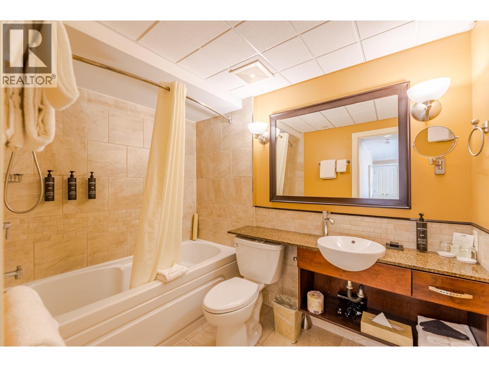 Beautiful 1 bedroom condominium at Summerland Waterfront Resort with vaulted ceilings and lovely views of Okanagan Lake. This fully furnished unit includes a stocked kitchen, linens, a private balcony, and in-suite laundry. Enjoy the tranquility and rejuvenation of resort stays with on-site spa, year round hot tub, sauna, seasonal pool, fitness centre and on site bistro. Direct access to the water and boat dock. Boat and SUP rentals available. Popular Shaughnessy's Cove Restaurant is just outside the front door, and downtown Summerland, golf courses, Apex Alpine ski resort are a short drive away! Owners enjoy up to 60 days in peak season June - September, + 120 days for the remainder of year. This unit must be included in the rental pool, providing income while not in your use. (id:58842)