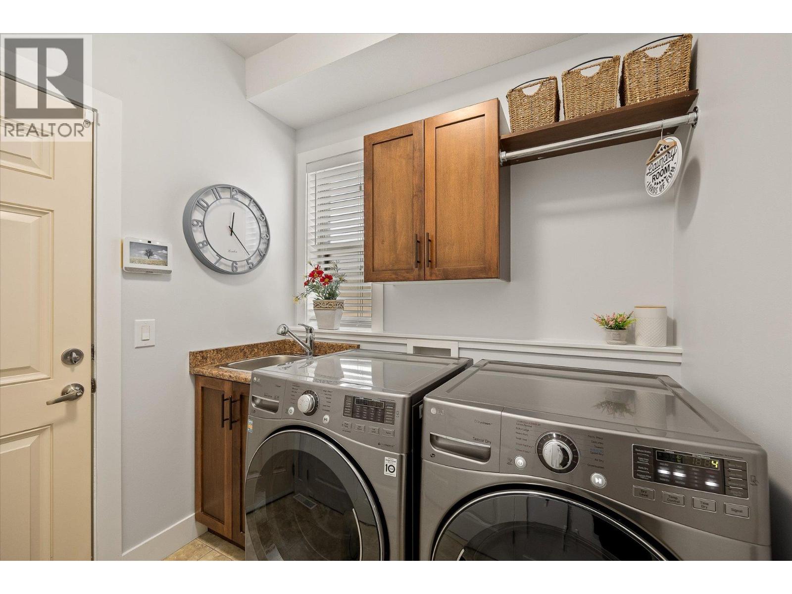 Tucked into the coveted Lakes community, this home earns its reputation in everything that genuinely makes daily life better. Four bedrooms, two up and two down. An open-concept main floor that breathes. A layout thoughtful enough to grow with you, whether that means space for family, a spot for guests, or the flexibility to add a suite. The primary bedroom is on the main floor with a full 5-piece ensuite and a walk-in closet that finally gives you room to get organized and stay that way. The kitchen was designed for real life: richly toned cabinetry, granite countertops, a bar-height island perfect for morning coffee or evening conversation, a large walk-in pantry, and stainless steel appliancesall updated within the last 5–7 years. Main-floor laundry with a quality LG set means no stairs when your arms are full. Downstairs, a cozy family room and bonus room give everyone room to spread out. For folks serious about storage, the 248 sq. ft. storage and mechanical room is a standout feature. Whether it's gear, seasonal items, or a workshop setup, there is room for it all! Outside, a large upper deck and lower patio invite you to slow down and settle into the Okanagan pace of life. The landscaping is already done (lawns, gardens, irrigation)! The gas BBQ hookup is ready for the season ahead. A double garage, gas fireplace, central vac, and security system round out a home that's been cared for and kept ready for move-in! Come and see it, some homes just make sense! (id:58842)