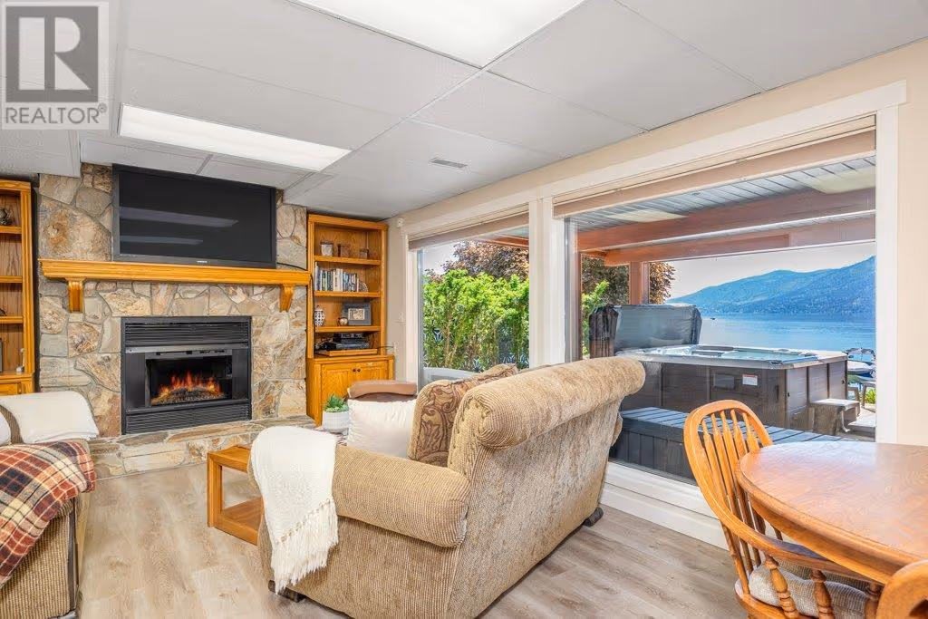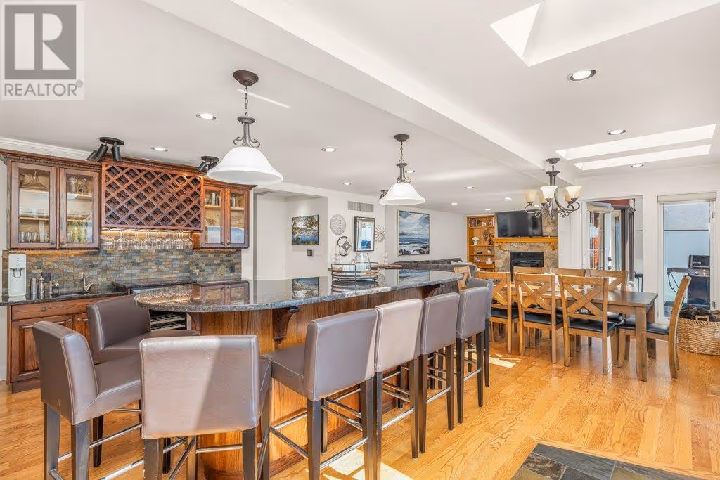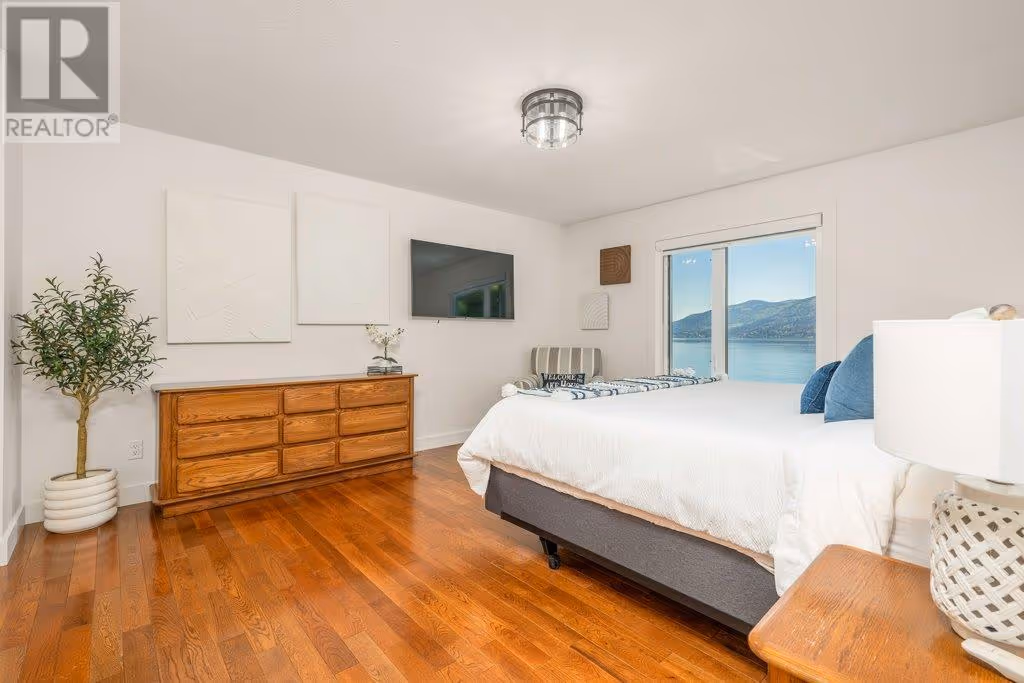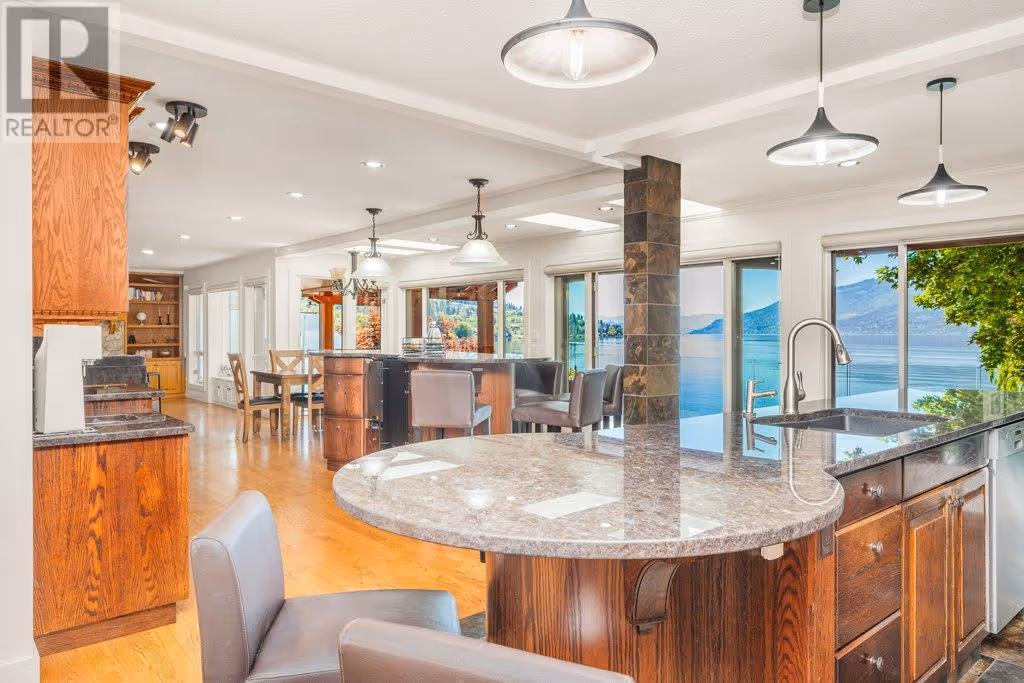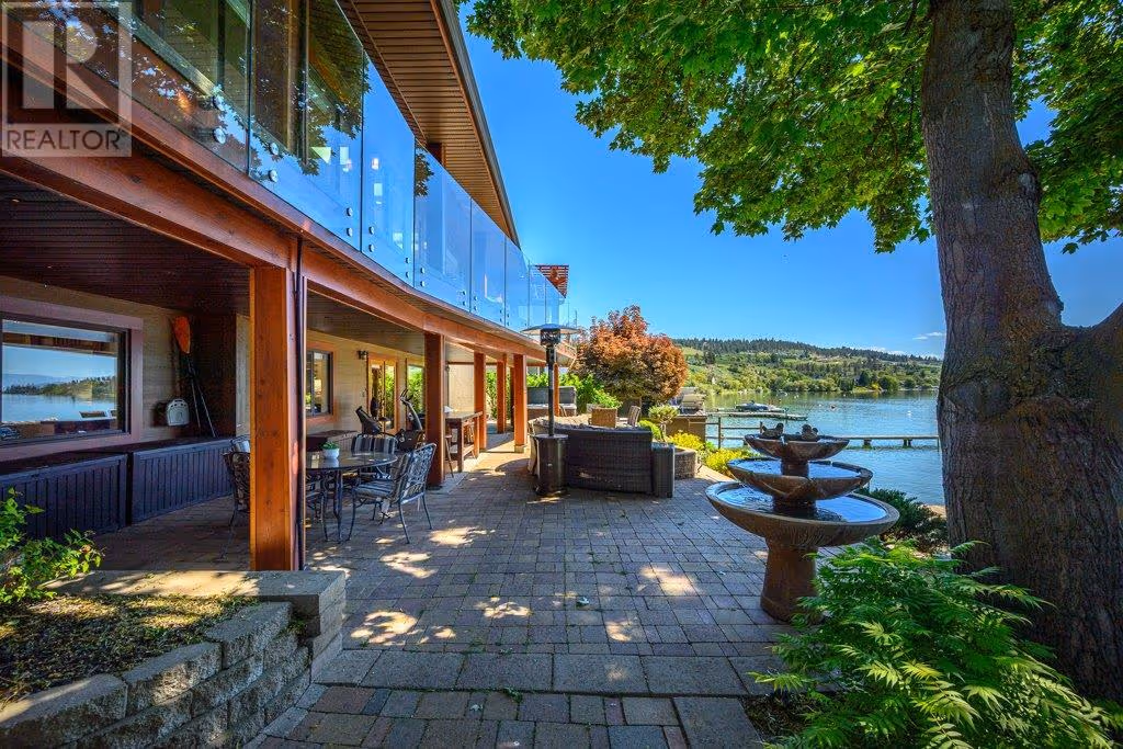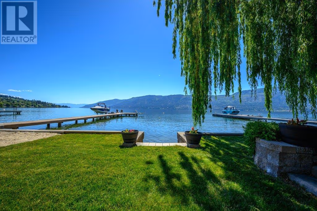 AAA location - Pixie Beach Lakefront Living! Rare opportunity in one of Lake Country’s most desirable lakefront locations! This cherished family home, lovingly maintained for 36 years with 3 thoughtful renovations, has never been on the market. This almost 3600 sq.ft. home offers 6 bedr, 4 bathr, and incredible lakefront living with your own buoy and own shared dock. The MAIN FLOOR features a breathtaking Great Room with lake views and an oversized entertainer’s island seating 12. The kitchen boasts granite counters, gas cooktop, double ovens, heated slate floors, and ample storage. Two cozy living areas, both with firepl. create exceptional flow and warmth for gatherings. Enjoy the sandy beach stretch and step into the lake as you paddleboard or swim off your property. UPSTAIRS you will find 4 bedr, the primary suite offers a large w/i closet and a 3 piece ensuite w/ slate heated floors. The 2nd bathr, also w/ heated floors, offers a soaker tub, dbl sinks and large shower. The LOWER LEVEL features 2 more bedr, a comfortable lounge with fireplace, kitchenette, and French doors opening to a private oasis: multiple seating areas, a fire pit, new hot tub, and sweeping west-facing lake views. Mins to wineries with fab. restaurants, Starbucks, Turtle Bay Crossing, hiking, golfing, biking the rail trail, shopping and schools. Located in a quiet cul-de-sac among some of the Okanagan’s most distinguished homes. A true lakeside treasure and a pleasure to show. No Sign at property. (id:58842)