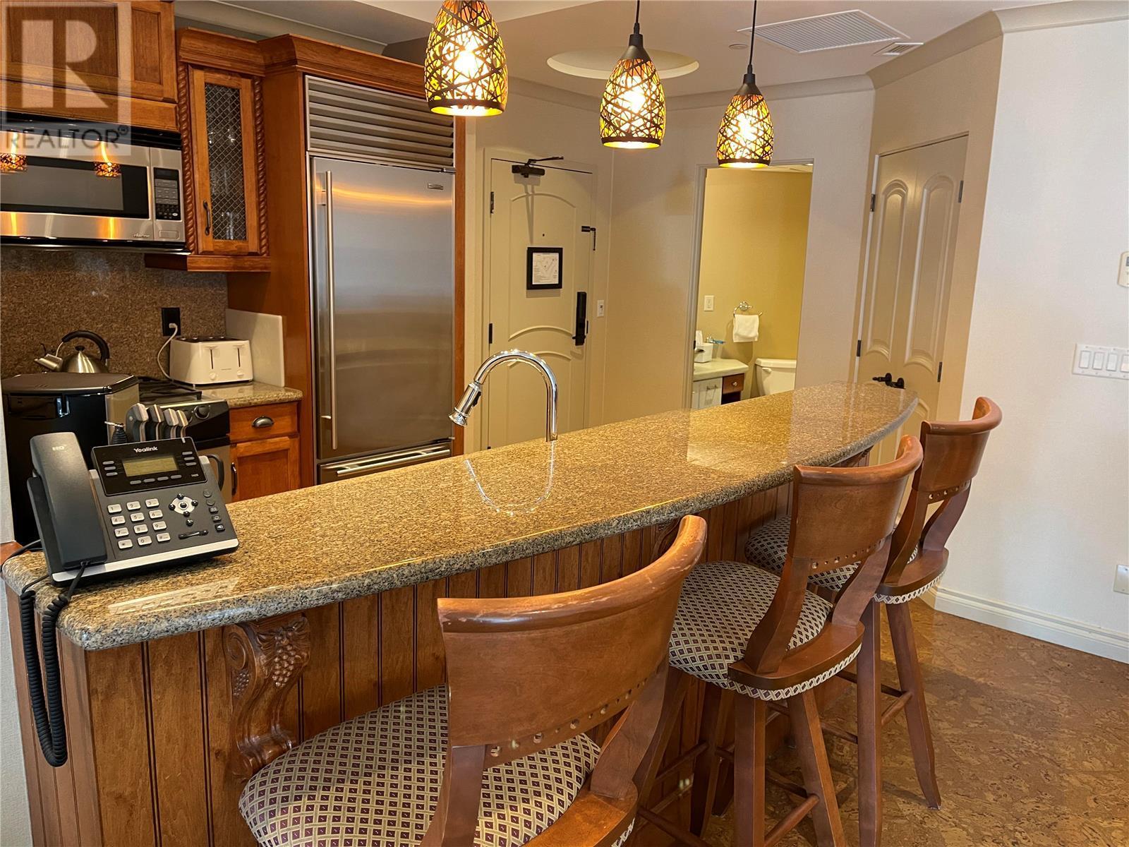 FULL OWNERSHIP at The Royal Kelowna – Live the Resort Lifestyle on Your Terms!** Here’s your opportunity to own 100% of this luxury one-bedroom, 1.5-bath suite in the heart of Kelowna’s vibrant cultural district. Whether you're looking for a full-time home, a seasonal retreat, or an investment that works for you while you're away – this property offers unmatched flexibility and style. Enjoy *turnkey convenience* – the suite comes fully furnished, right down to the dishes and linens. Just pack your suitcase (and your boat!) and you’re set. Can’t use it? No problem – Bellstar Property Management can rent it out to high-end clientele on your behalf. Perched above it all, the rooftop at The Royal Kelowna is a showstopper: heated infinity pool, three hot tubs, a sun-soaked patio, fully equipped fitness centre, BBQ area, and an indoor lounge with panoramic lake views. Plus, complimentary lagoon and lock access for your boat during your stays makes lake life that much sweeter. Step outside and you’re just moments from Prospera Place, waterfront dining at Oak + Cru, boutique shopping, and all the excitement downtown Kelowna has to offer. **Now reduced and offered at $480,000 – this is resort-style living (id:58842)