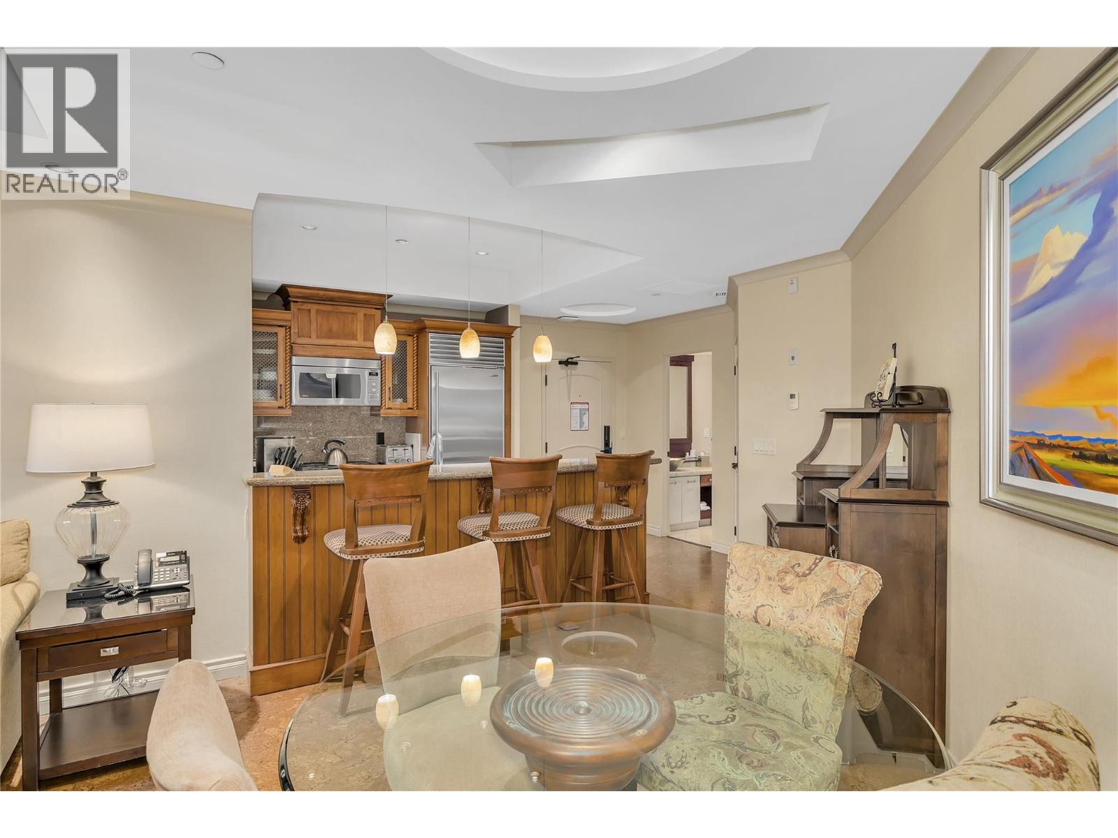 The Royal Kelowna allows you to own a piece of the Okanagan at a fraction of the price! This unique opportunity allows you to own in this picturesque area without the cost of full ownership. This 1/12th fractional interest property grants you one week every quarter of the year, letting you experience each season in beautiful Kelowna. The on-site management company, Bellstar, takes great care in renting out your unit and generating income when you aren't using it yourself. The resort boasts top of the line amenities including a rooftop patio with year-round heated infinity pool, indoor and outdoor hot tubs, a fully stocked fitness centre, BBQ facilities, and a cozy lounge area. The property is spotless and includes quality furnishings, featuring one bedroom, one bathroom, a fully equipped kitchen and a laundry room. Enjoy the beautiful lake views from your living room and deck, conveniently located steps from the canal, Rotary Marsh, and sandy Tugboat Beach with changing room facilities. The prime downtown location places you a short walk from the casino, Prospera Place, breweries, restaurants, and vibrant nightlife. Don't miss out on this incredible opportunity to live the Okanagan dream! There is an option to purchase a 1/6th share of this unit for $87,600, and have two weeks per quarter instead. Reach out for more details on how this fractional ownership operates. (id:58842)