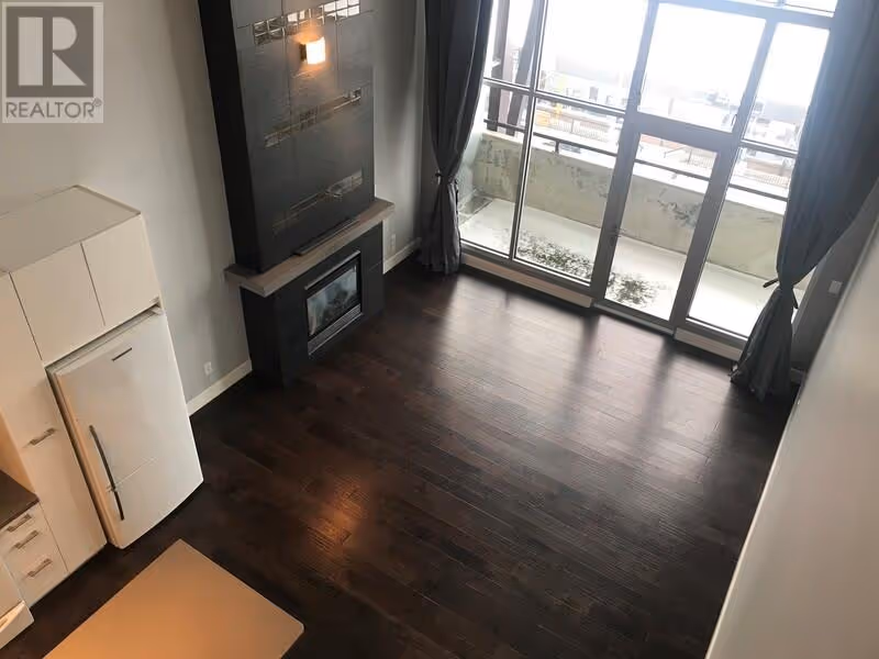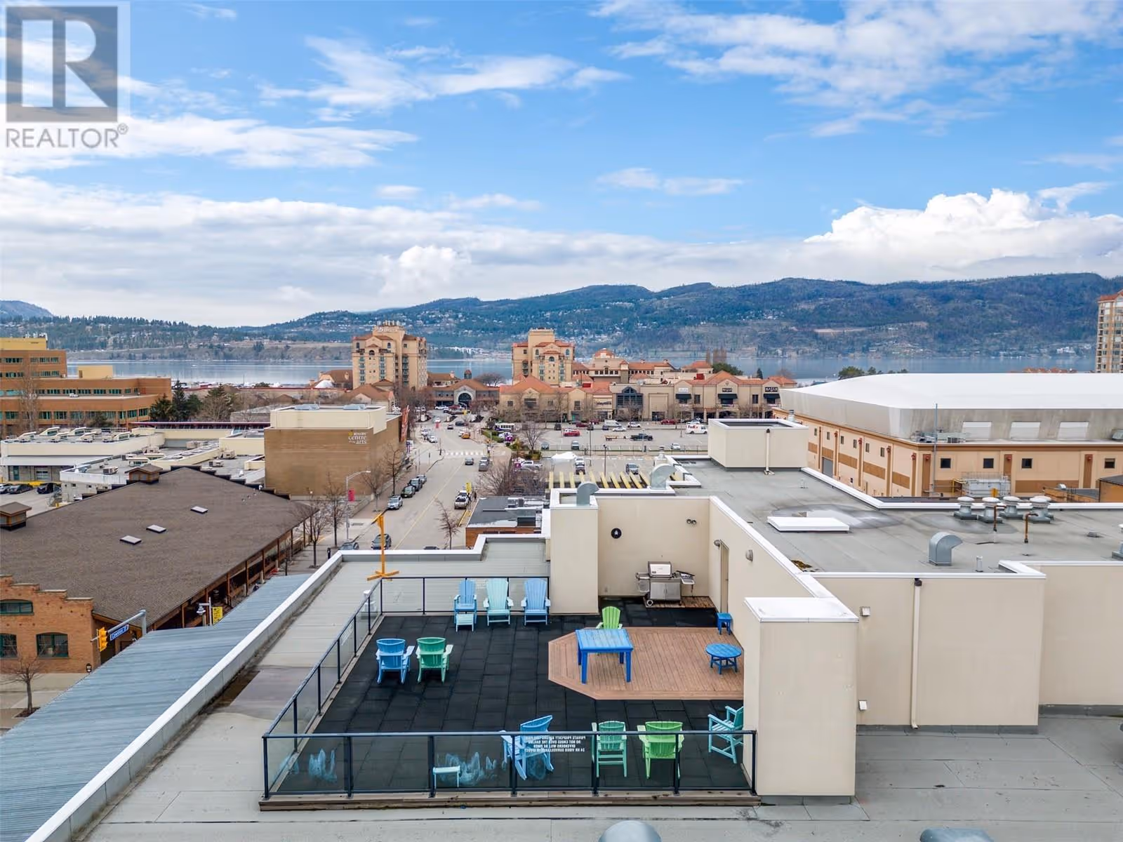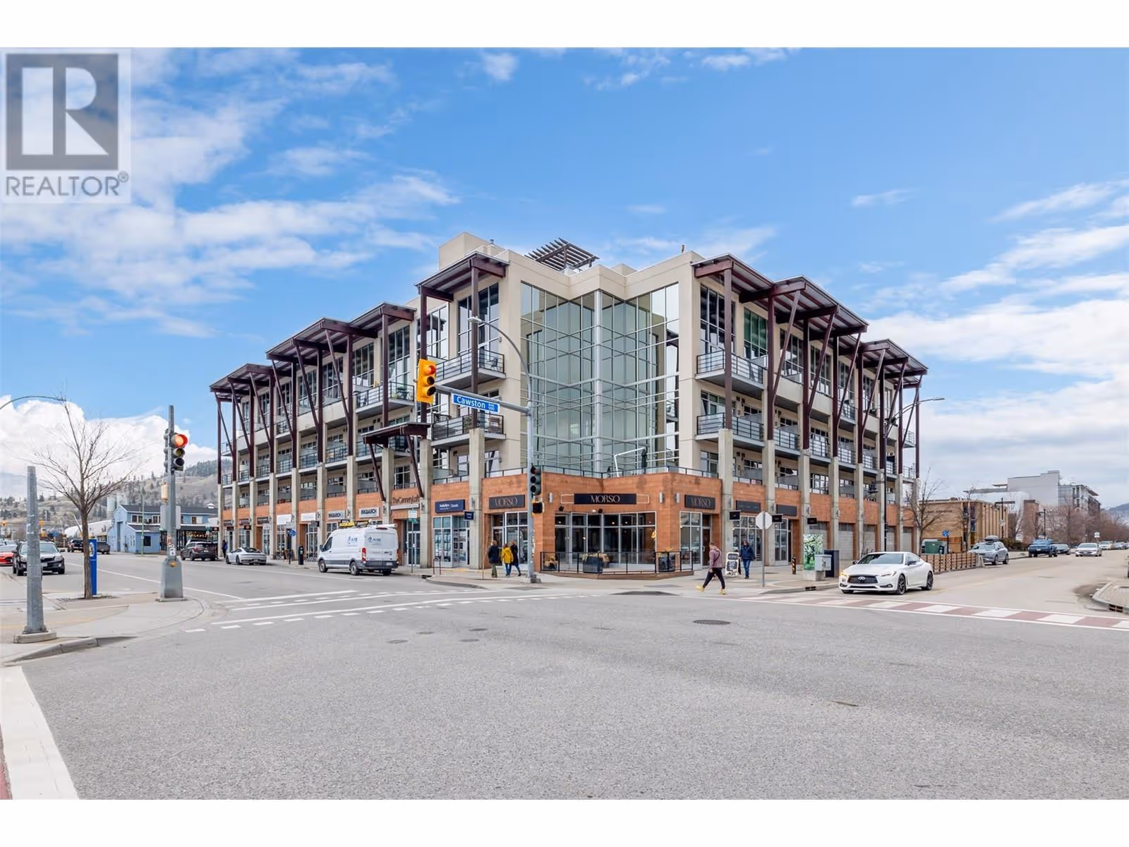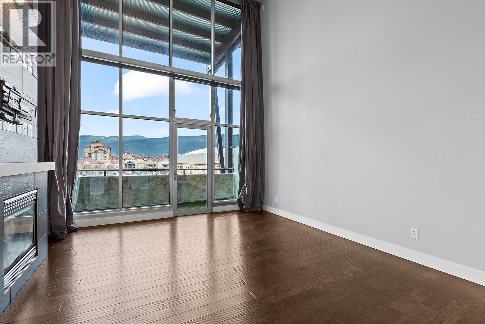 Rare opportunity in the highly sought-after Cannery Lofts, located in the heart of downtown Kelowna. This top-floor, lake-facing unit offers an exceptional blend of style, comfort, and convenience. Featuring 20-foot ceilings and a contemporary loft design, the home includes one bedroom, two bathrooms, and a spacious flex room that can serve as a second bedroom, office, or den. The open-concept living area is bright and airy, with floor-to-ceiling windows, a gas fireplace, and access to a covered patio with lake views. The kitchen is equipped with upgraded appliances, including a gas range. Additional highlights include in-suite laundry, hardwood flooring, newer carpet and window coverings, and fresh paint throughout. The secure concrete building offers one indoor parking stall, bicycle storage, a shared rooftop patio, and excellent security features. Pet permitted with approval. An exceptional downtown lifestyle steps from restaurants, cultural amenities, and the business district. (id:58842)
