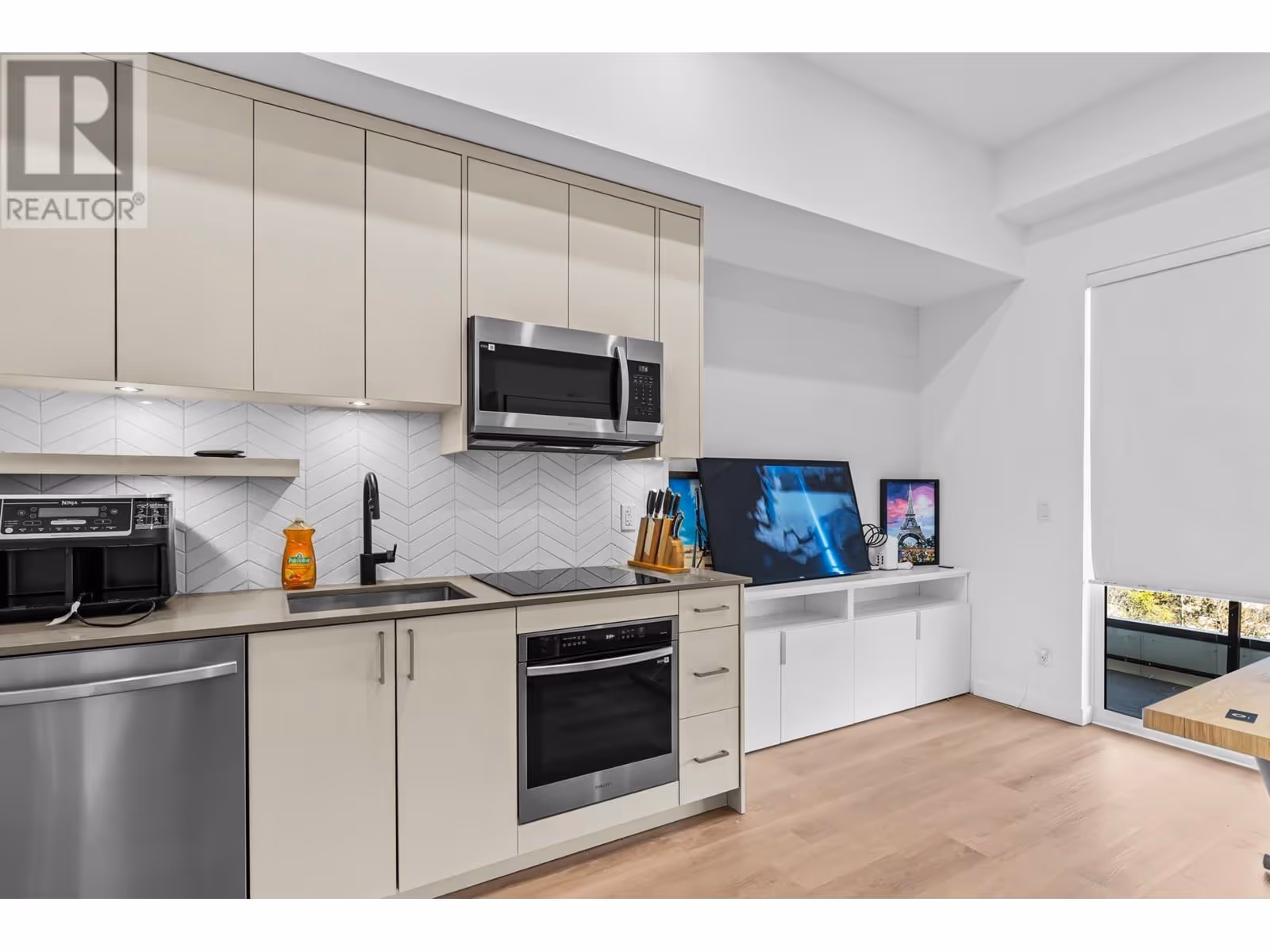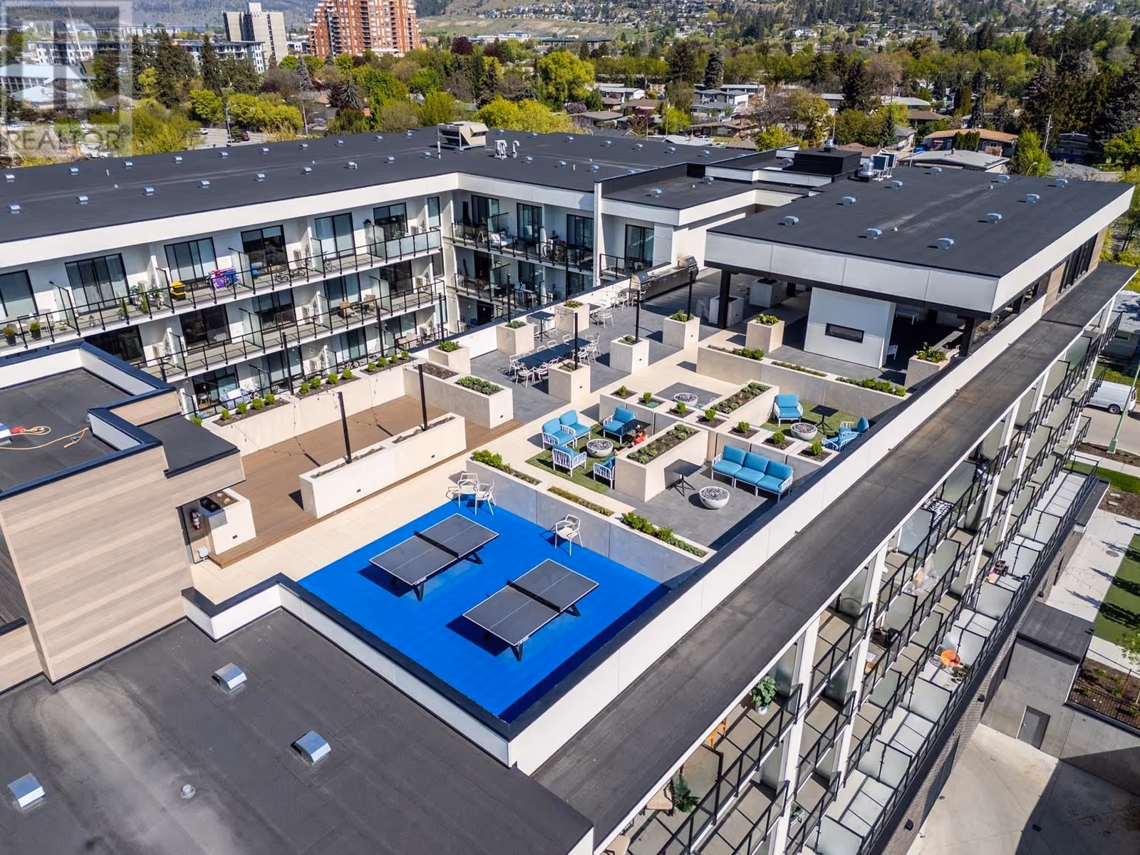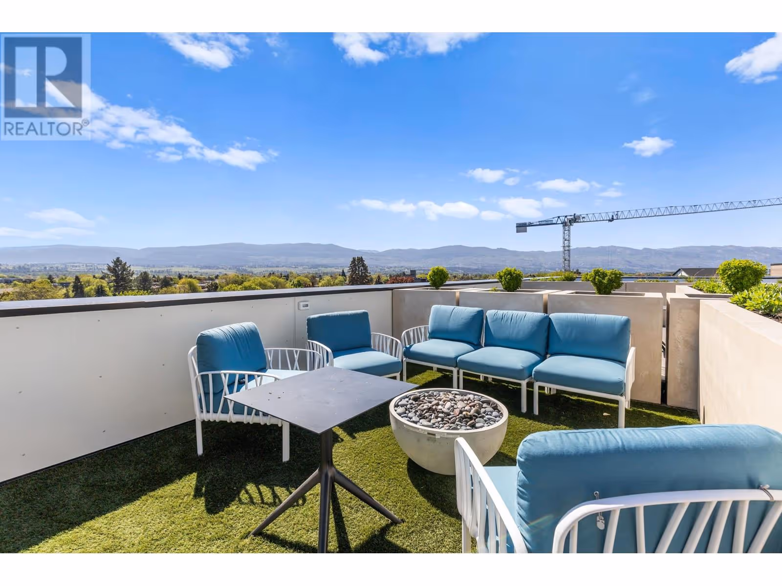 Welcome to Five Crossings—Kelowna’s most innovative and community-focused development, designed for modern, affordable living. This north-facing top-floor, fully furnished ($22,000 upgrade) unit offers incredible value with a bright, open-concept layout, high ceilings, and a private balcony showcasing sweeping city and mountain views. Enjoy a stylish kitchen with quartz countertops, stainless steel appliances, and sleek cabinetry. This unit includes a secure underground parking spot, a private storage locker ($5000 upgrade), and access to premium building amenities including a fitness centre, co-working spaces, a communal kitchen, theatre, pool table, ping pong tables, golf simulator, bike storage with bike workshop, rooftop terrace and more. Barbecues, terrace and community sitting rooms just down the hall from the unit. Located in a central, walkable neighbourhood, you’re just minutes from downtown Kelowna, Okanagan Lake, UBCO’s downtown campus, shops, restaurants, and public transit. Bonus Opportunity: Purchase the neighbouring, side-by-side unit as well—perfect for extended family, rental income, or a flexible investment strategy. Rarely available and ideal for buyers seeking value, location, and lifestyle. Don’t miss out on this move-in-ready, top-floor gem—schedule your private showing today and secure one (or both) of these exceptional units before they’re gone! (id:58842)