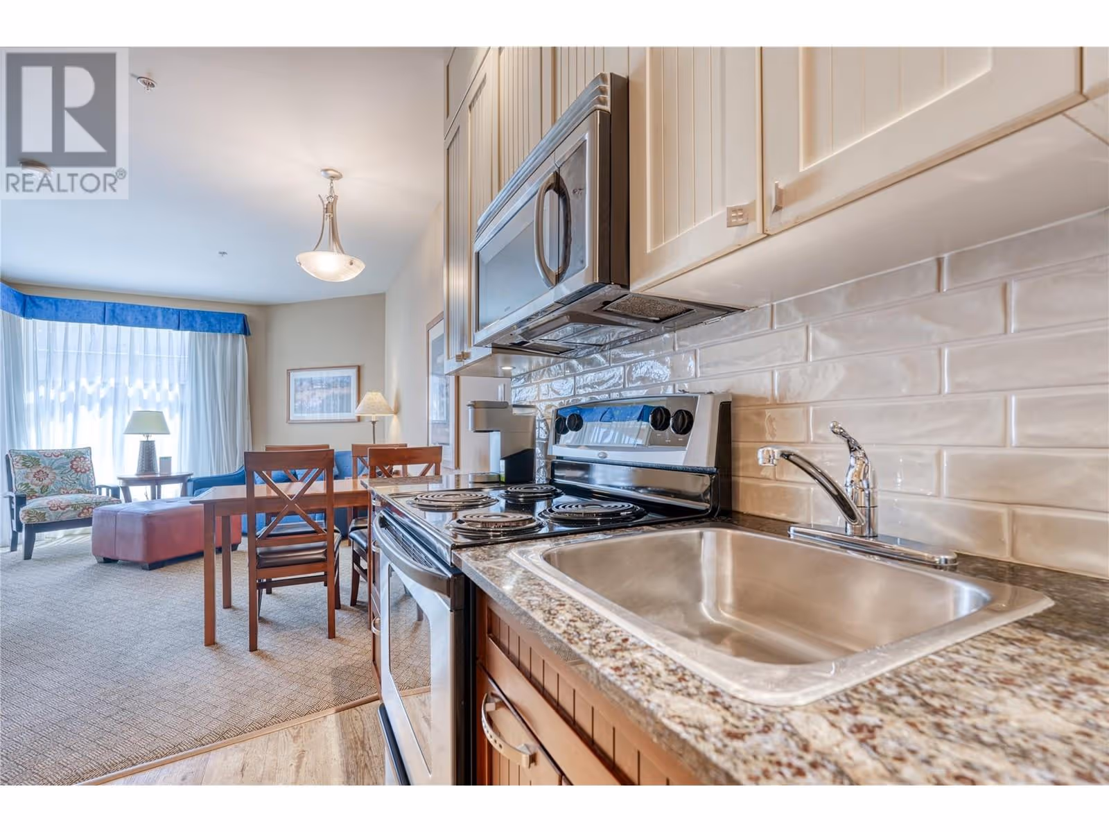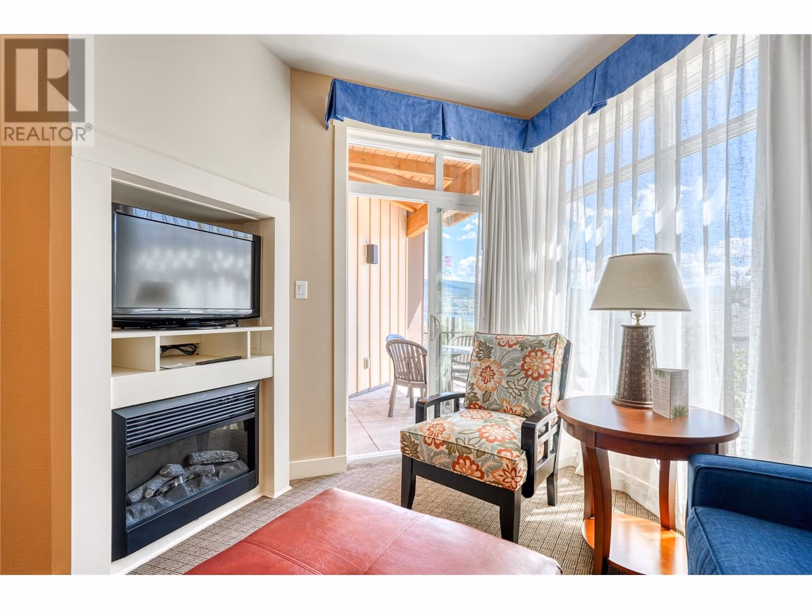 Lakeside luxury at Summerland Waterfront Resort. This Lakeview 1-bed, 1 bath 4 pce unit, is turnkey and ready to enjoy. This unit features granite counters throughout, stainless steel appliances, a cozy fireplace, and lakeview balcony. Fully furnished with hotel amenities that include an outdoor pool, hot tub, sauna, fitness centre, BBQ area, bistro, boat rentals, spa and access to lower town walking paths along Okanagan Lake. No charge Laundry facilities on site. Professionally managed and offers stress-free ownership with revenue potential through a rental pool, allowing for 180 days of personal use per year (peak and off peak allocation, 60 days during peak & 120 days in the off peak). By appointment only. Measurements taken from IGuide - buyer to verify if important. Located in the heart of Wine Country, 1 hour to Apex Mountain resort, 30 min to Penticton airport. Located on the property Shaughnessys Cove where you can relax/walk & enjoy dinner out. Tripadvisor has rated as the top hotel in the Okanagan, in top 1% worldwide and in the top 25 in Canada! No Vacant home tax or Spec tax. Call today to view. (id:58842)