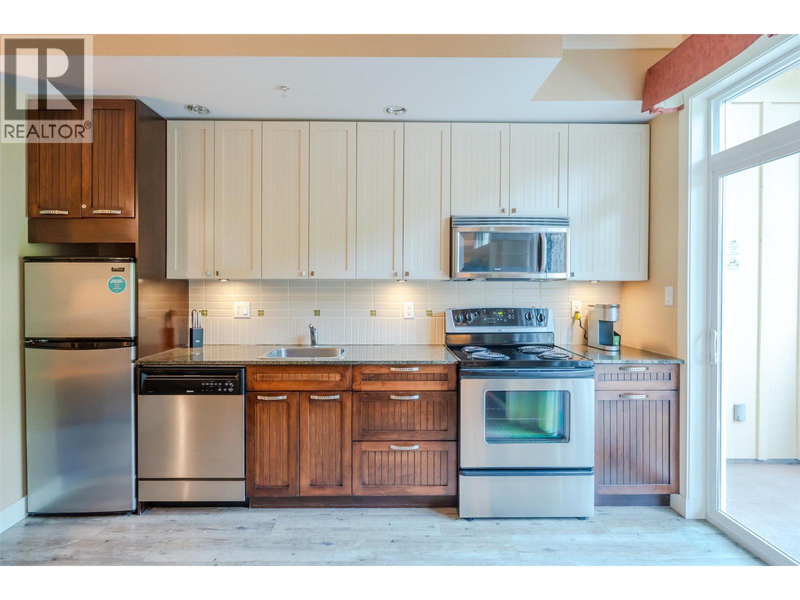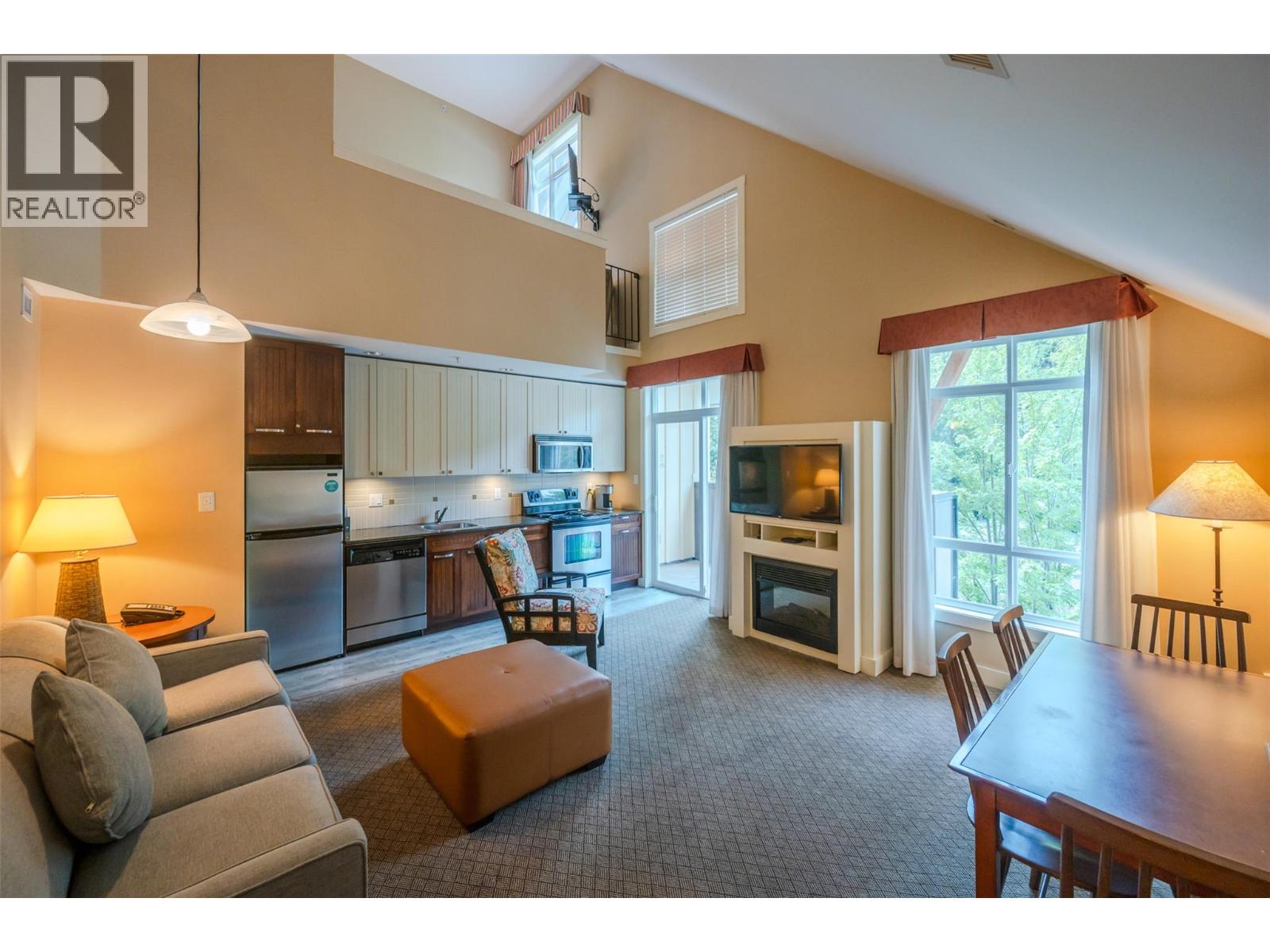 Spacious loft unit in the Summerland Waterfront Resort and Spa. This turn-key unit features open concept loft living with king bed and 4 pc ensuite bathroom up. Main floor has a balcony with mountain views, fully equipped high end kitchen with stainless steel appliances and granite counter tops, dining area, living room featuring gas fireplace, pullout couch, plus additional 2 pc bathroom. Resort features include a heated outdoor pool, hot tub, sauna, and fitness room. The resort also provides dock access, BBQ and fire pit areas, laundry facilities, and heated underground parking. Onsite bistro plus the neighboring Shaughnessy's Cove restaurant, IKhaya Day Spa, and seasonal watercraft rentals. The marina and yacht club are just next door, with additional beaches, parks, golf courses, wineries and trails nearby. Owners can occupy the suite for up to 180 days per year or keep in the rental pool for strictly investment purposes. (120 of owner use days are between October and May, 60 are between June and September with a maximum stay of 30 days at any one time). All rentals must be handled through the Resort. Tripadvisor rating as the top hotel in the Okanagan, in top 1% worldwide and in the top 25 in Canada! Pet friendly (with approval), income-generating and no vacant property tax or speculation tax. Enjoy Okanagan resort life to its fullest! All measurements are approximate. Call listing agent for additional information or to book your private viewing. (id:58842)