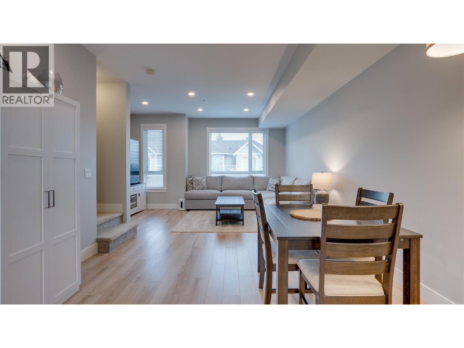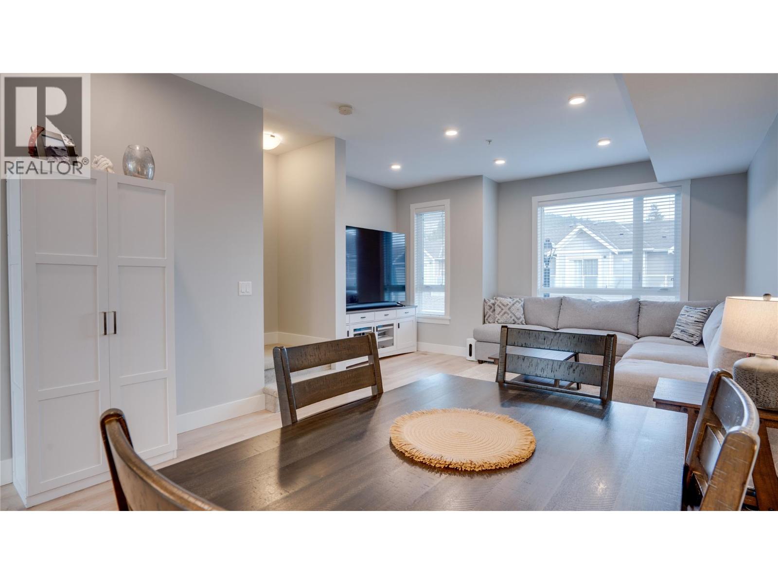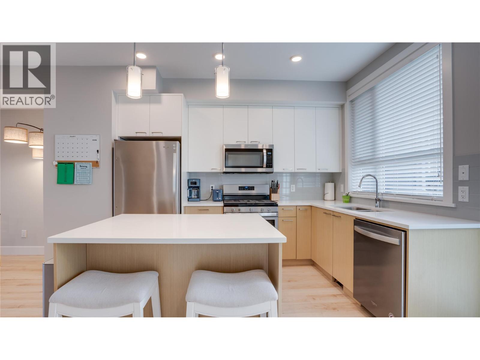 This bright, stylish, and newly painted townhome is located in a vibrant family-friendly community just steps away from the Park! Featuring 2 bedrooms, a den or flex room, 2 full baths, a fenced in backyard, and a massive tandem style garage for all your toys. The open-concept main floor features a contemporary island kitchen with upgraded stainless steel appliances, quartz countertops, and durable laminate flooring. The large island is perfect for entertaining and flows seamlessly with the dining and living room. Off the kitchen you have access to the patio and fully fenced backyard - ideal for relaxing, gardening, or giving kids and pets a secure place to play. A natural gas hookup makes BBQs effortless and outdoor living even more enjoyable. Upstairs, you’ll find the perfect sized primary bedroom with a 3-piece ensuite, a generous second bedroom, a 4-piece main bath, and an office space or flex area currently being used as a 3rd bedroom. Additional highlights include efficient geothermal heating and cooling, a massive 2-car tandem garage with ample storage room, driveway parking that fits a full size truck, and low strata fees. Enjoy the park and basketball court right across the street, and take advantage of nearby sports fields, playgrounds, scenic hiking, biking trails, beaches and Turtle Bay Plaza - all just minutes away. Don’t miss out on this beautiful affordable townhome and discover why so many love living at - Apex at the Lakes! (id:58842)