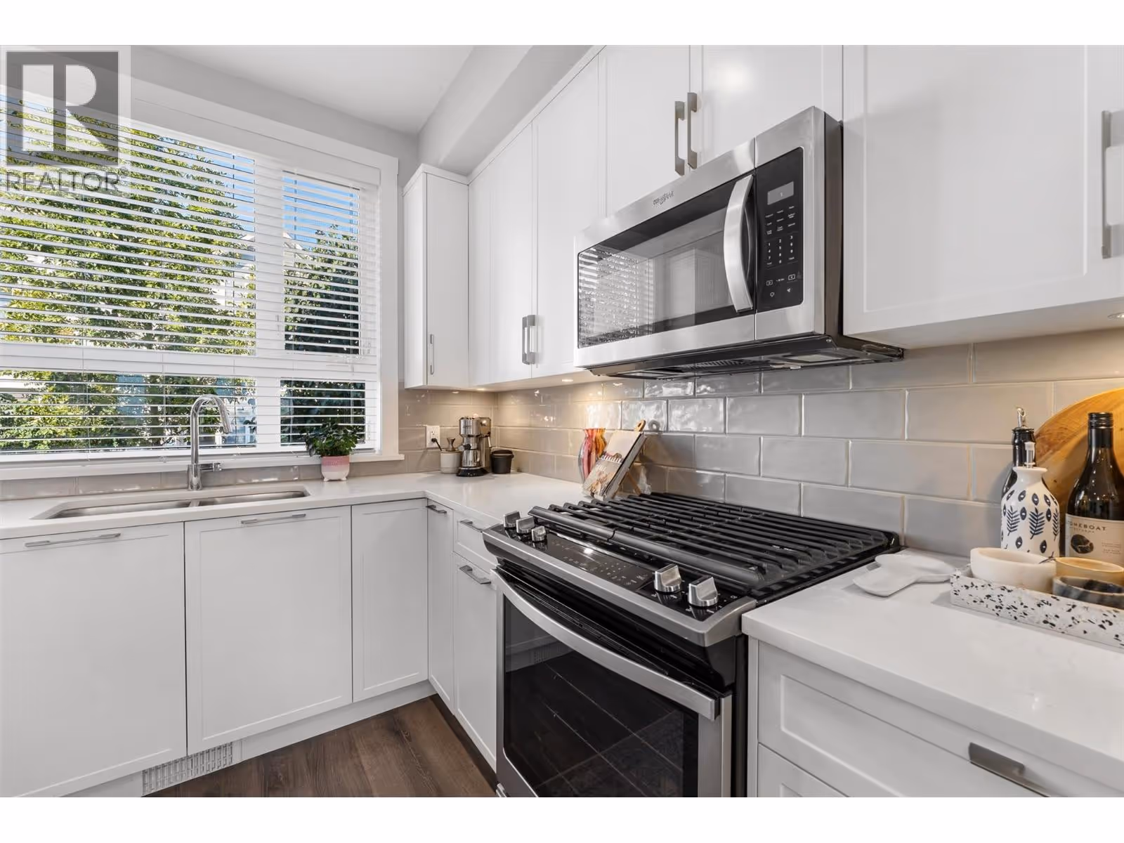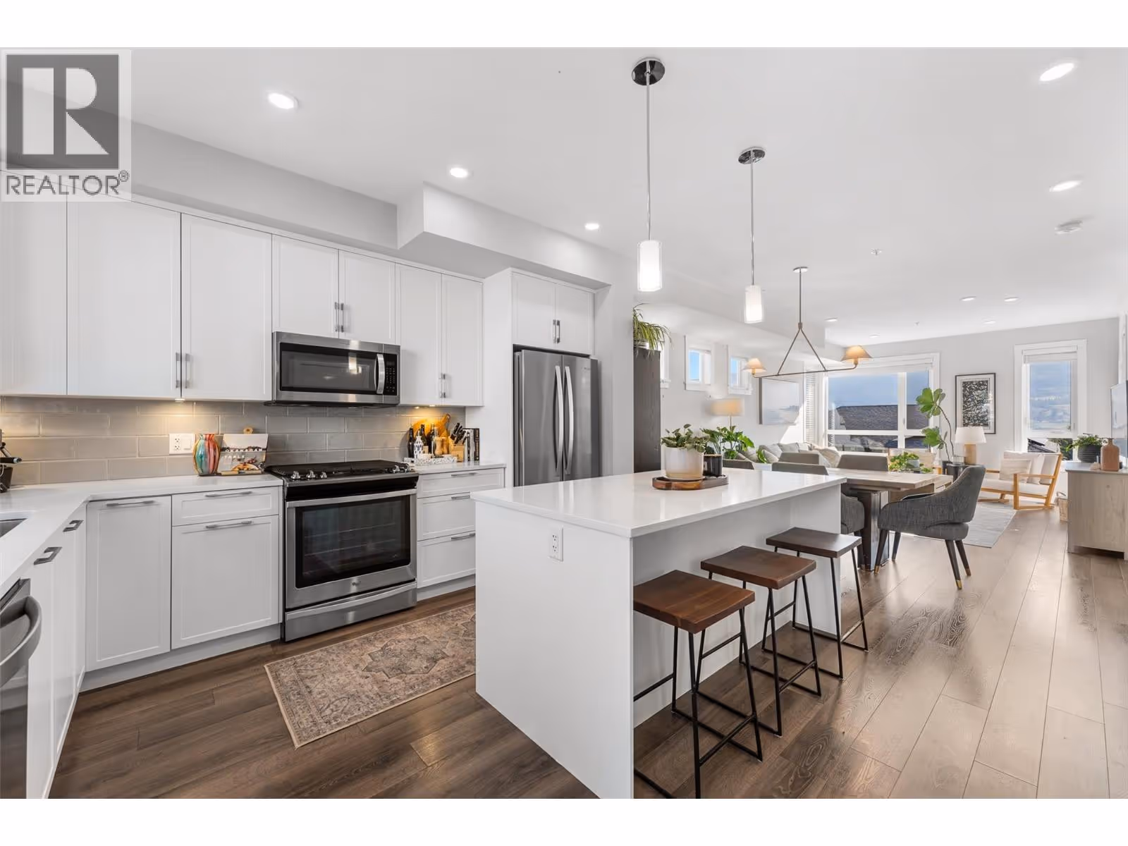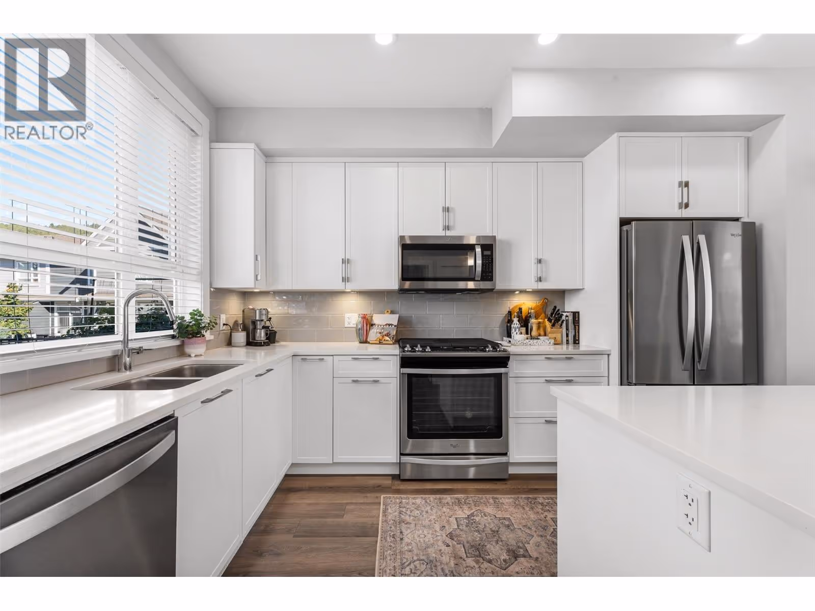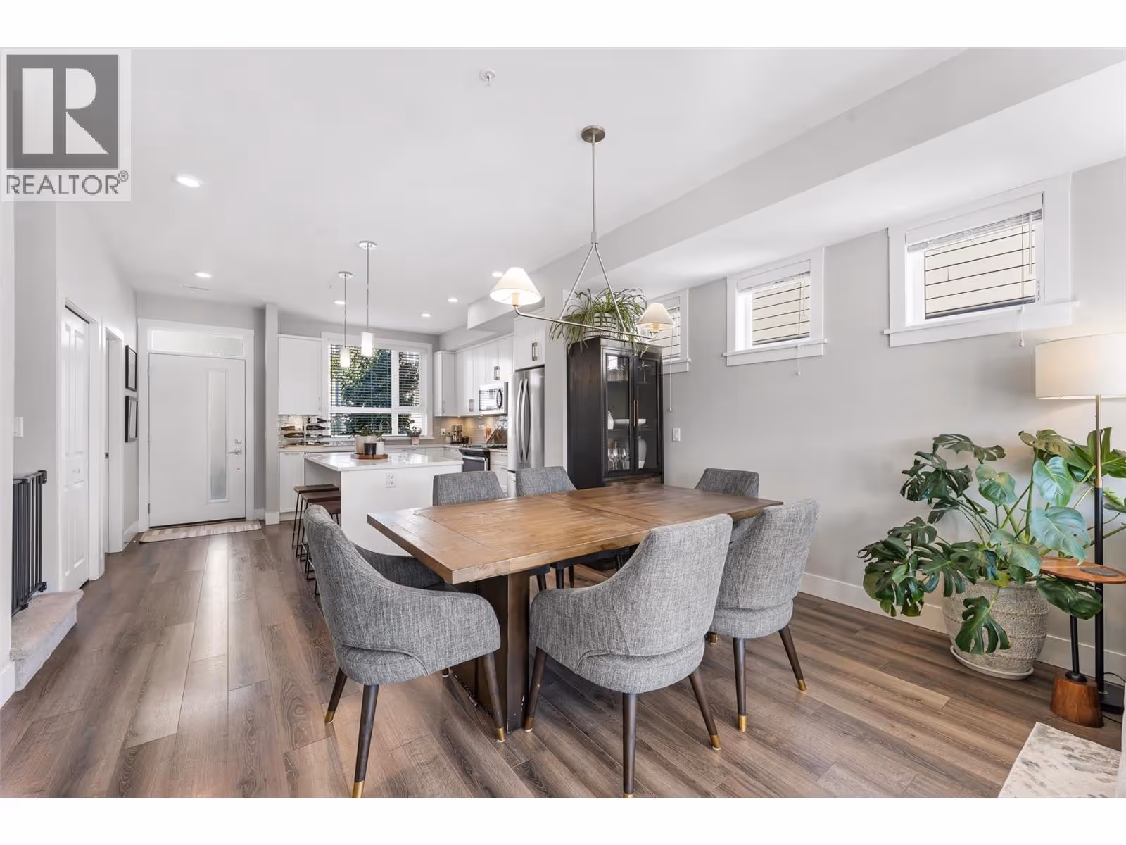 Welcome to one of the largest homes in Apex at the Lakes with over 1,700 sqft of indoor space plus ample outdoor living including a covered deck and a gated/fenced yard with a spacious patio. This rare corner home has abundant natural light, and stunning mountain views. With 4 bedrooms + den and a double garage, it’s perfect for families seeking space and sophistication. The open-concept main level features a chef-inspired kitchen with quartz countertops, under-cabinet lighting, upgraded Whirlpool appliances, and a large island with seating. The dining & living areas flow seamlessly to a covered deck, ideal for entertaining. A bright den provides a perfect home office, while thoughtful details like built-in stair landing cabinets and a freshly painted powder room elevate the interiors. Upstairs, the primary retreat showcases sweeping views, a walk-in closet and a spa-like ensuite with heated tile floors, a glass walk-in shower, vanity with 2 sinks. Two additional bedrooms share a stylish 4-piece bath. The laundry room offers modern function with floating shelves and a Whirlpool washer/dryer. The lower level extends the living space with a 4th bedroom and roughed in 4th bath-ready for your customizations, along with direct access to the garage, complete with EV wiring. Outdoors, enjoy a private fenced yard with raised garden beds, space for lounging, and BBQ-ready patio dining. Energy efficient Geothermal heating/cooling and a premier location across from ShoreLine Park. (id:58842)