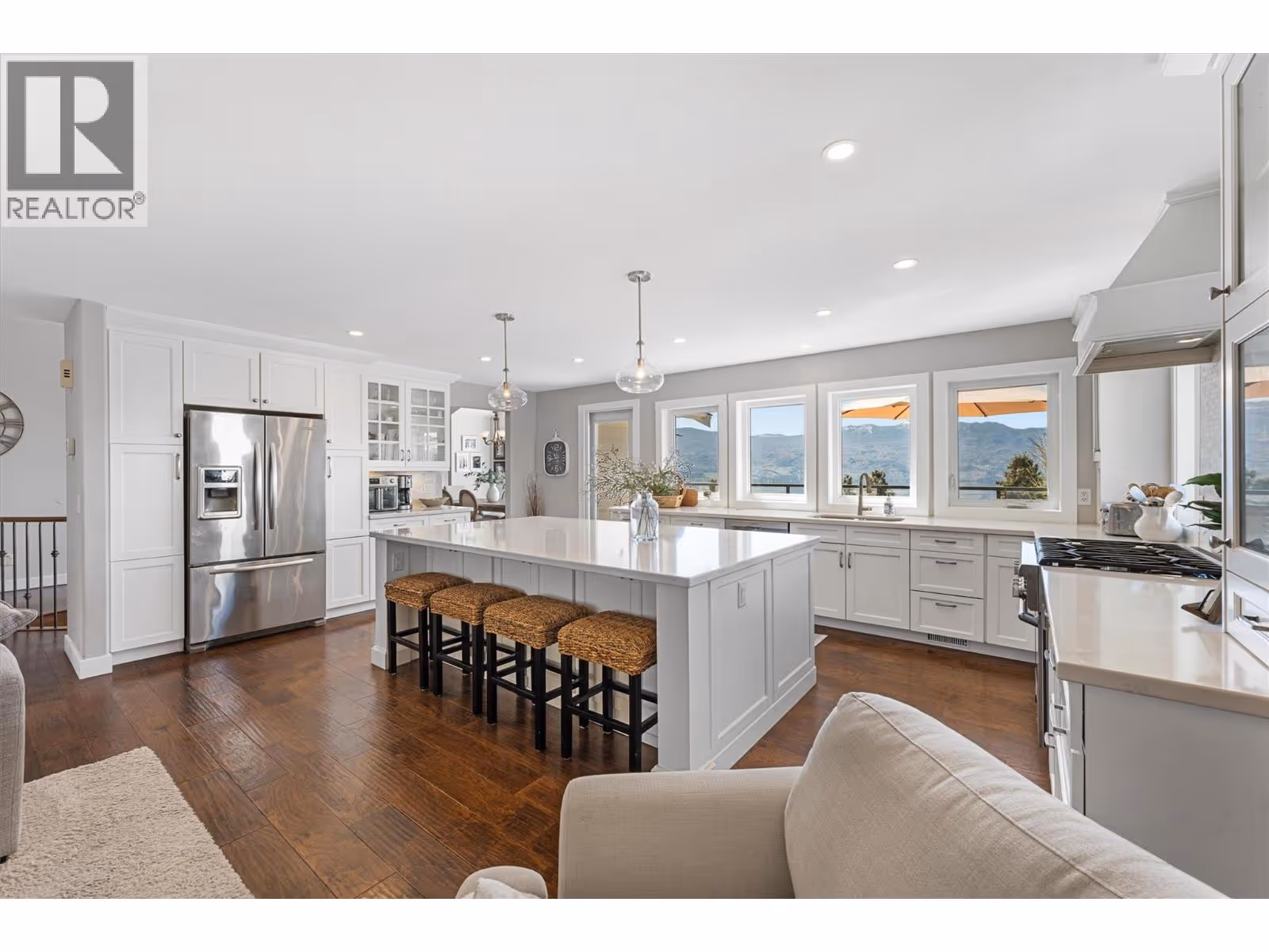 Welcome to Lakeview Heights—a must-see 5-bedroom, 3 bathroom home where the best of Okanagan living comes to life. Perfectly perched to take in breathtaking, unobstructed views of Okanagan Lake, this home is all about lifestyle, comfort, and effortless entertaining. Step into your own private oasis, featuring a sparkling pool that overlooks the lake, surrounded by a spacious patio and beautifully designed outdoor living areas—ideal for soaking up the sun, enjoying summer dinners, or unwinding with a glass of local wine. Inside, you’re greeted by a stunning spiral staircase that sets the tone for the bright and welcoming layout. The open-concept living space flows seamlessly into a beautifully renovated kitchen, perfectly positioned to take full advantage of the lake views. Major updates completed in 2021 include a new roof, Completely redesigned kitchen, new windows, Hardie Plank siding, and plenty more offering peace of mind and stylish functionality. It also features a oversized double car garage with a shop area and there is plenty of parking. Whether you’re hosting a crowd or enjoying a quiet night under the stars, this home is your gateway to the ultimate Okanagan lifestyle. All Ploy B just removed from the house, pool liner is being replaced in spring. Roof done in 2021. Kitchen, windows, hardy plank done in 2022. New appliances (except fridge) and new carpeting, dishwasher 2024. New washer and dryer, Deck redone in 2008. (id:58842)