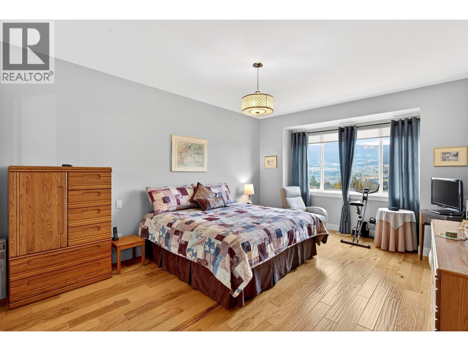 Welcome to THE LAKES, one of Lake Country’s most desirable neighbourhoods. This well-kept walkout rancher on sought-after Lake Hill Drive offers lovely valley views and a bright, comfortable layout ideal for families. The main level features 2 bedrooms and 2 full bathrooms, including a spacious primary suite with a soaker tub, separate shower, double vanities, and heated tile floors. The open-concept main living area is designed for everyday comfort, with a functional kitchen offering a center island with seating, stainless steel appliances, and plenty of cabinet space. The dining area opens directly onto a large, sun-filled patio, perfect for summer BBQs and outdoor entertaining. The walkout lower level adds excellent flexibility with 2 additional bedrooms, a full bathroom, and generous family/rec space, and workshop—ideal for guests, teenagers, hobbies, or a media room. Easily suitable. Additional features include ample storage, a double garage, and easy access to nearby parks, walking trails, and the conveniences of Lake Country. (id:58842)