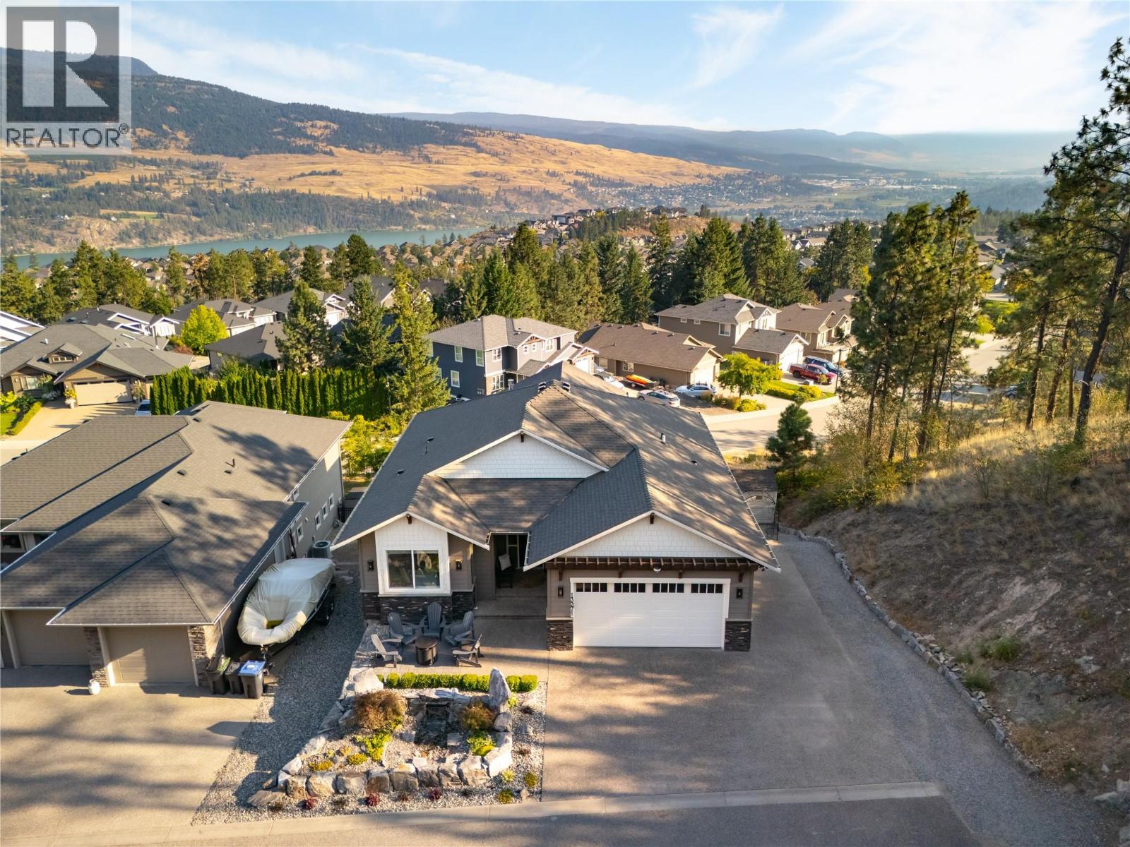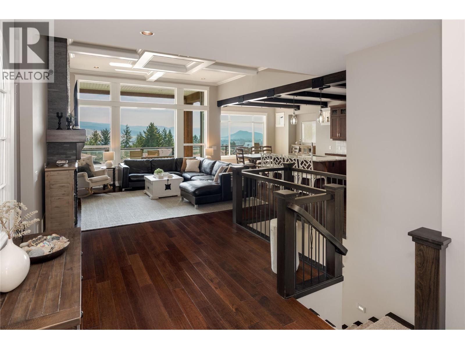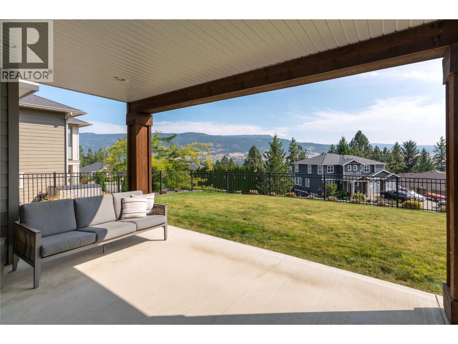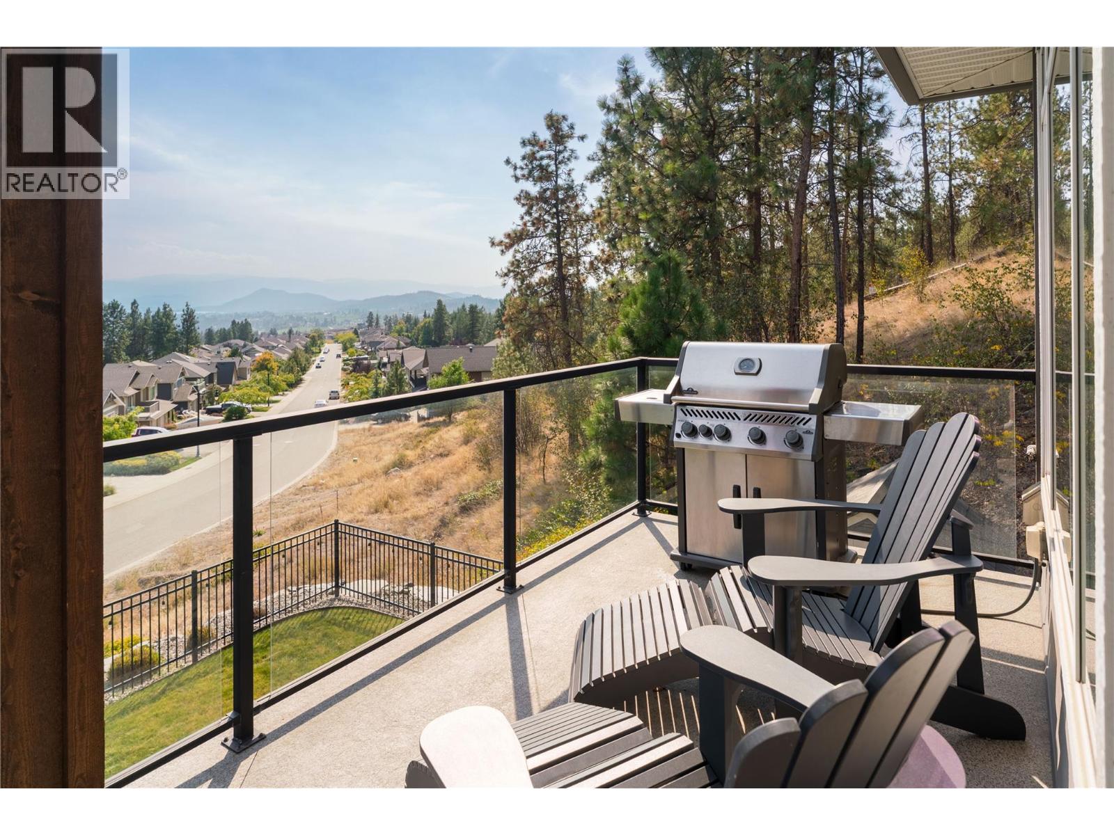 Unmatched privacy, sweeping views & direct access to nature—this residence at The Lakes is truly one-of-a-kind. Set on a no-thru road with absolutely no traffic and only one neighbour, it’s a retreat designed for both relaxation & entertaining. From sunrise over the mountains to twinkling town lights at night, the panoramic views stretch across Lake Country, the lakes, orchards & rolling hills. The backyard has been recently fenced, offering room for a private pool & is wired for a hot tub. Backing onto 10 acres of parkland with access to the Spion Kop trail system, adventure is quite literally at your back door. Inside, craftsmanship shines—custom wood beams, built-ins & timeless millwork provide warmth & character throughout. The main level boasts a chef’s kitchen with granite counters, stainless appliances & walk-in pantry, seamlessly open to the dining & living areas where floor-to-ceiling windows capture the views. The primary suite is a peaceful escape with a spa-inspired ensuite featuring heated floors. The lower walk-out level is designed for family living, offering a spacious recreation room, two bedrooms, a full bath & direct access to the covered patio & yard. Extensive landscape upgrades include a tranquil running stream, ornamental fencing & expanded parking areas. A rare offering that balances natural beauty with refined living—this is where Okanagan lifestyle dreams come true. (id:58842)
