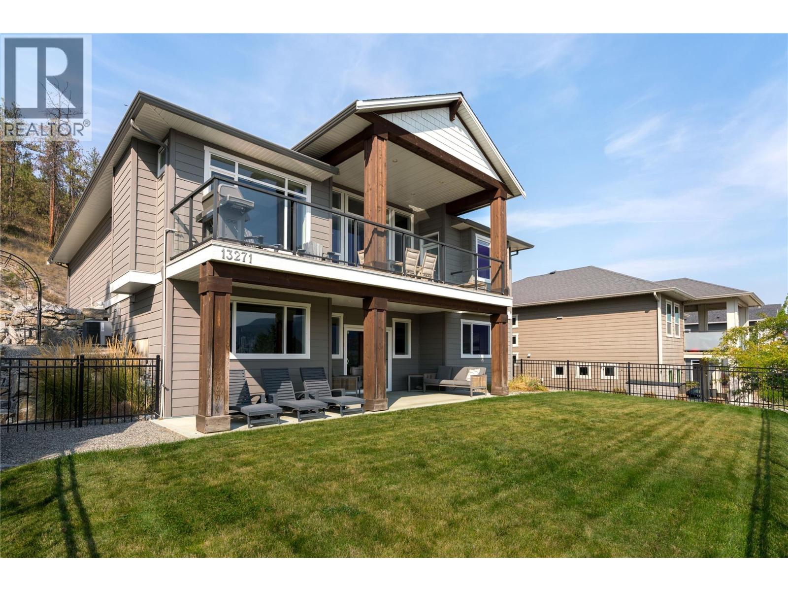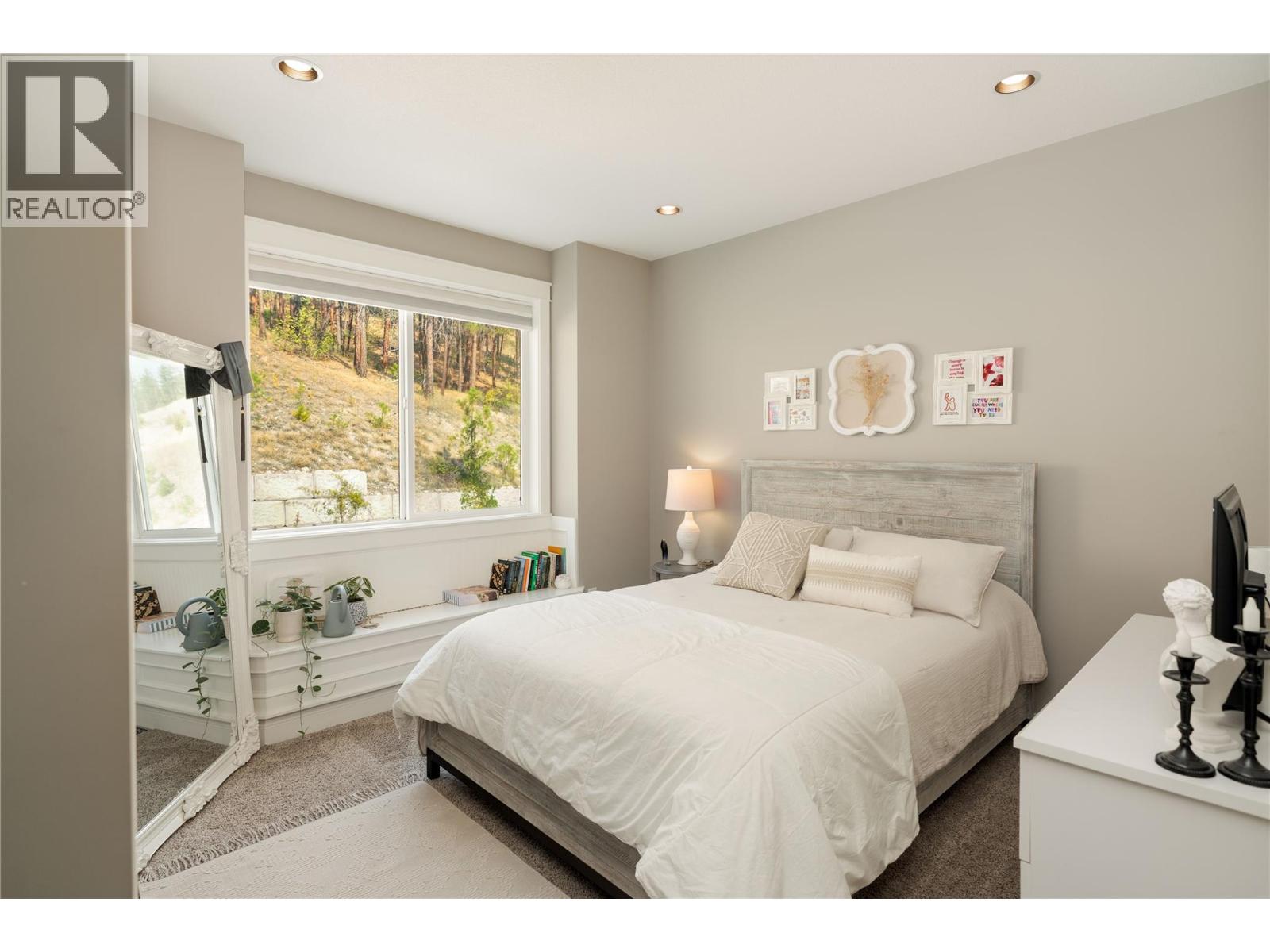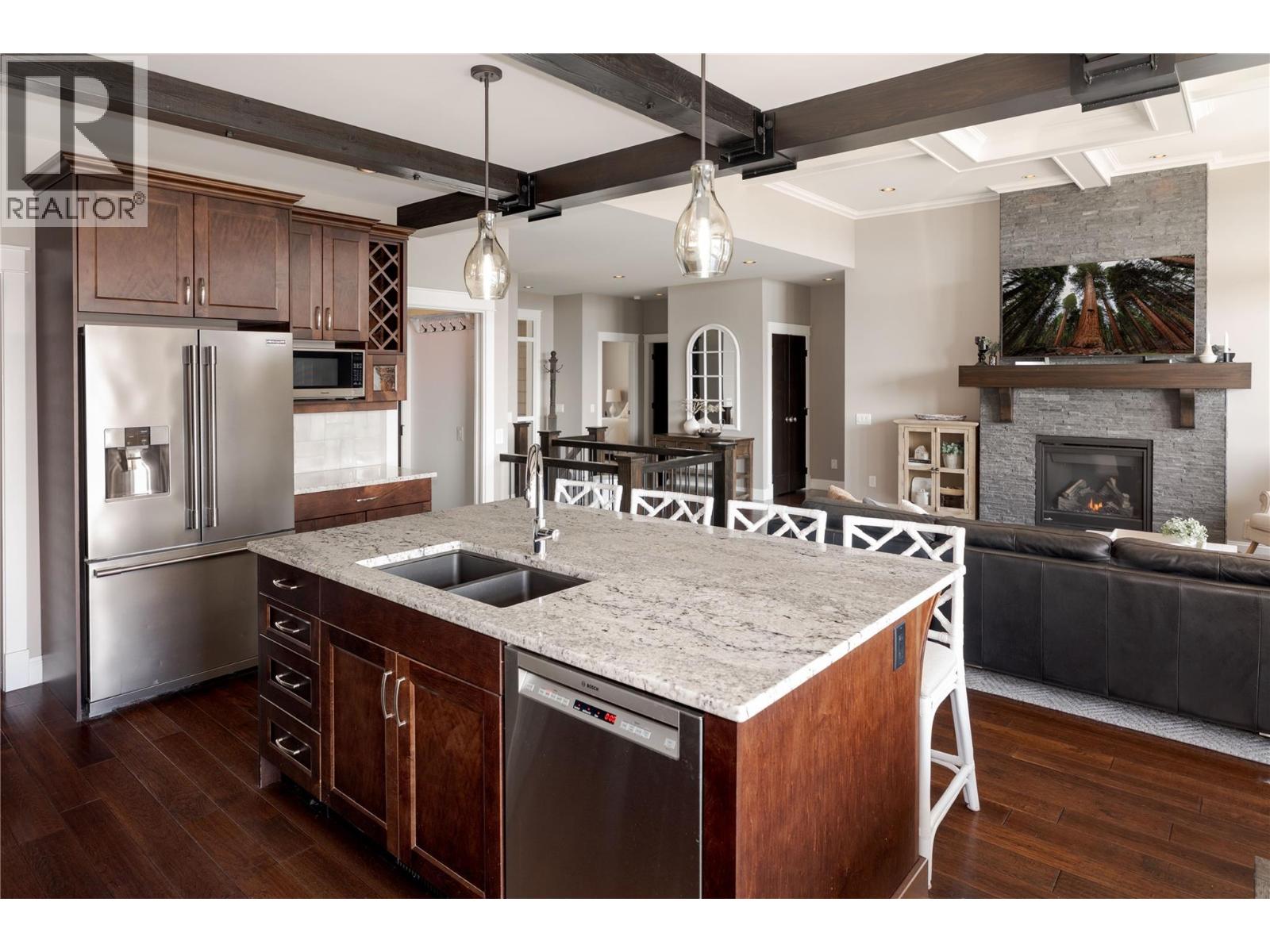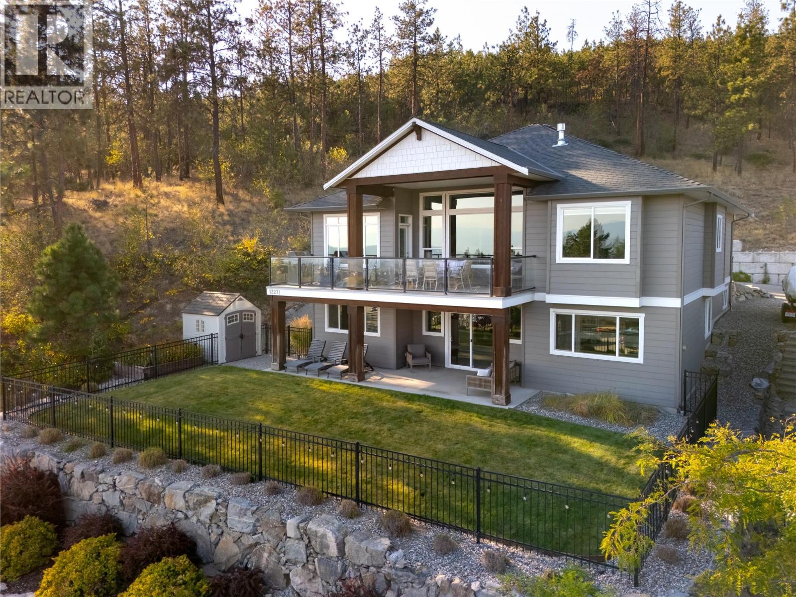 Unmatched privacy, sweeping views & direct access to nature—this residence at The Lakes is truly one-of-a-kind. Set on a no-thru road with absolutely no traffic and only one neighbour, it’s a retreat designed for both relaxation & entertaining. From sunrise over the mountains to twinkling town lights at night, the panoramic views stretch across Lake Country, the lakes, orchards & rolling hills. The backyard has been recently fenced, offering room for a private pool & is wired for a hot tub. Backing onto 10 acres of parkland with access to the Spion Kop trail system, adventure is quite literally at your back door. Inside, craftsmanship shines—custom wood beams, built-ins & timeless millwork provide warmth & character throughout. The main level boasts a chef’s kitchen with granite counters, stainless appliances & walk-in pantry, seamlessly open to the dining & living areas where floor-to-ceiling windows capture the views. The primary suite is a peaceful escape with a spa-inspired ensuite featuring heated floors. The lower walk-out level is designed for family living, offering a spacious recreation room, two bedrooms, a full bath & direct access to the covered patio & yard. Extensive landscape upgrades include a tranquil running stream, ornamental fencing & expanded parking areas. A rare offering that balances natural beauty with refined living—this is where Okanagan lifestyle dreams come true. (id:58842)